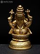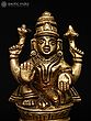 22" Sitting Chaturbhuja Lord Ganesha in Blessing Gesture | Brass Statue with Inlay Work