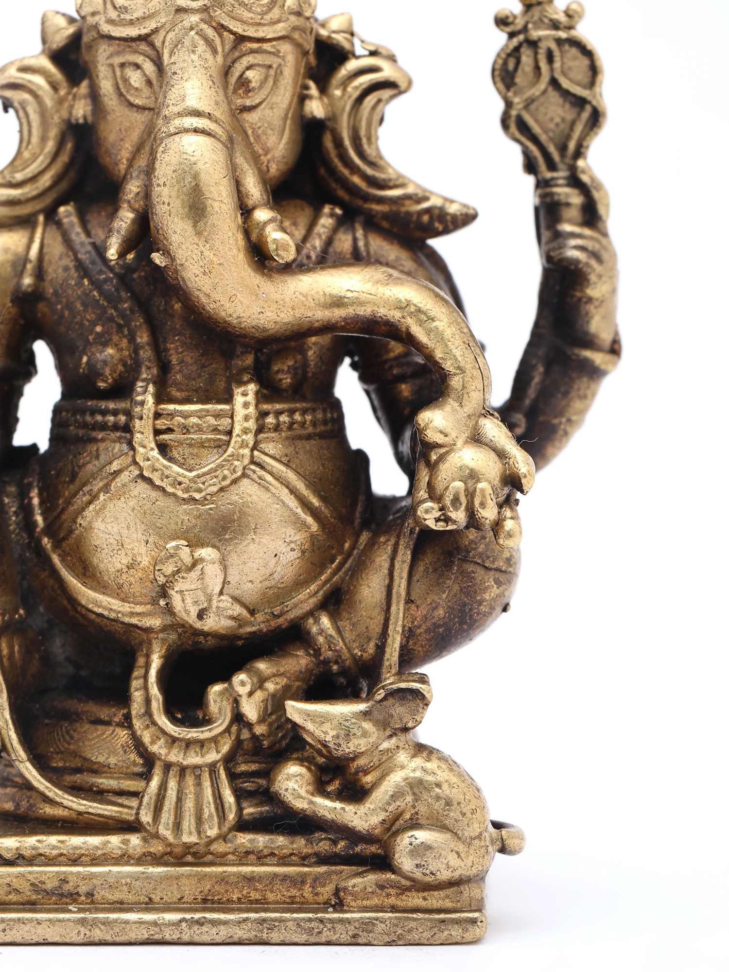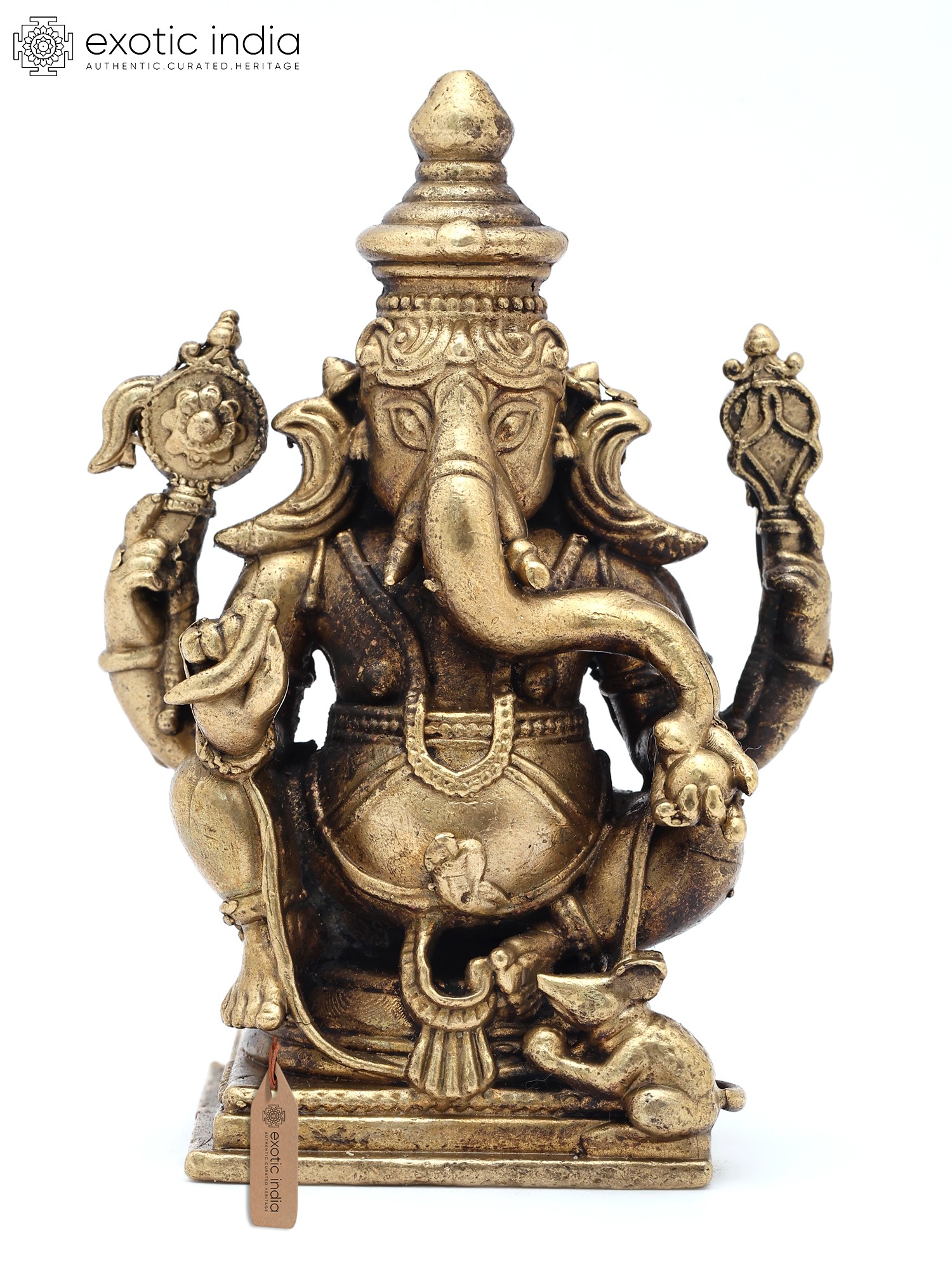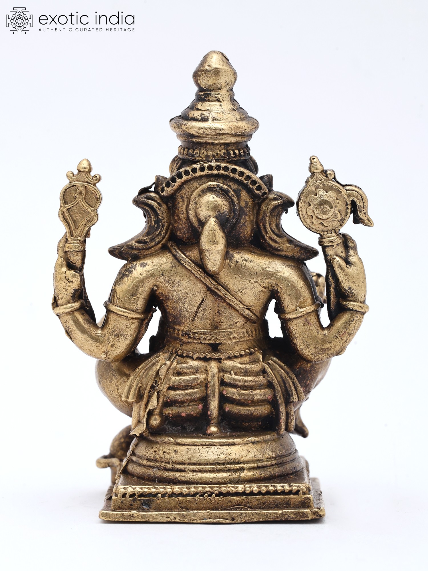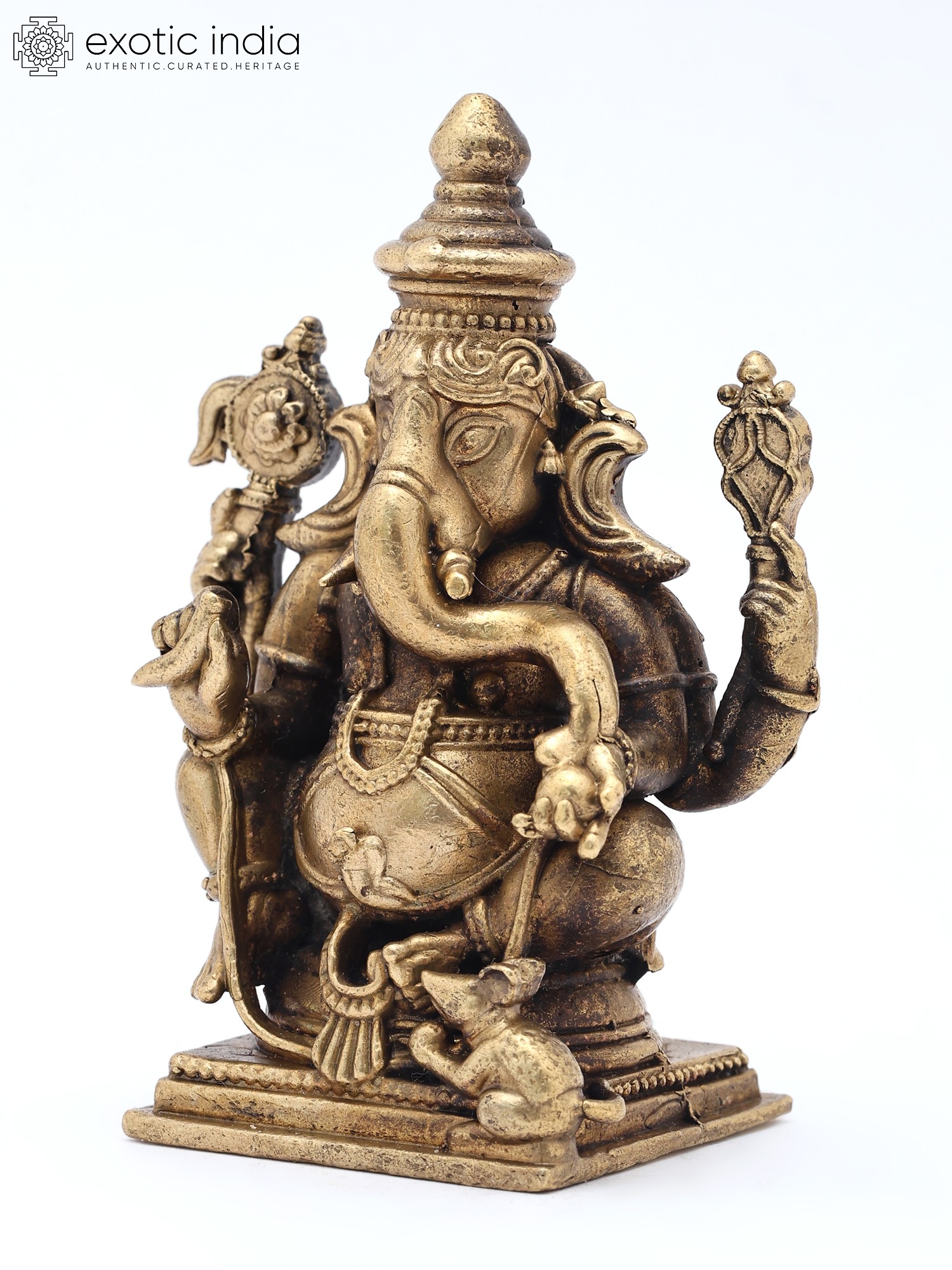 2" Small Lord Ganapati Seated on Lotus with Mushak Vahana | Copper Statue | Made in India