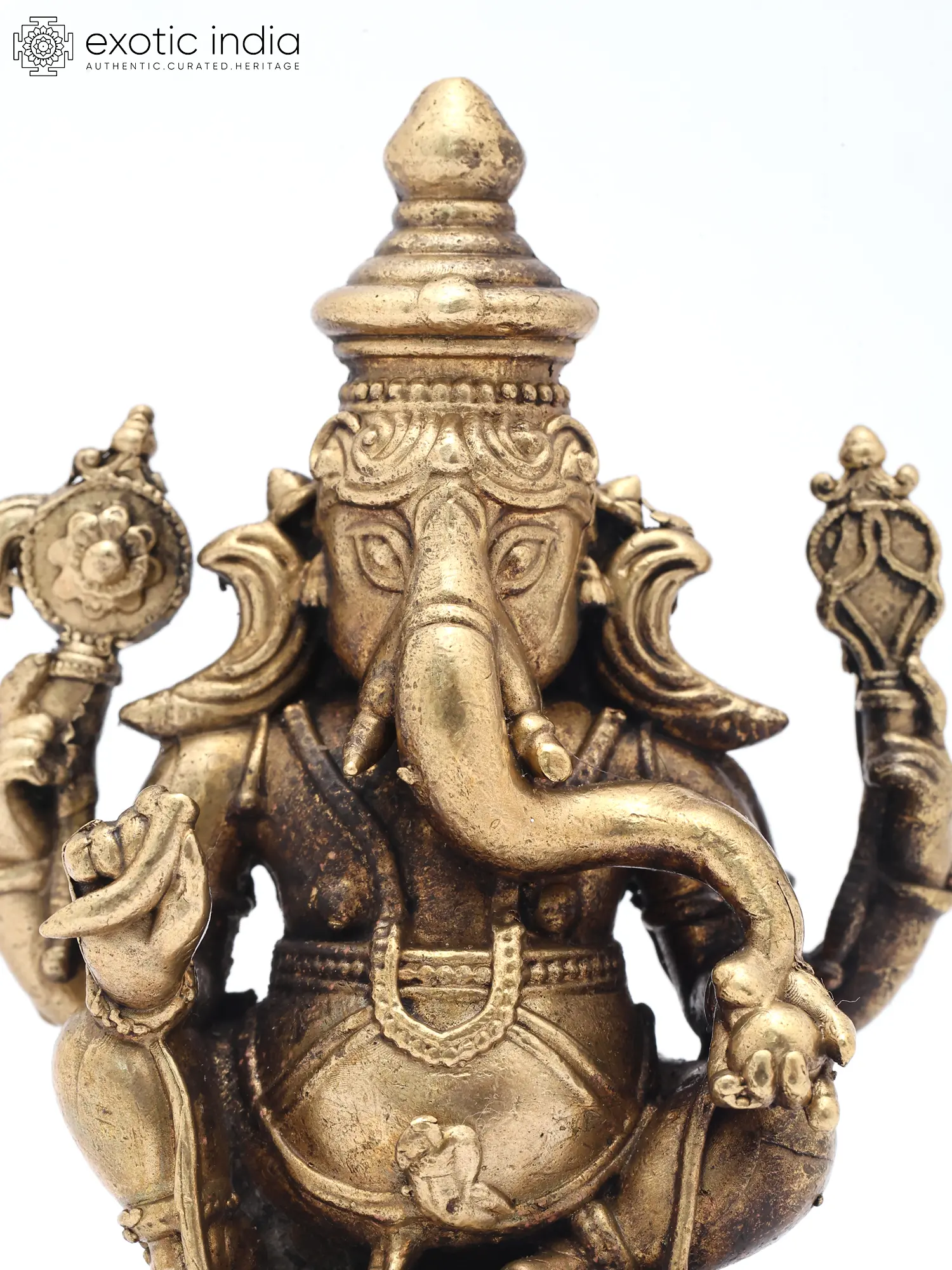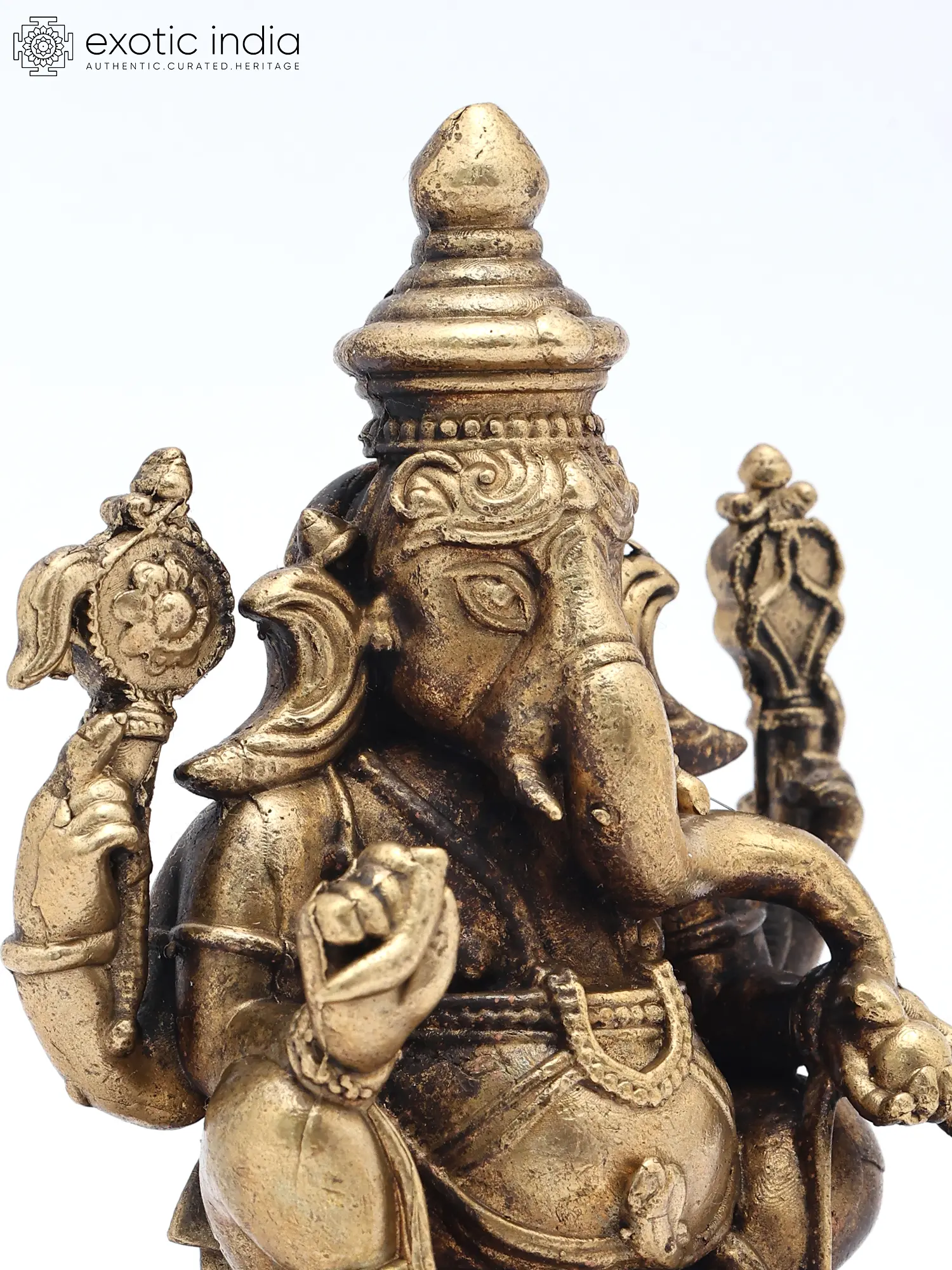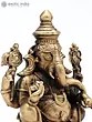 3" Small Ashtabhuja Lord Ganesha with Five Heads Seated on Kirtimukha Throne | Copper Statue | Made in India