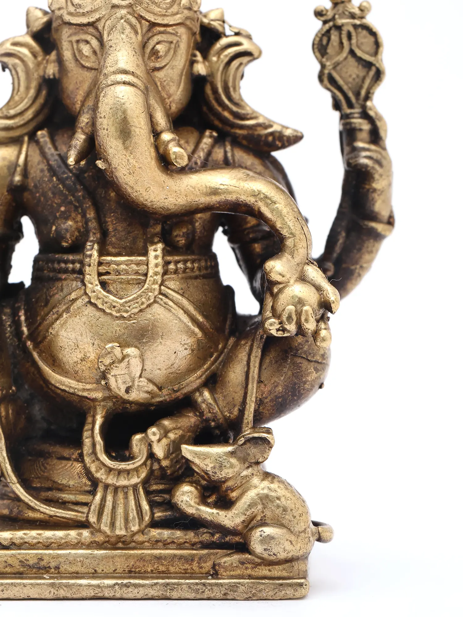 4" Small Sitting Lord Ganapati with Mushak | Copper Statue
