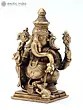 2" Small Chaturbhuja Lord Ganesha Copper Statue Seated on Pedestal