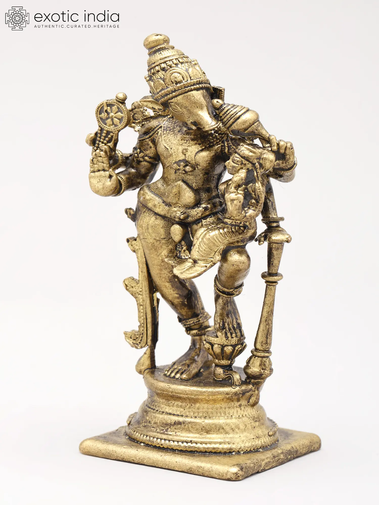 4" Small Standing Lord Varaha and Devi Lakshmi Copper Statue