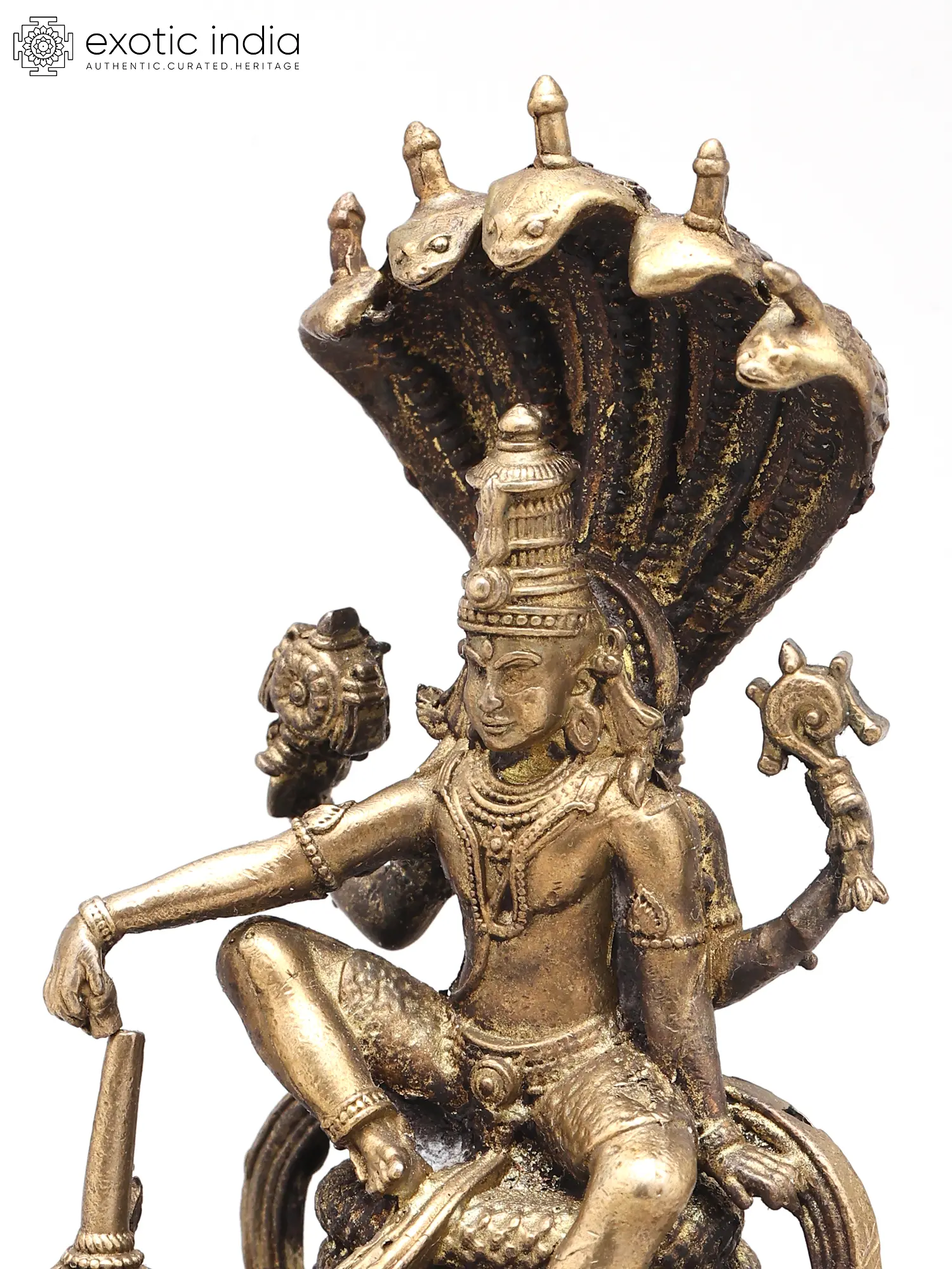 Behold the meticulous craftsmanship evident in every detail of this exceptional sculpture. Hand-cast from a blend of fine copper, brass, and silver, it embodies centuries of artistic tradition. Each element, from the intricate folds of Sheshnag's hood to the serene expression on Vishnu's face, has been sculpted with unparalleled dedication, ensuring a piece of enduring beauty and significant spiritual value.