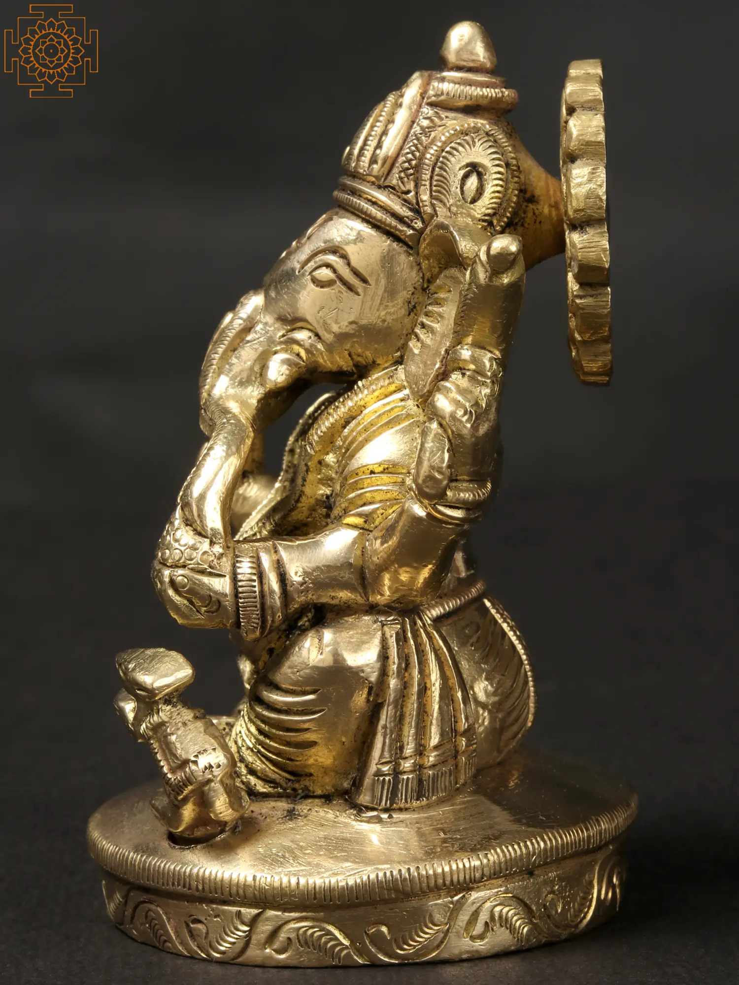 3'' Small Ganesha Savouring Modak | Brass Statue