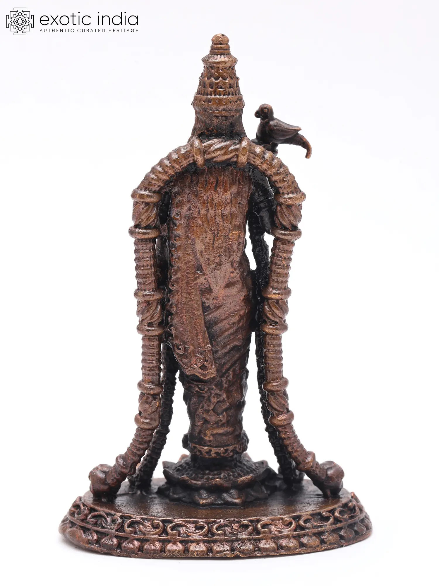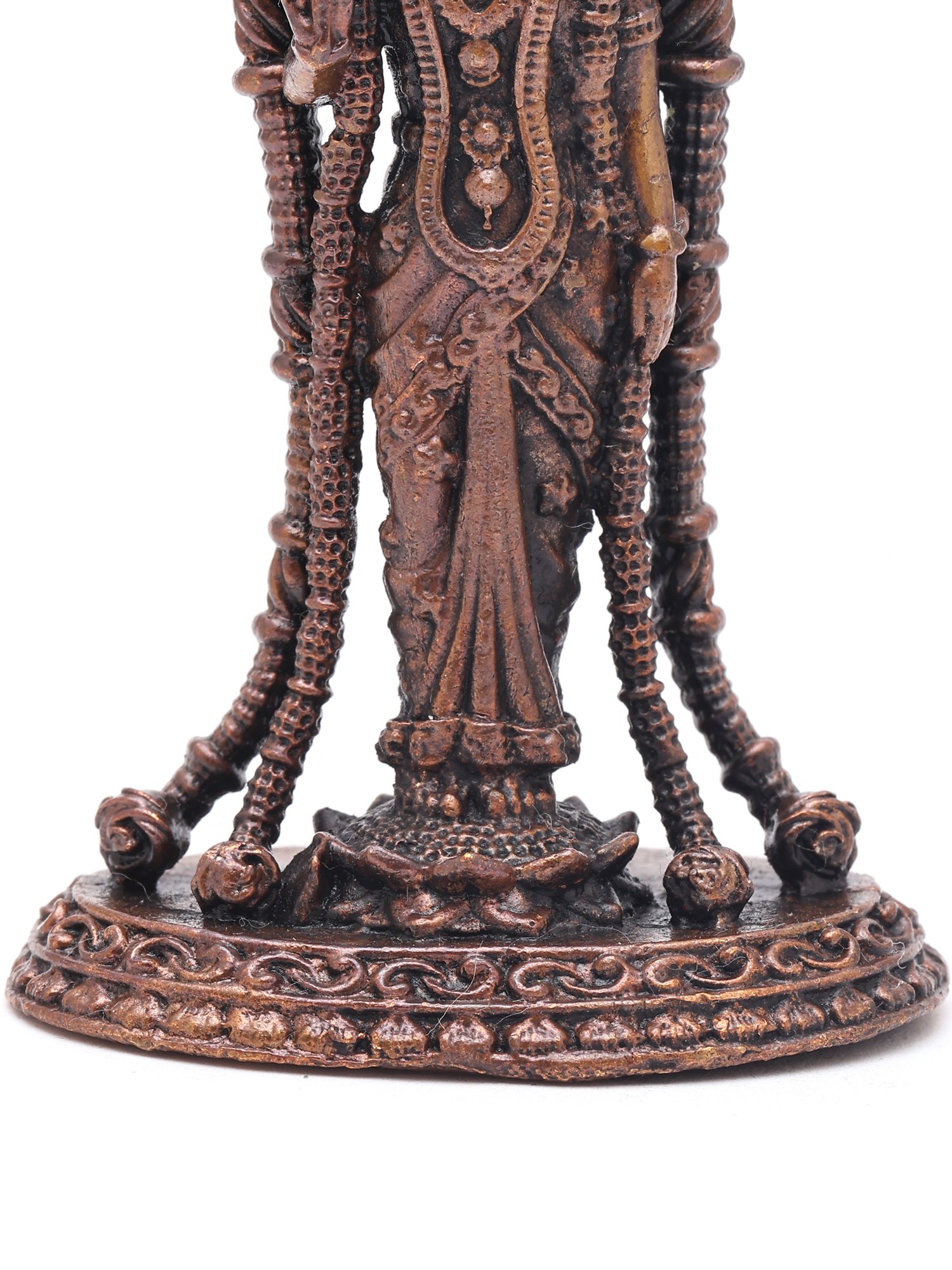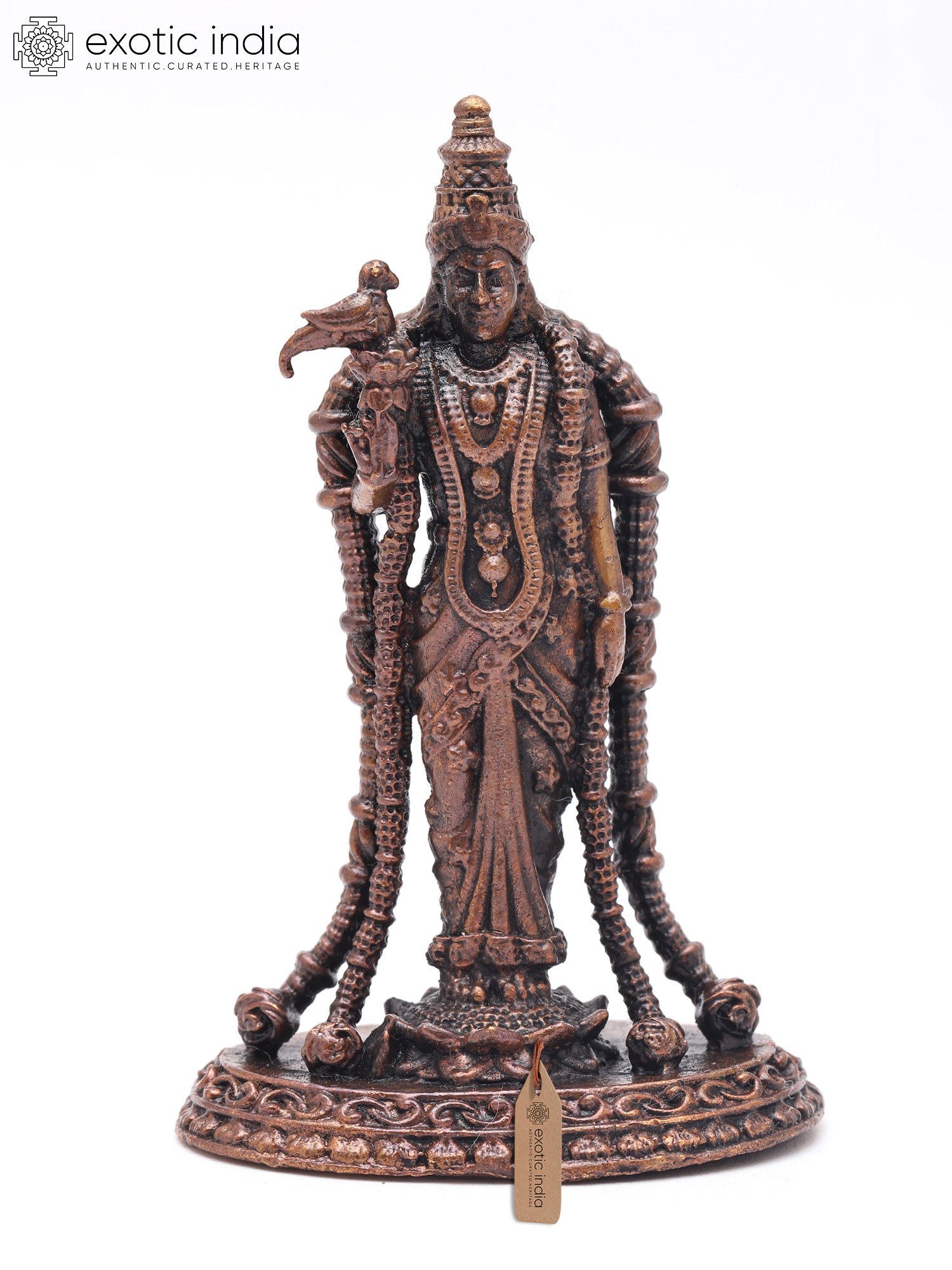 Observe the elegant posture and serene expression, reflecting a profound sense of peace and strength. The delicate rendering of adornments, from the elaborate crown to the flowing garlands and intricately braided cords, showcases the artisan's dedication. A charming bird perches gracefully on the figure's arm, adding a unique touch of life and symbolic meaning. This compact masterpiece, measuring just three inches tall, is a testament to how immense artistry can be captured in a small form.