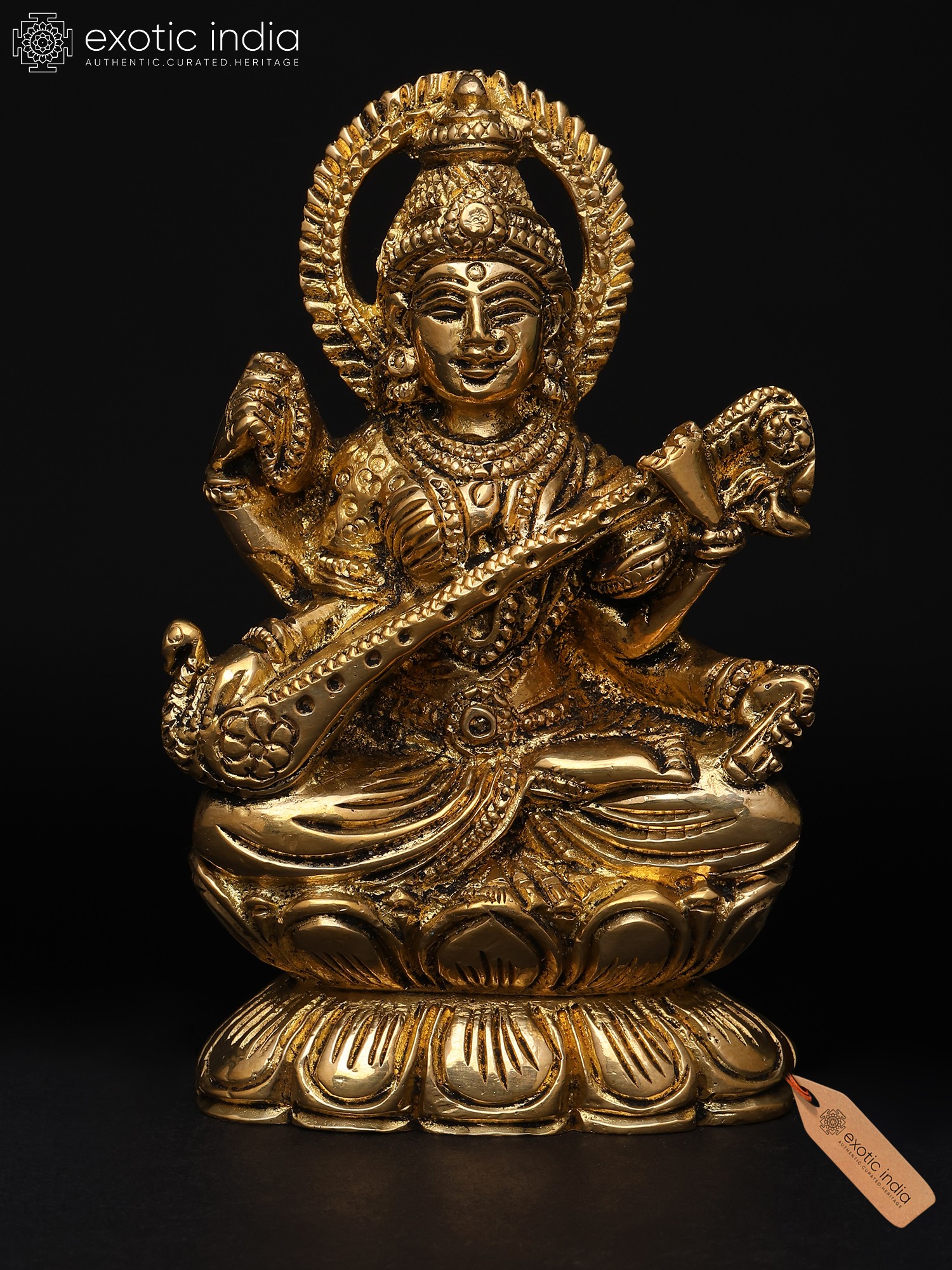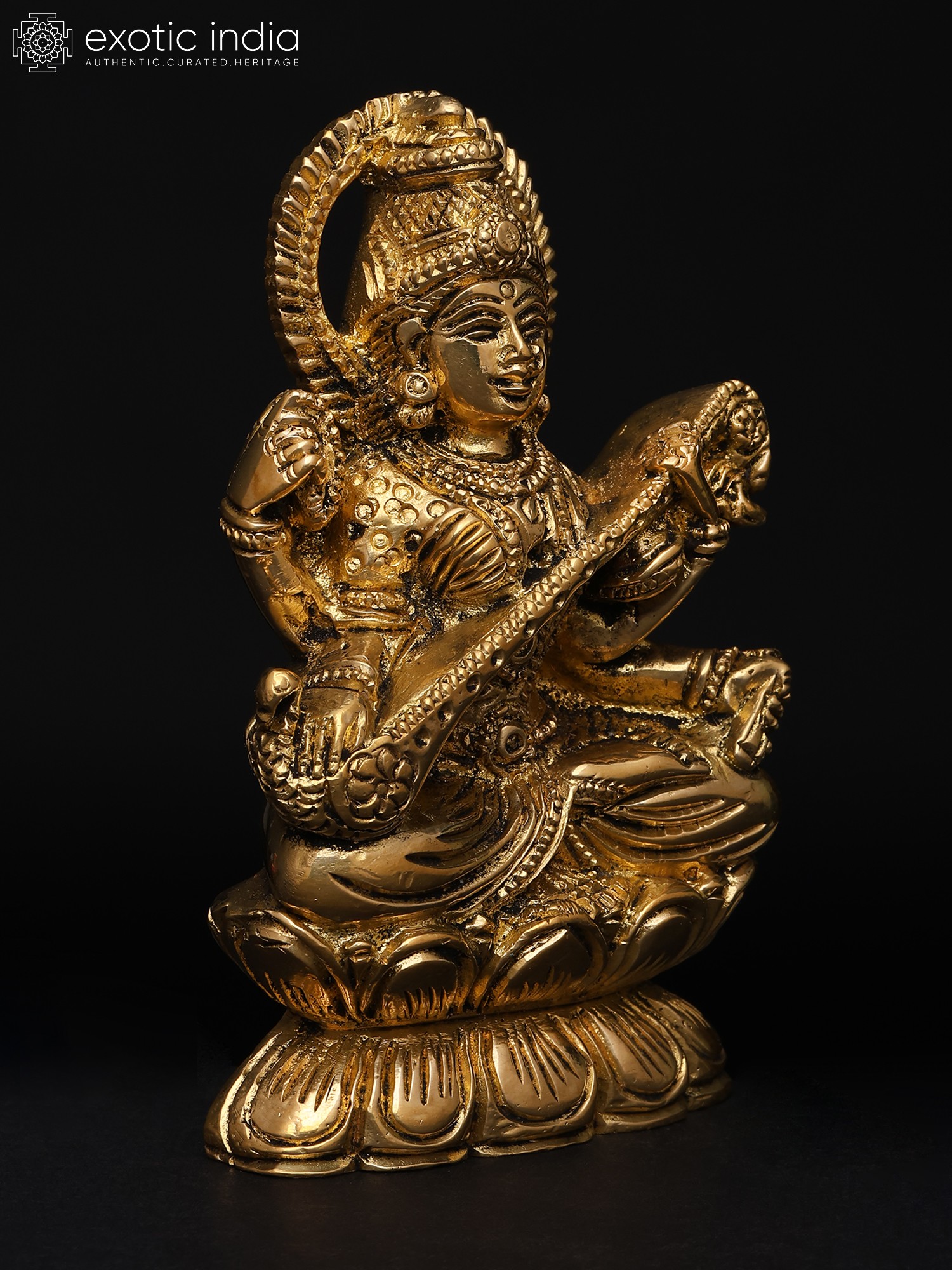 13" Goddess Saraswati Brass Sculpture | Handmade | Made in India