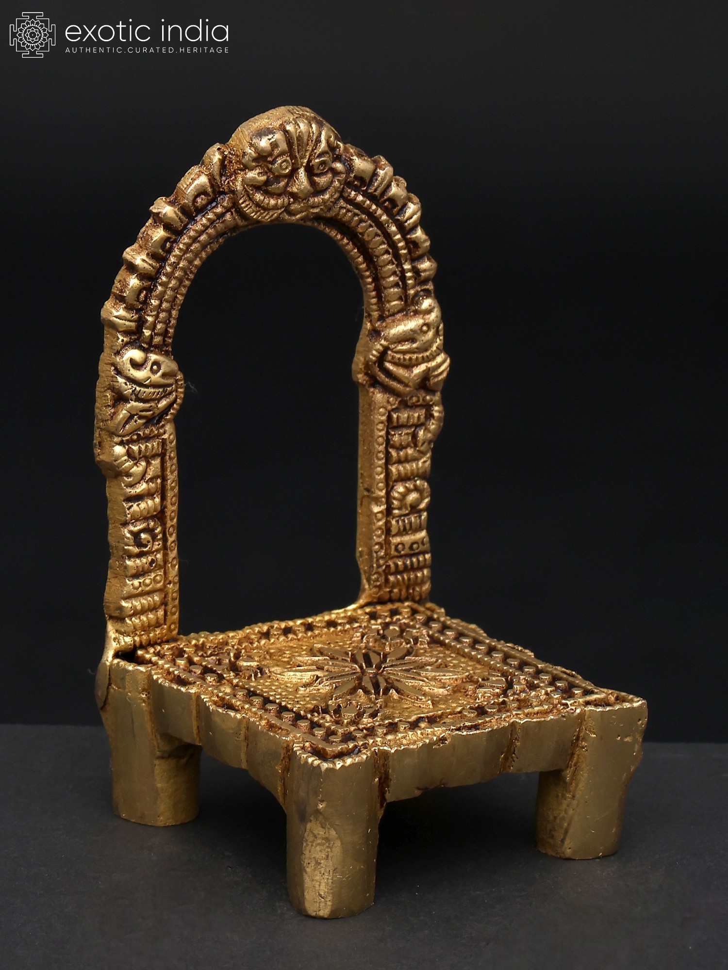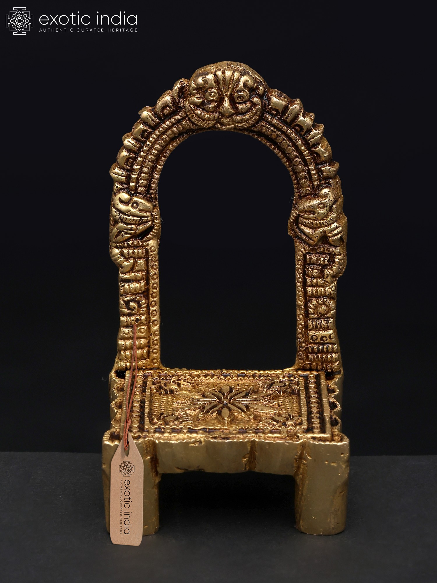10" Four Armed Blessing Lord Ganesha Seated on Kirtimukha Throne | Brass Statue