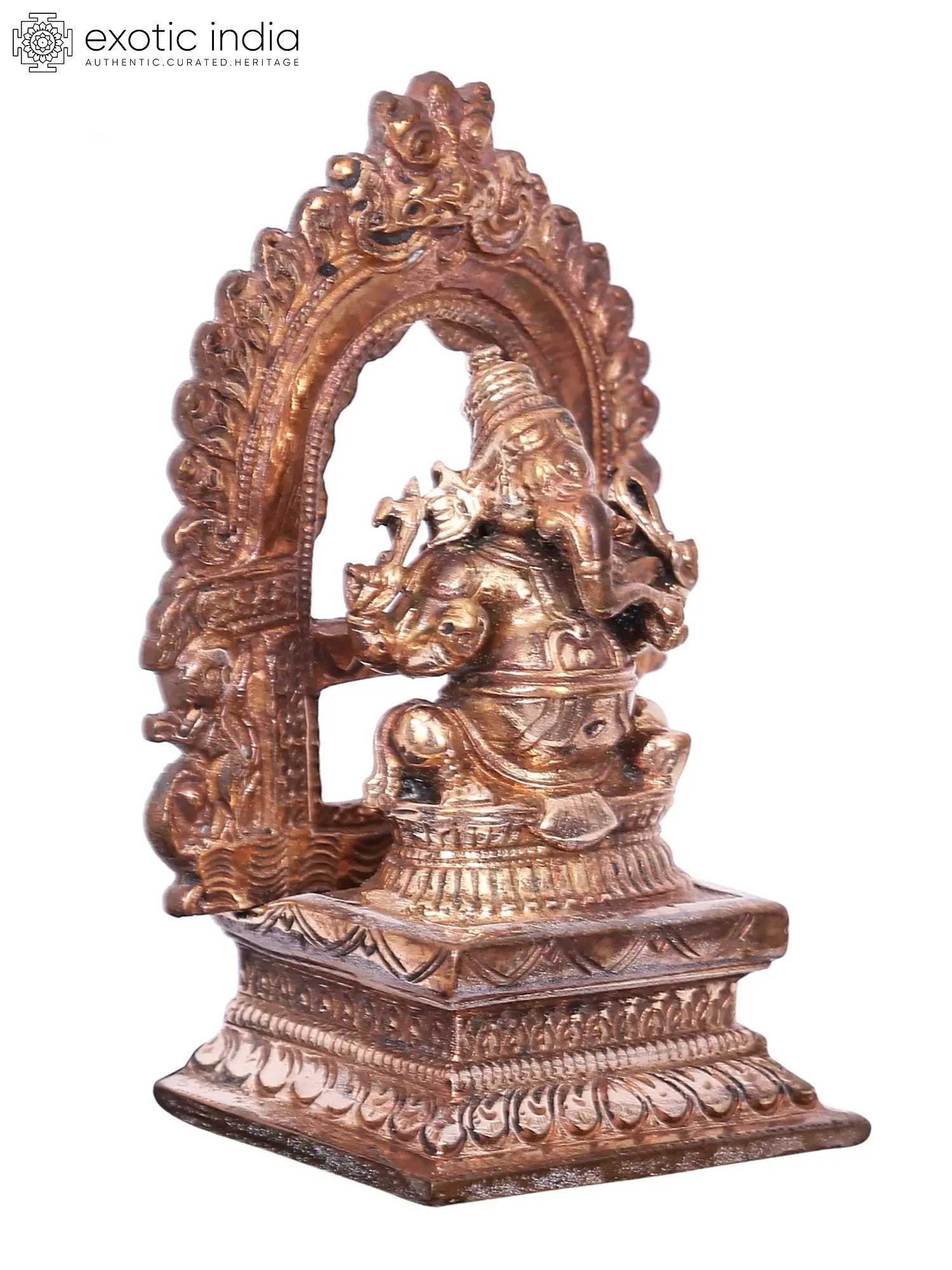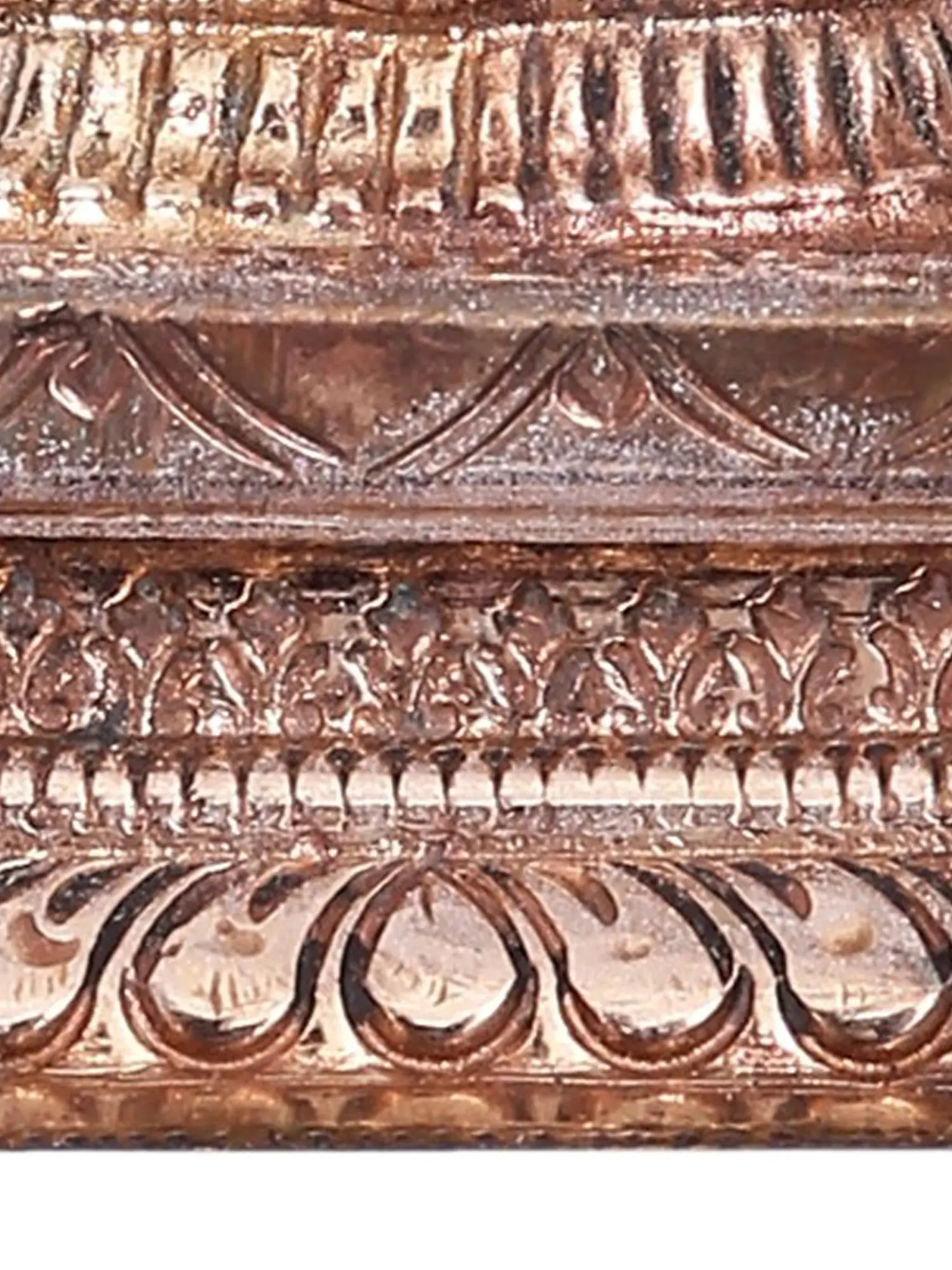 The magnificent Panchaloha bronze sculpture known as The Small Lord Ganesha reclining on Throne shows Lord Ganesha reclining magnificently on a throne. Ganesha, the Hindu god of intellect and wisdom, blesses people who aspire to education and achievement. His majestic presence and sympathetic look are depicted in this artwork. The sculpture inspires us to pursue our objectives with unflinching tenacity and to overcome challenges with grace and intellect. We are encouraged to believe in our capabilities by the presence of Lord Ganesha and have faith that he will lead us to success and prosperity.