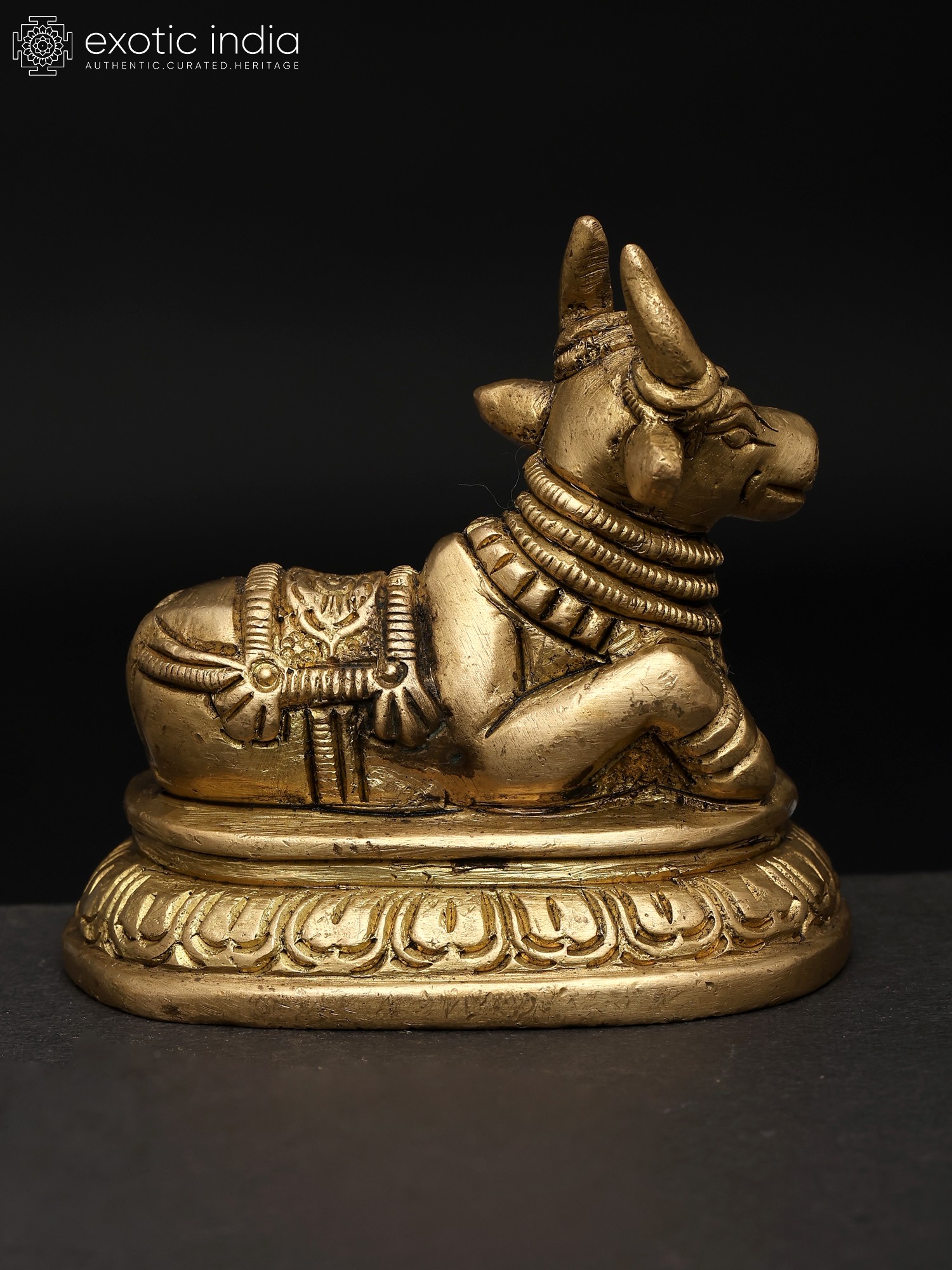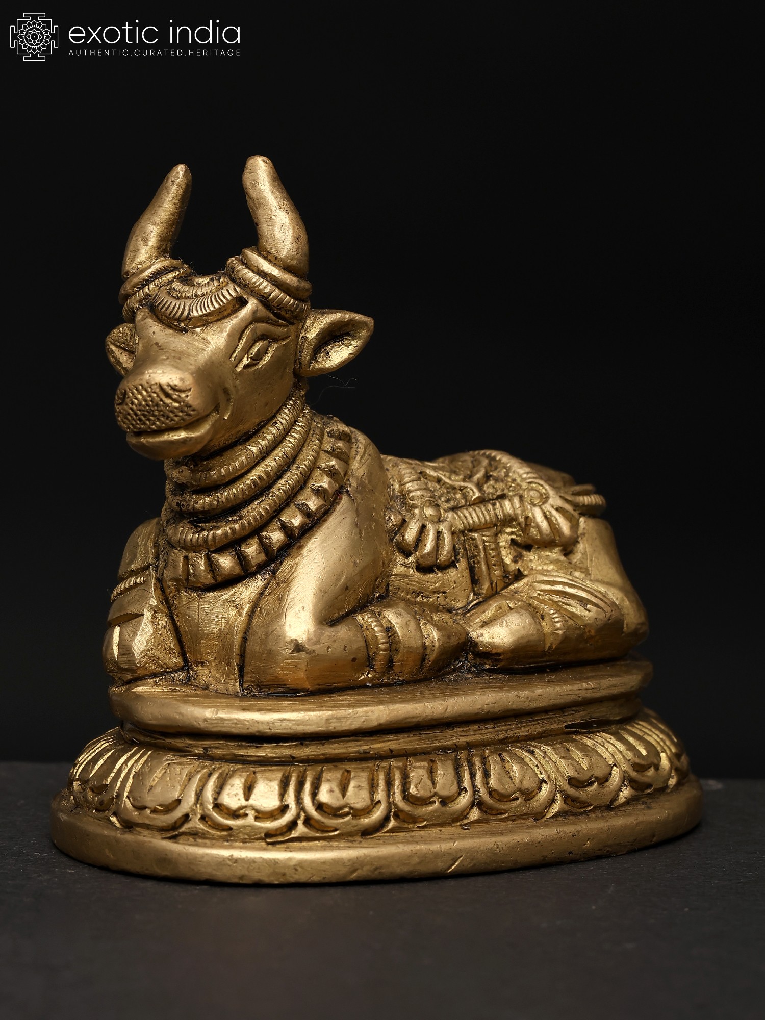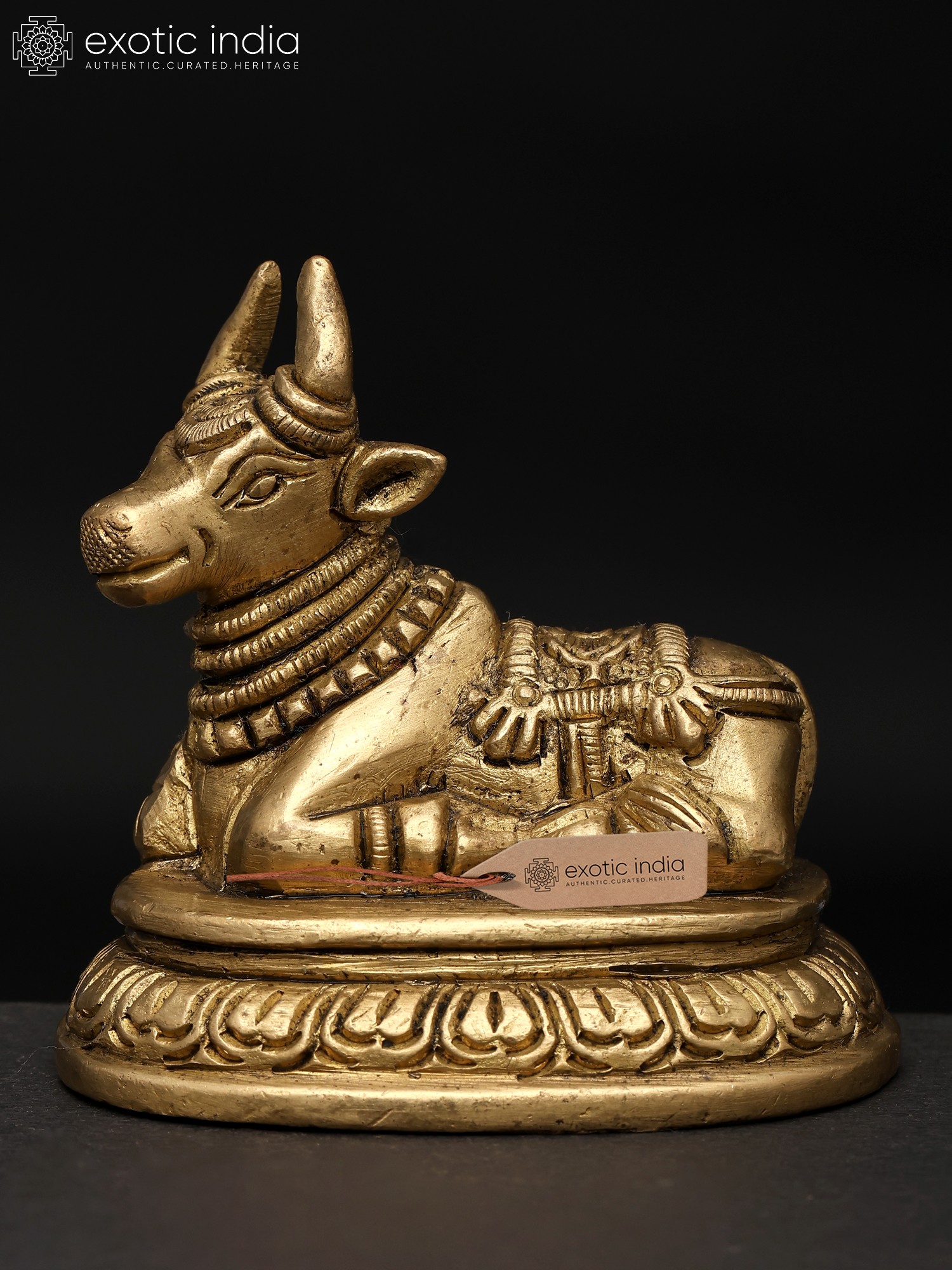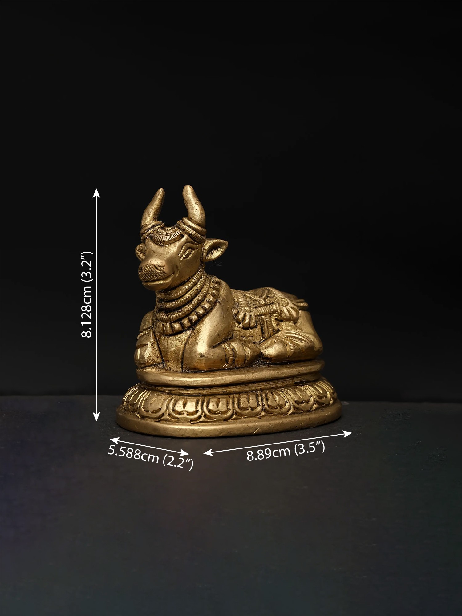 8" Nandi with Shiva Linga Brass Statue for Abhisheka - Handmade, Divine Indian Craft