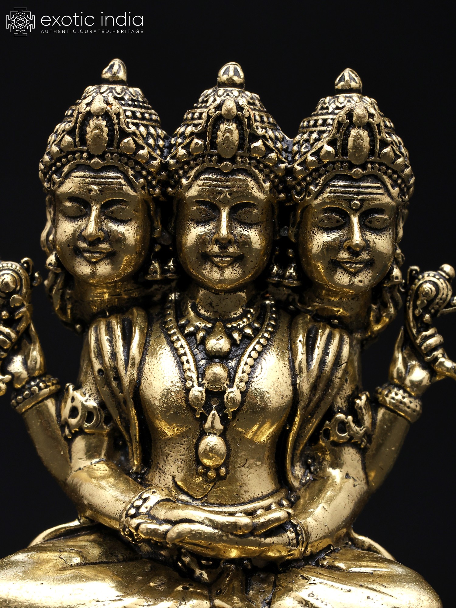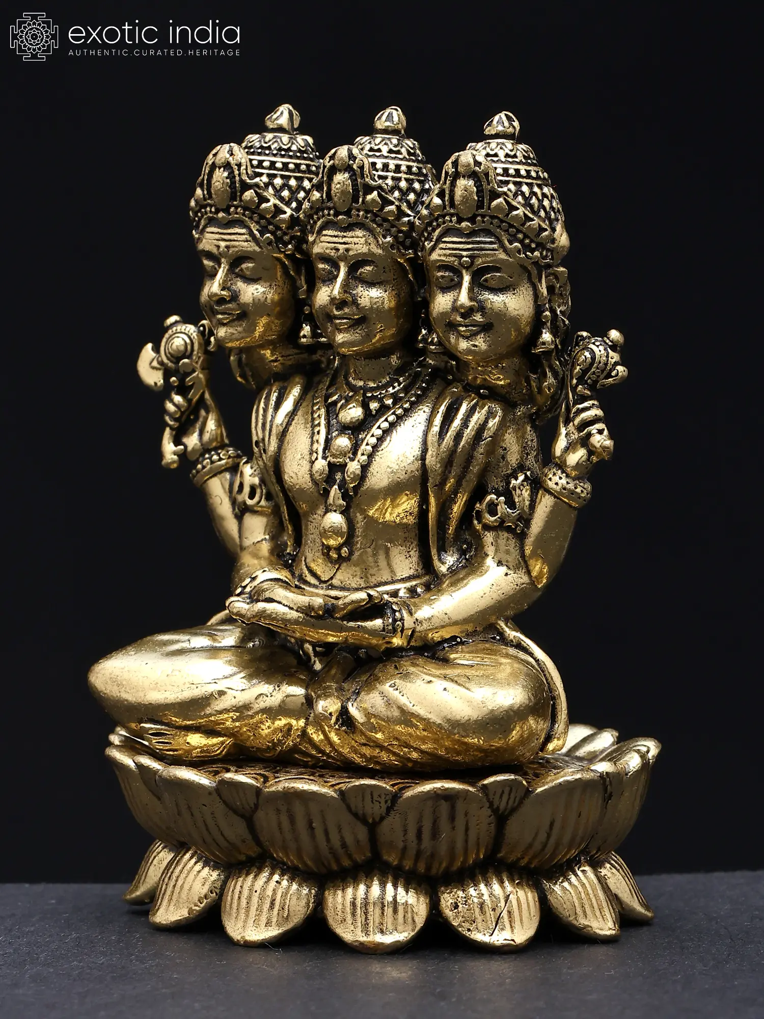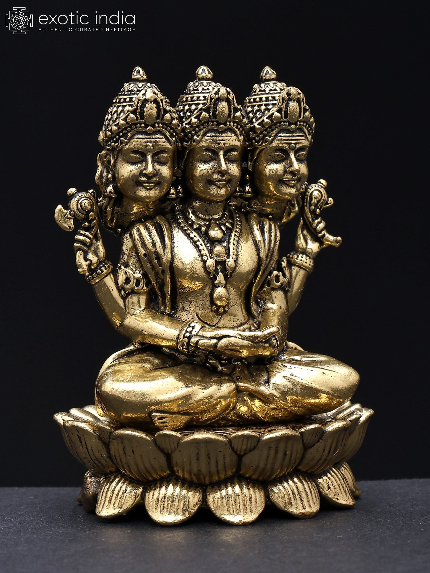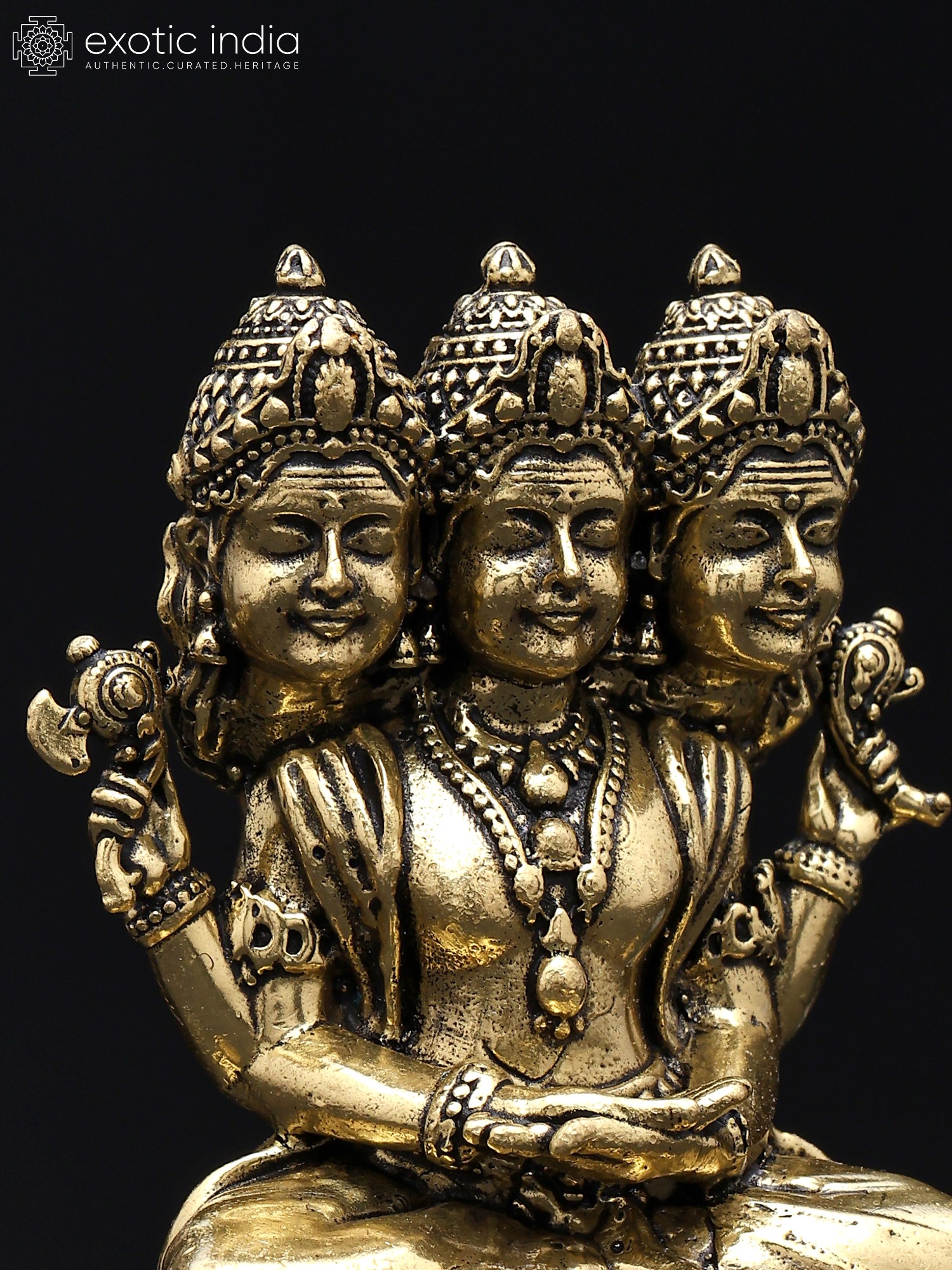 11" Lord Dattatreya Brass Statue | Handmade | Made in India