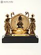 32" Brass Ganesha Idol Relaxing on Peacock Recliner | Brass Staute with Inlay Work