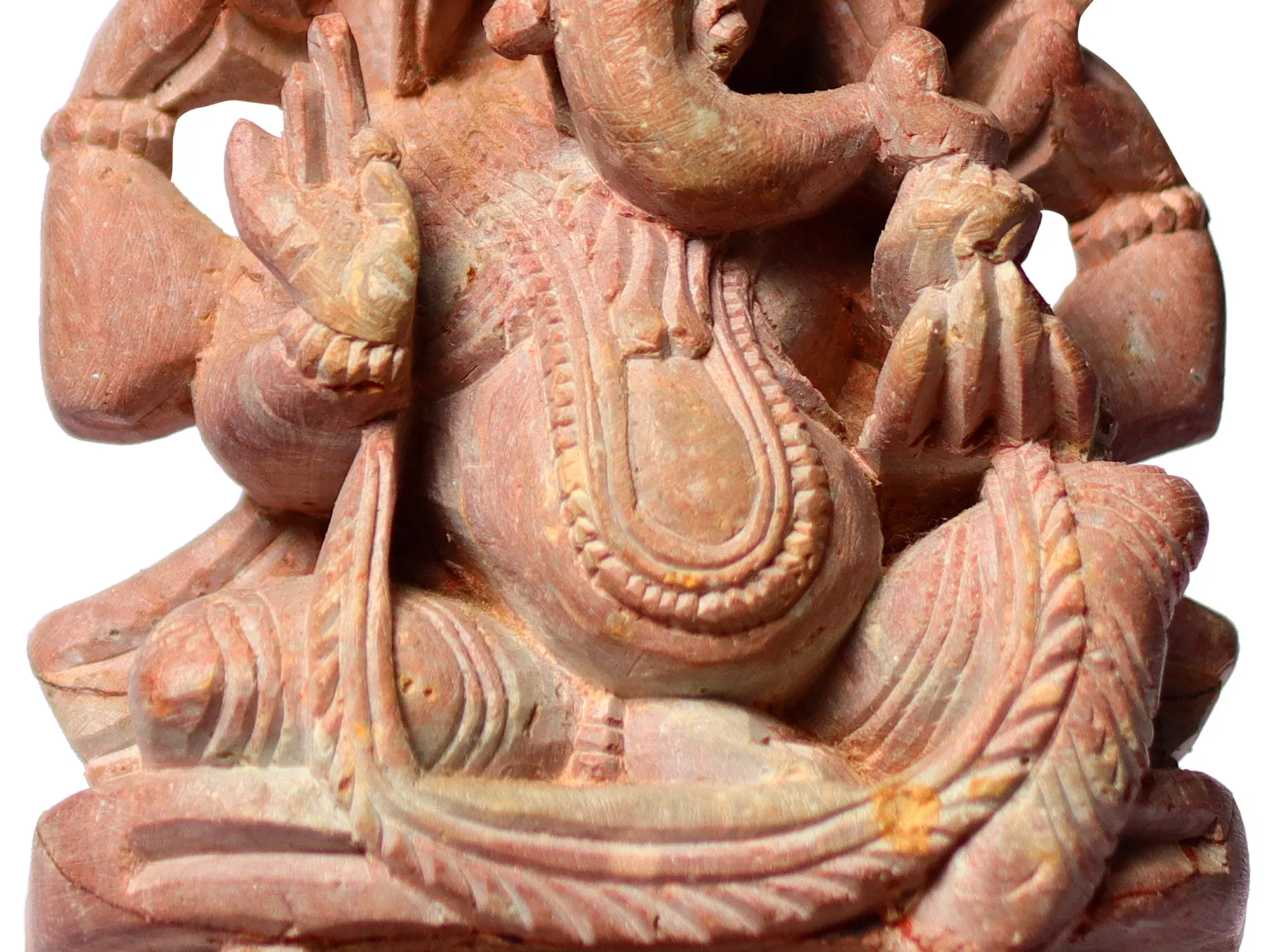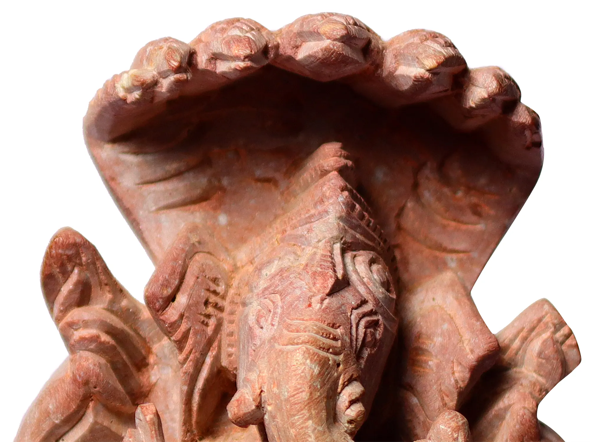 As the elephant-headed deity, Gajanan represents the harmonious coexistence of animal instincts and divine intelligence. His form reminds us that wisdom and compassion can dwell together, emphasizing the importance of balancing our earthly and spiritual aspects. The Lalitasana posture highlights the importance of approaching life with regal ease and composure. The Naga Chattravali above Gajanan signifies his protection and guardianship over devotees. The snakes' association with eternity and cyclic existence represents Gajanan's role as a guide, helping seekers transcend the cycle of birth and death toward spiritual liberation.