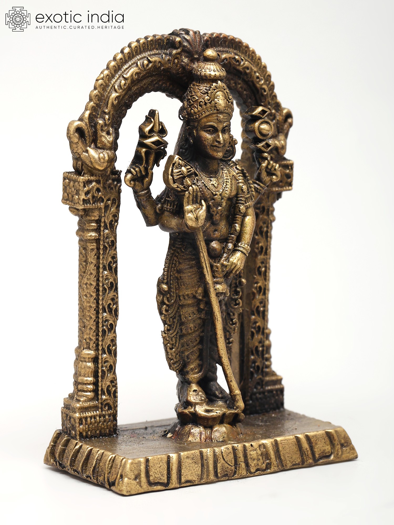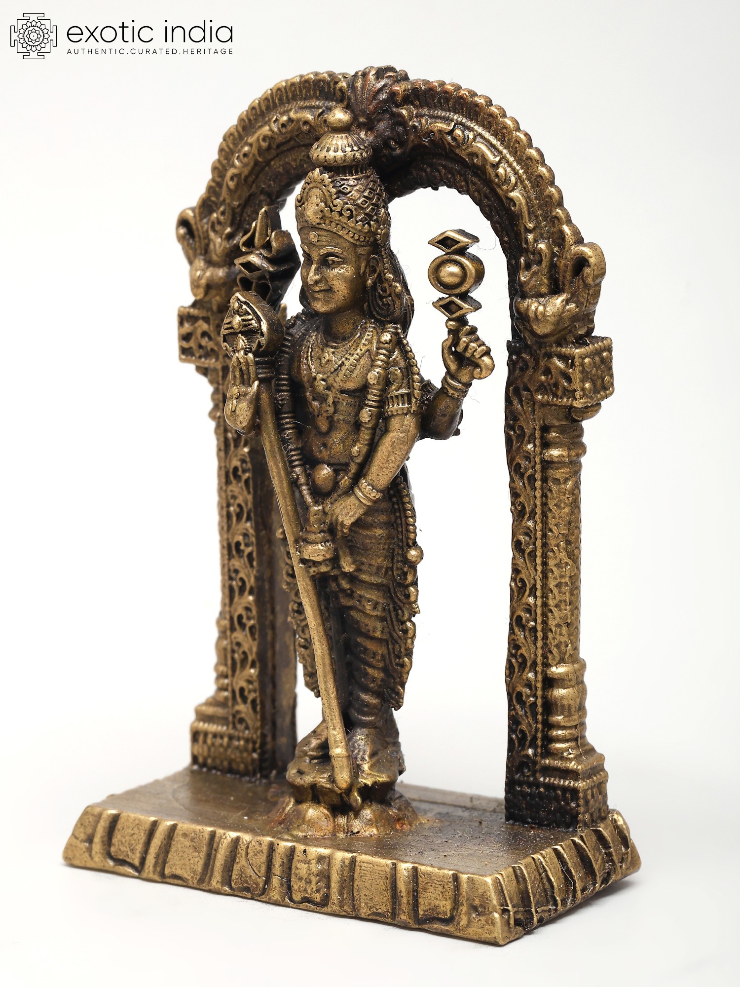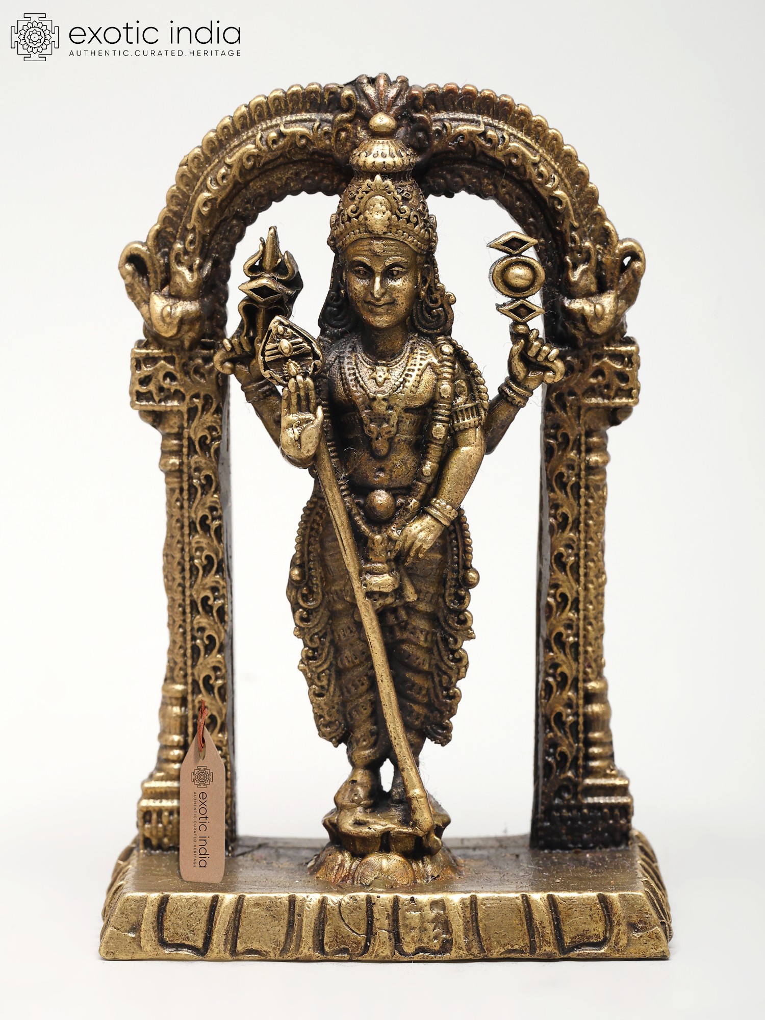 5" Small Brass Kartikeya Idol | Murugan Brass Statues | Handmade