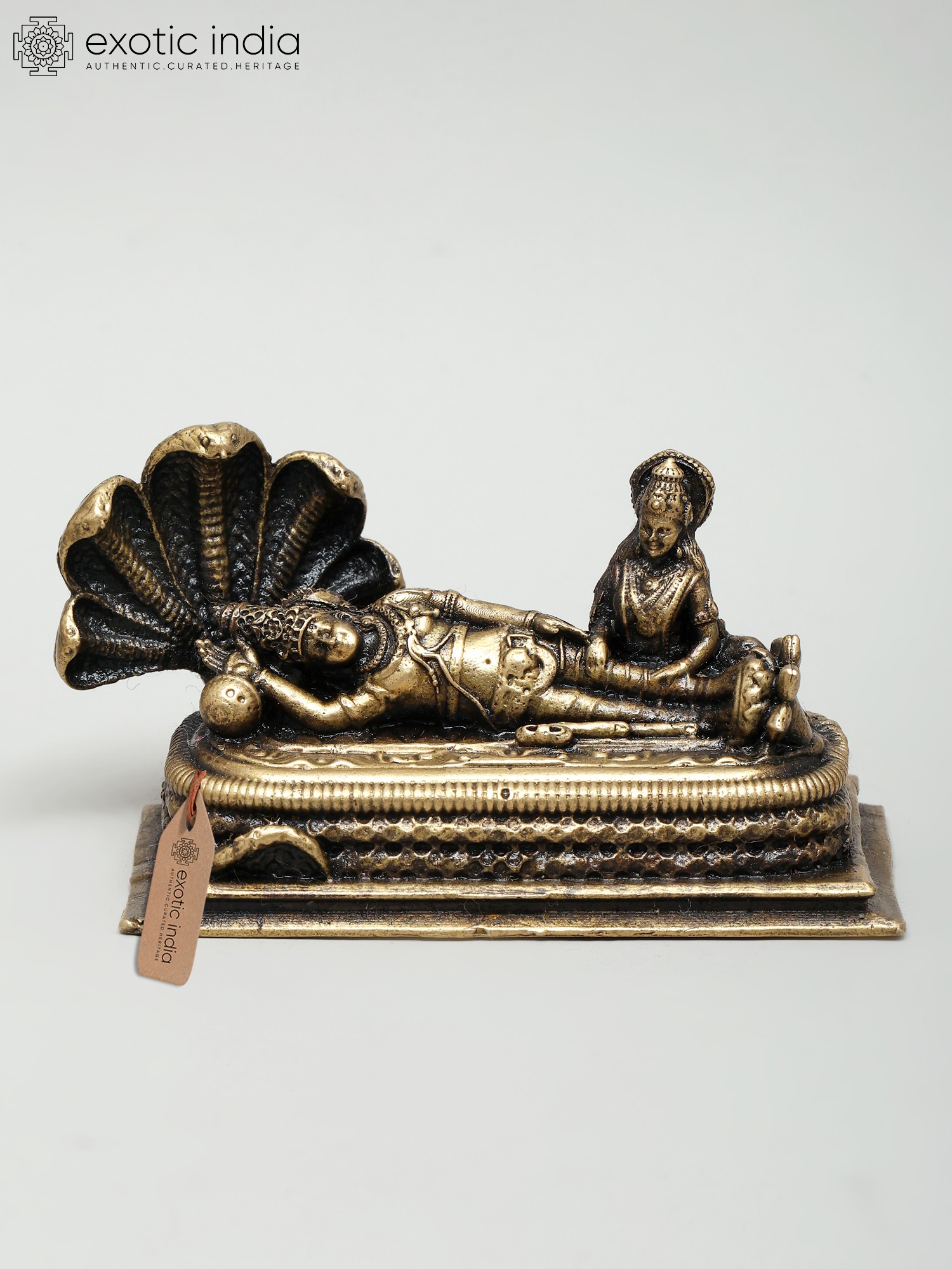 5" Brass Sheshasayi Vishnu Statue | Handmade | Made in India