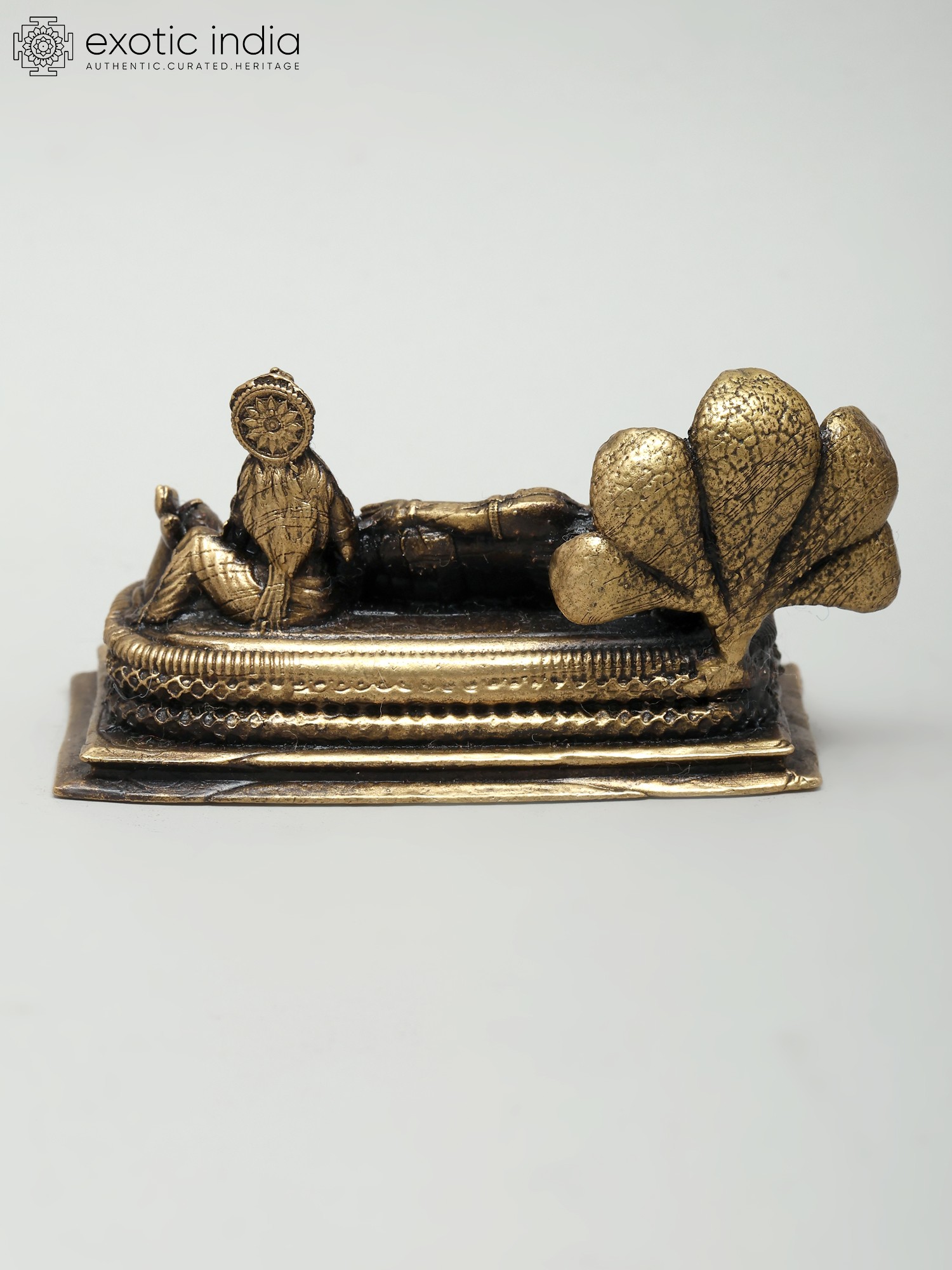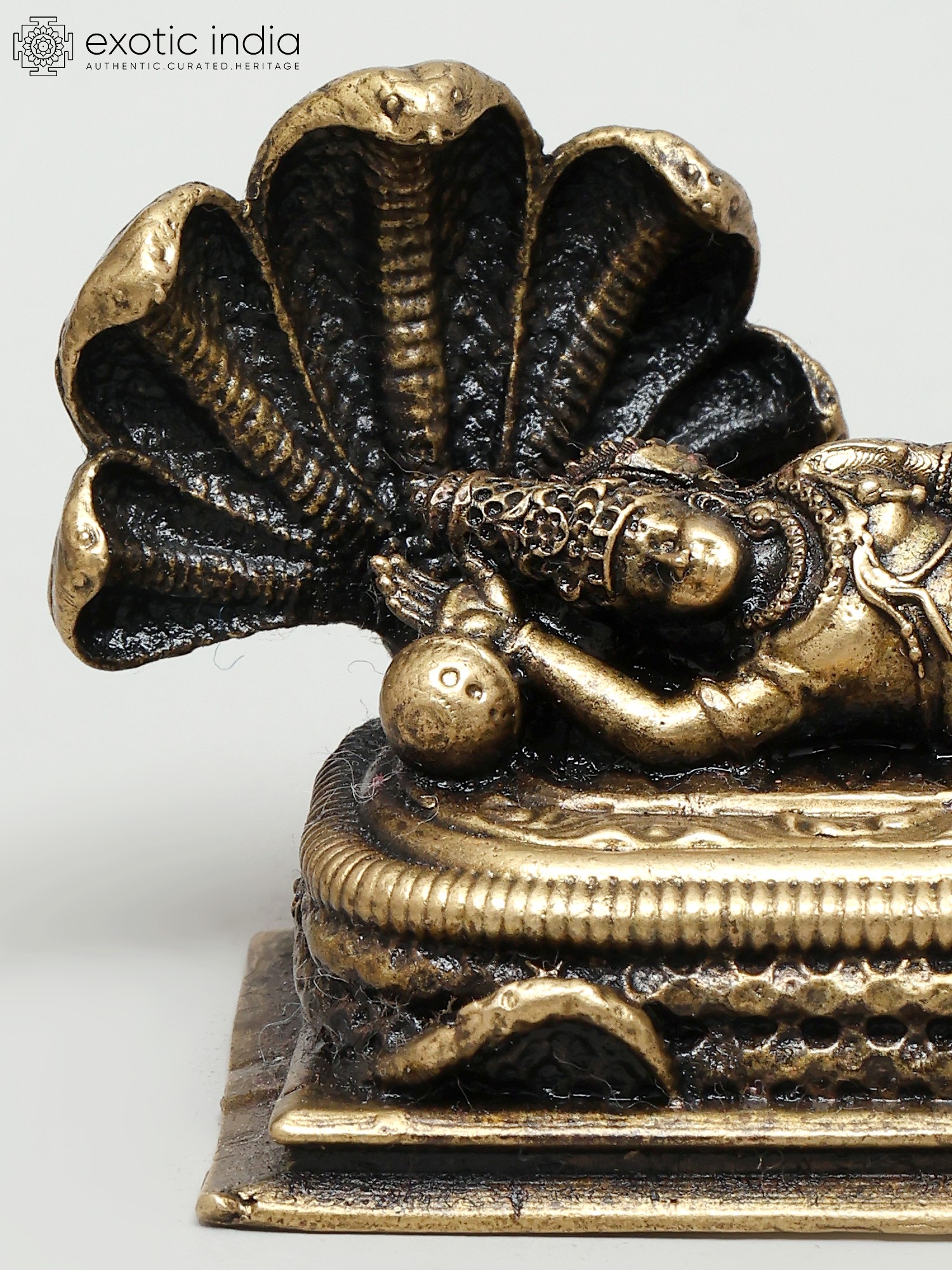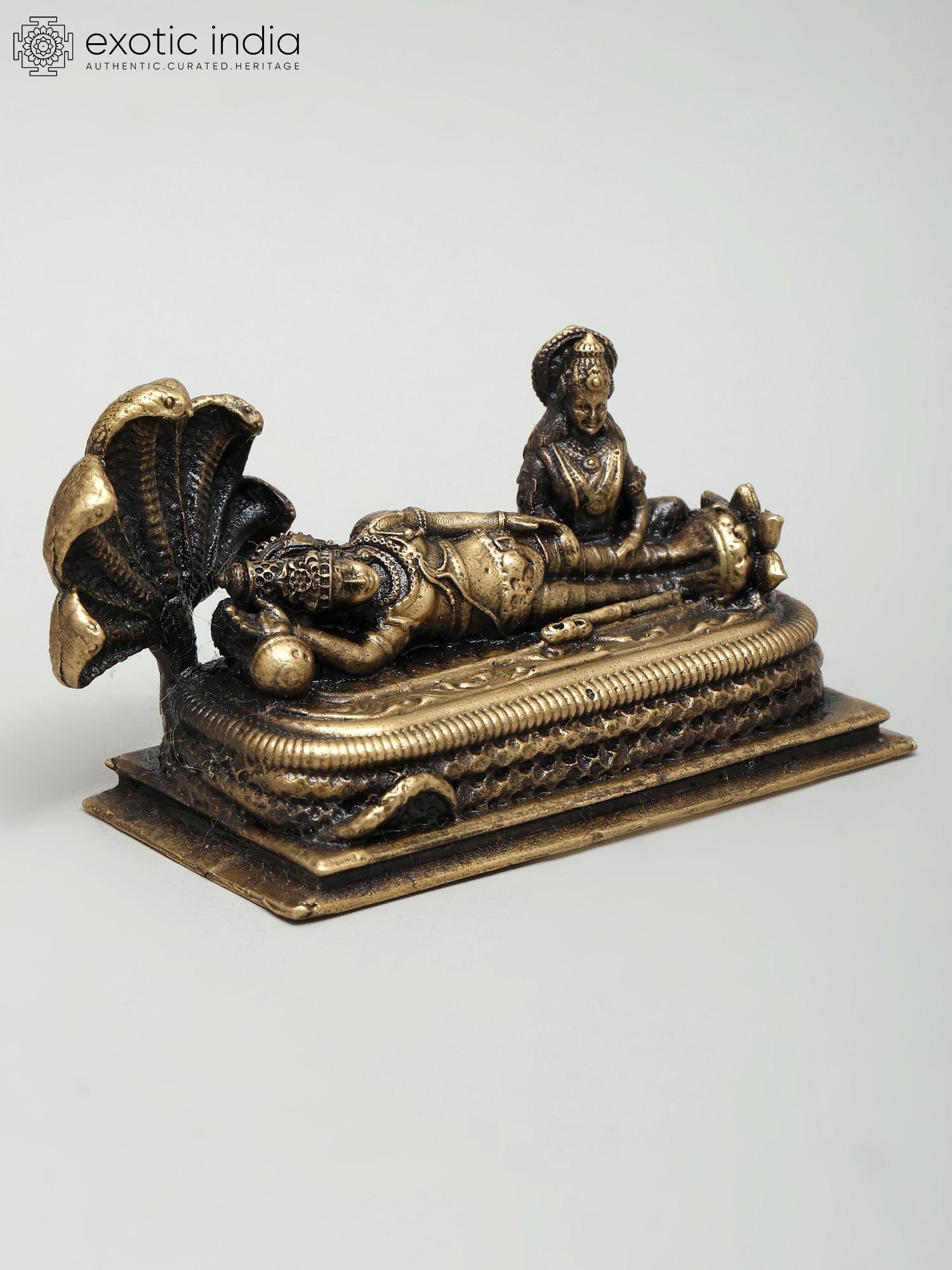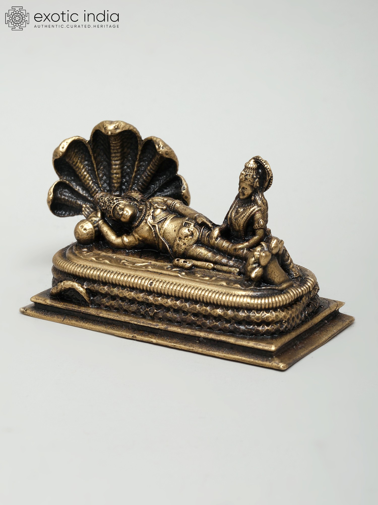 4" Brass Sheshashayi Vishnu Sculpture | Handmade | Made in India