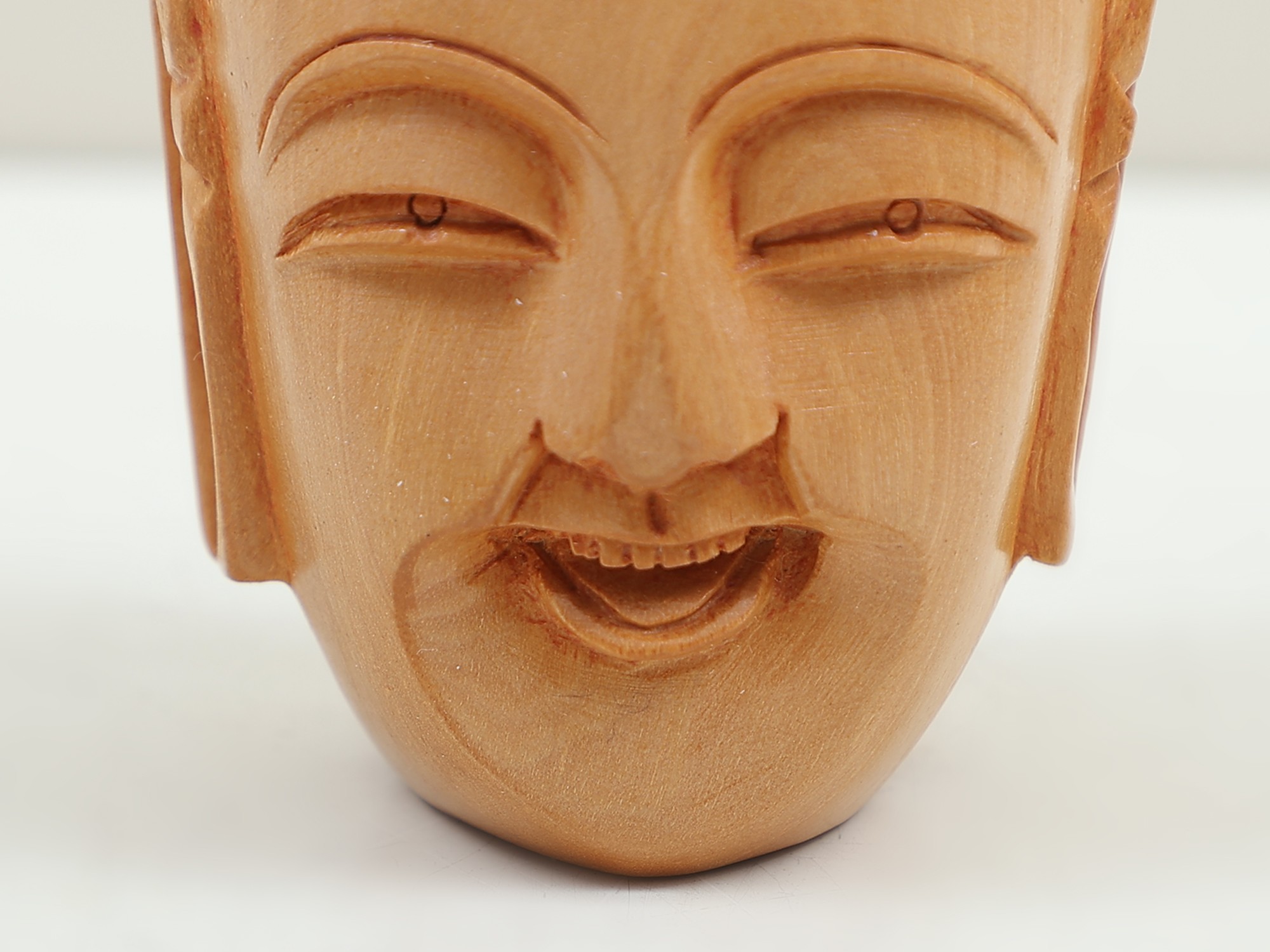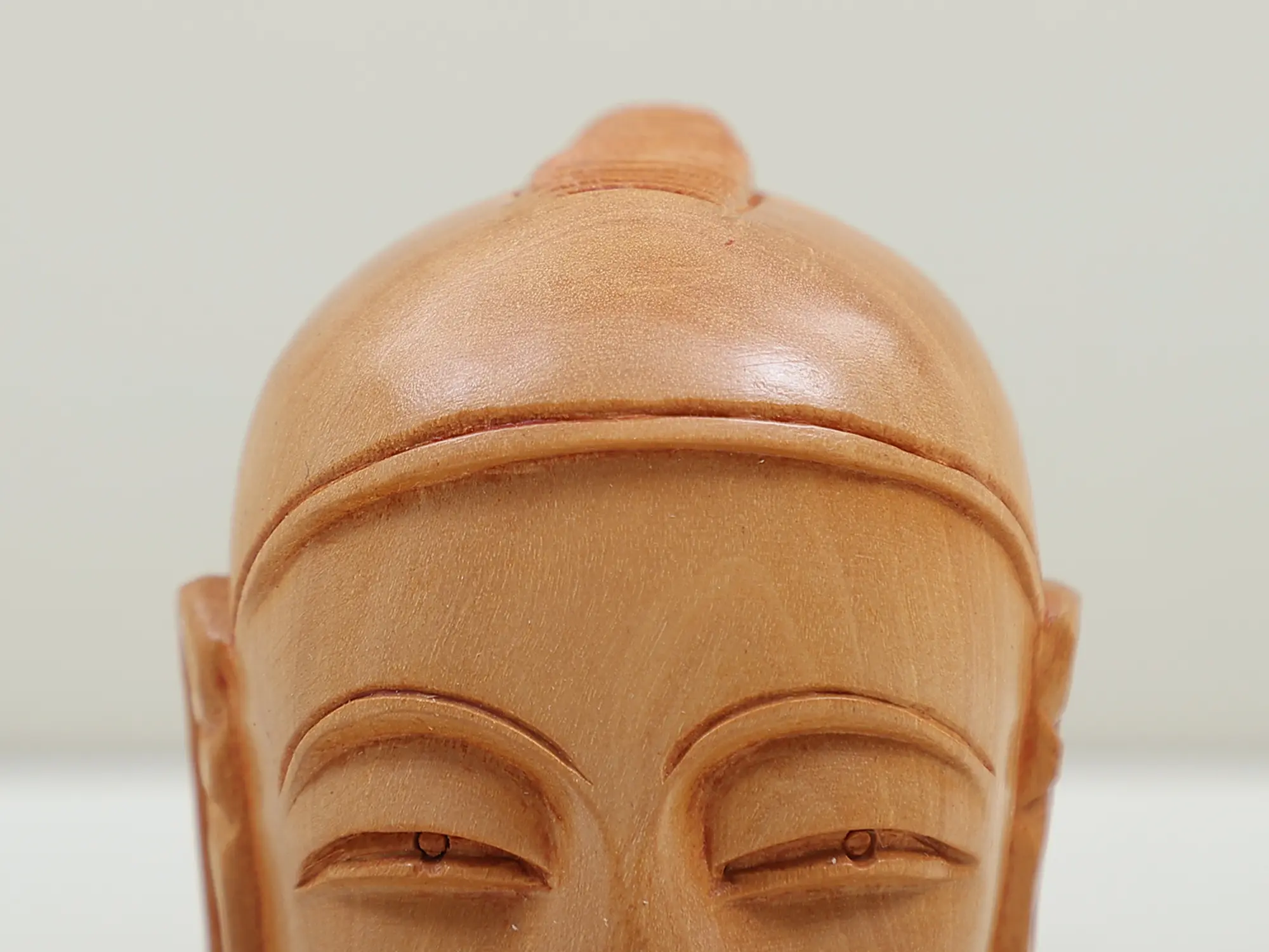 The gentle, upward curve of the mouth and the twinkling eyes carved into this wooden head evoke a sense of mirth and inner peace. It's a visual reminder to embrace life's simple joys and to approach challenges with a light heart. This piece is not merely decorative; it serves as a focal point for mindfulness and reflection. Imagine placing it on your desk to inspire a more positive outlook during busy workdays, or in your meditation space to deepen your practice with a spirit of joyous acceptance. Its smooth texture invites touch, further enhancing its grounding and calming effect. This small wooden head carries a large presence, radiating warmth and good cheer. ––––––––––
