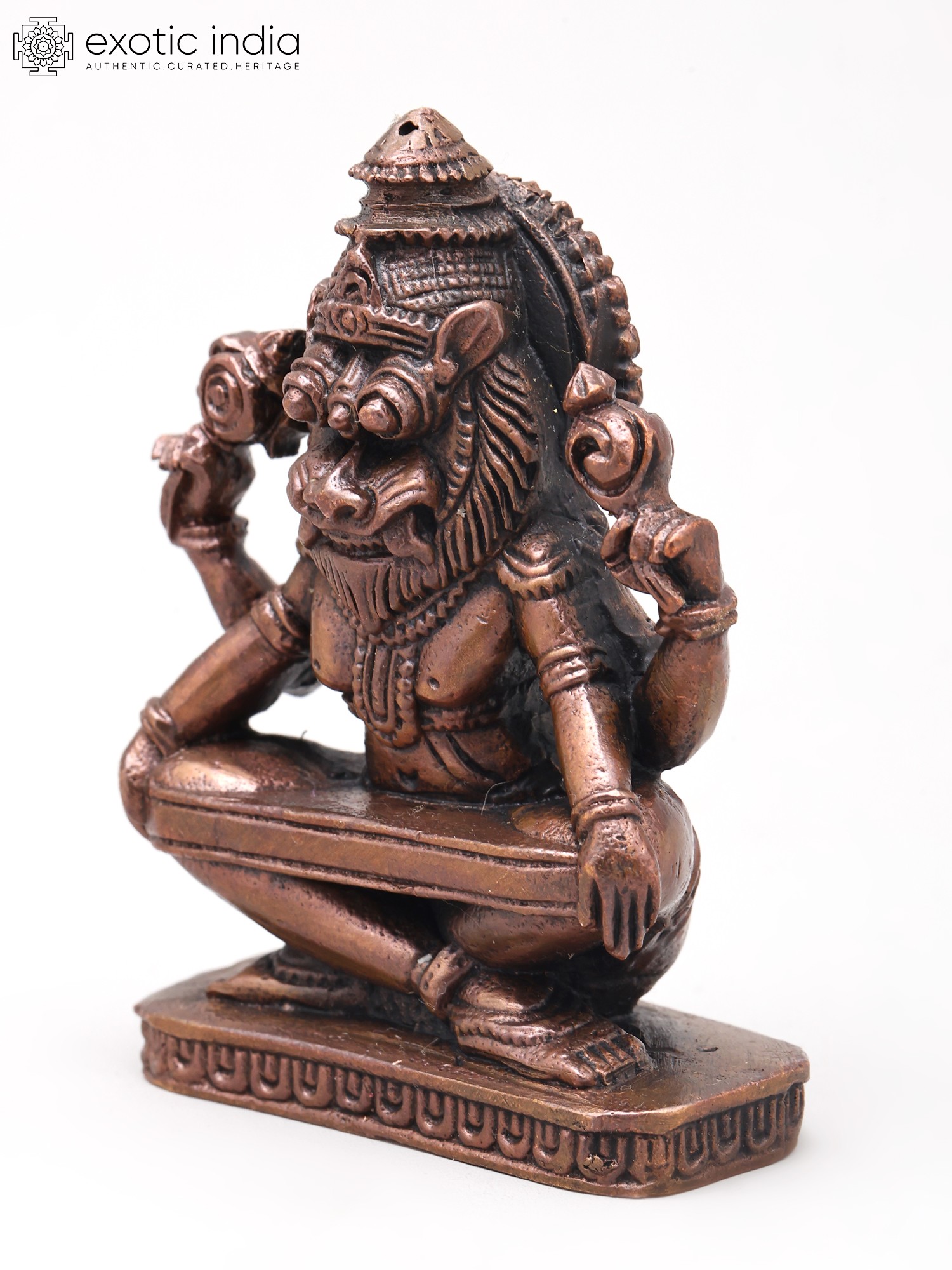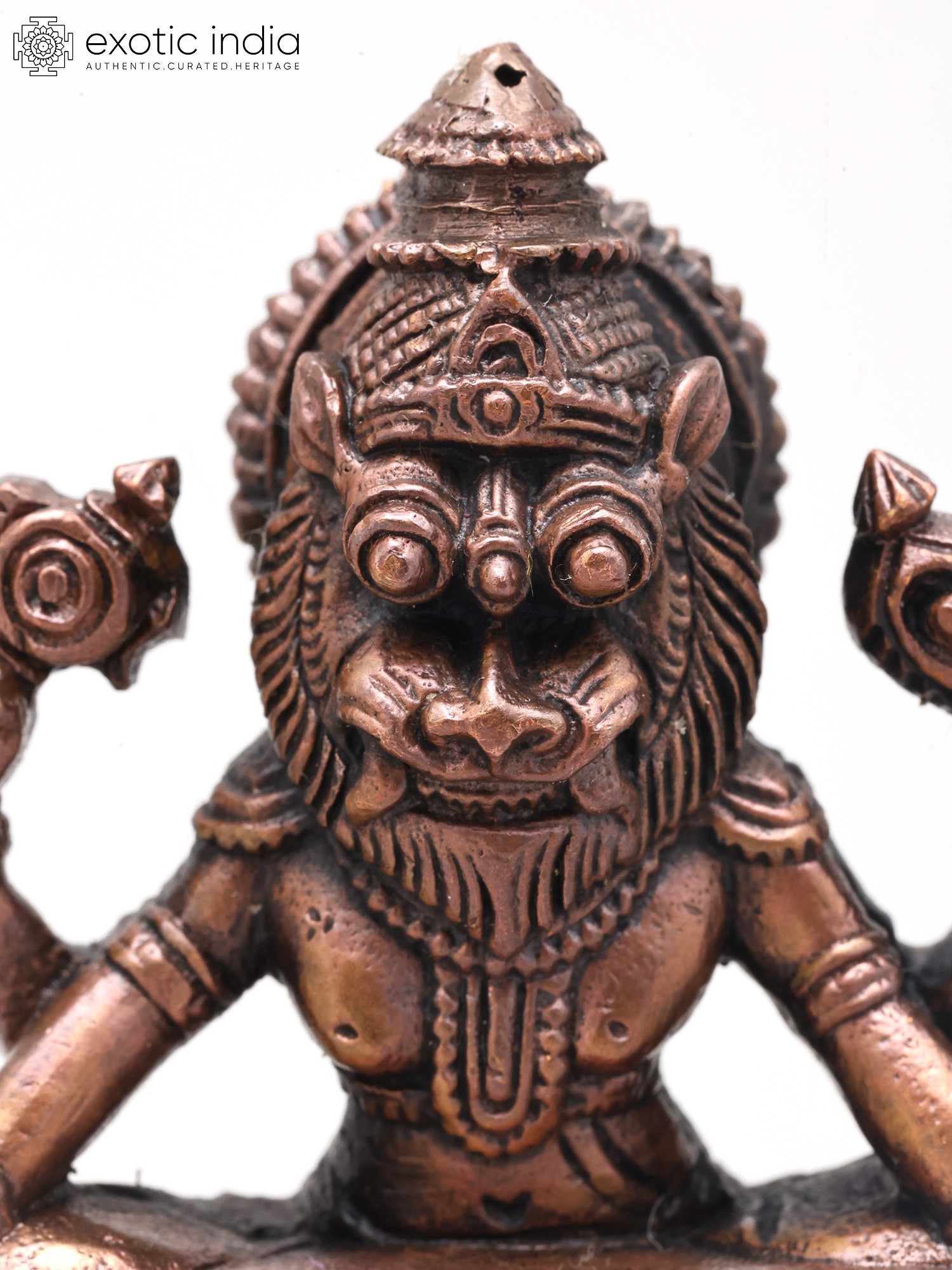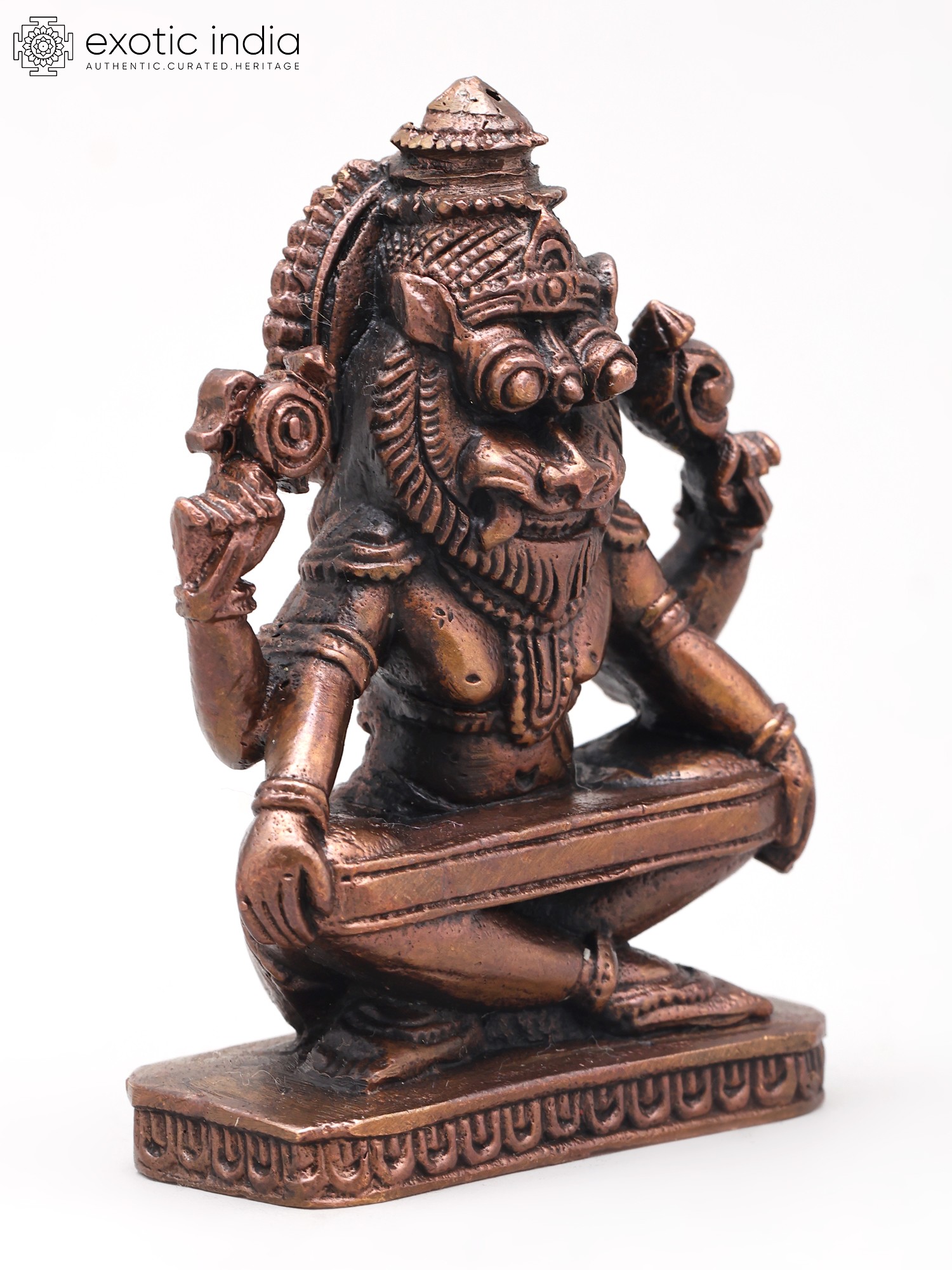 4" Small Lord Narasimha in Yoga Mudra | Copper Statue