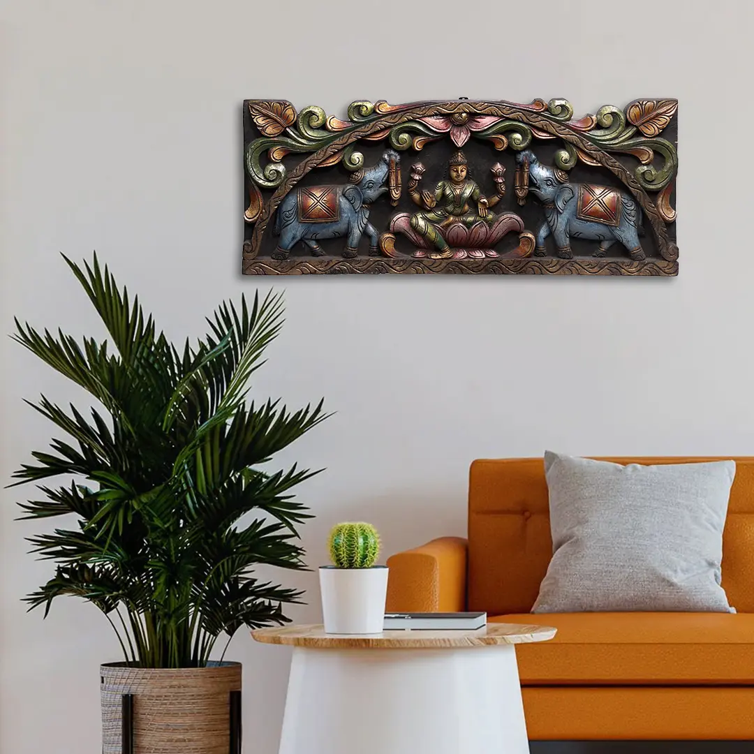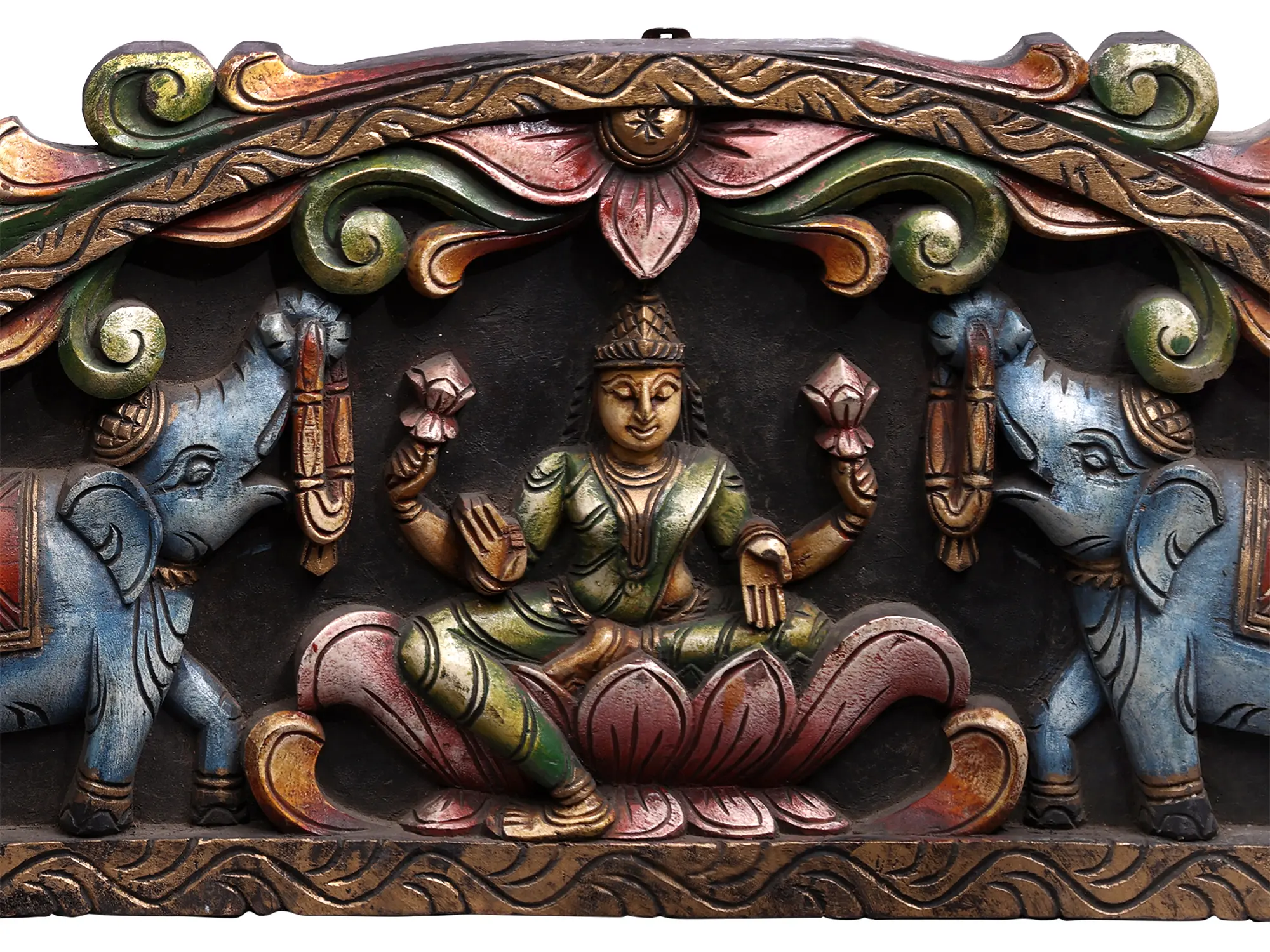 Experience the embodiment of prosperity and abundance without wall panel of Gaja Lakshmi. Representing wealth and fortune, Gaja Lakshmi is depicted with grace, surrounded by auspicious elephants showering blessings. This depiction emanates divine grace and abundance. She stands as a symbol of prosperity and auspiciousness, enriching any space with her divine presence.