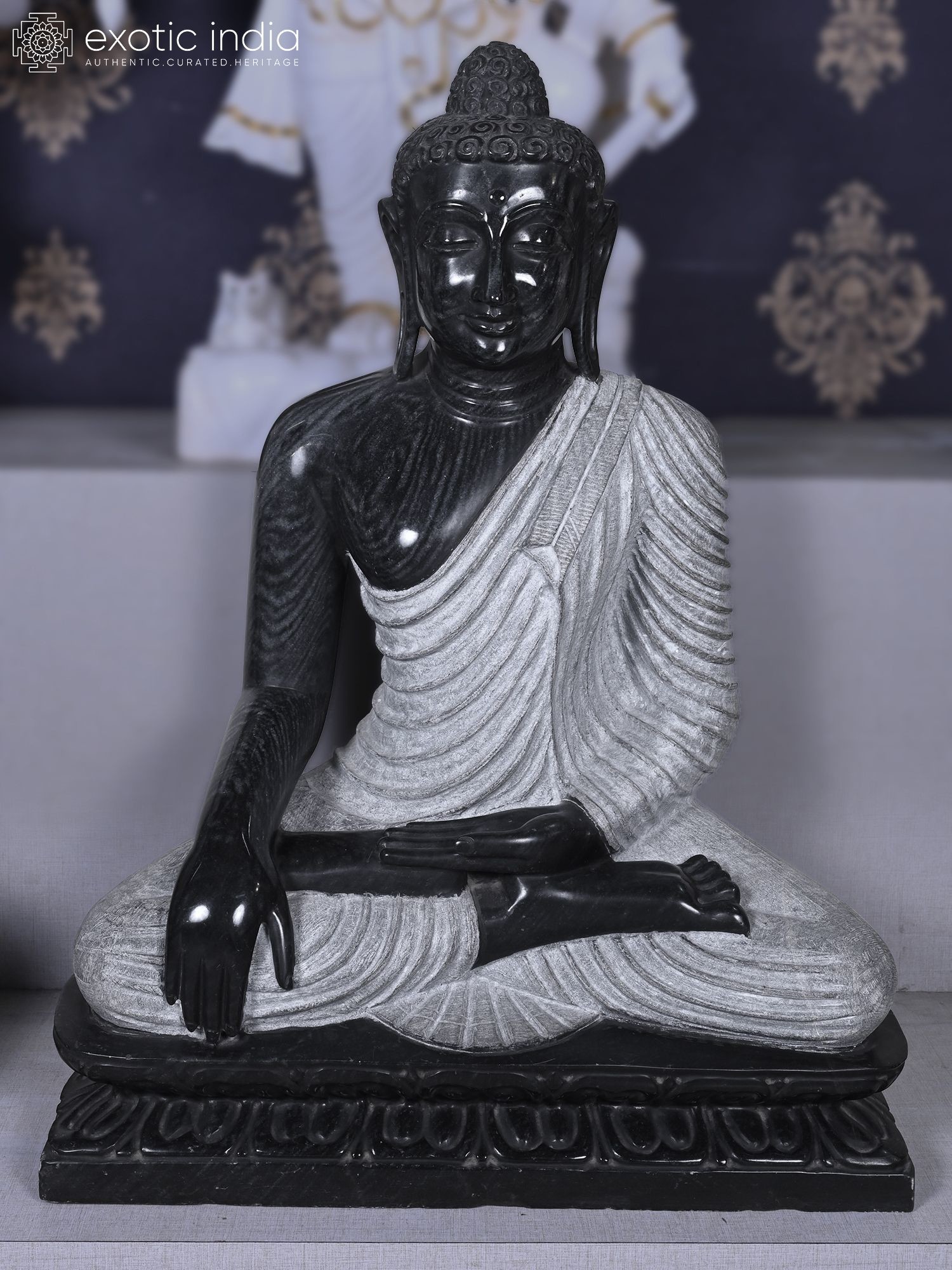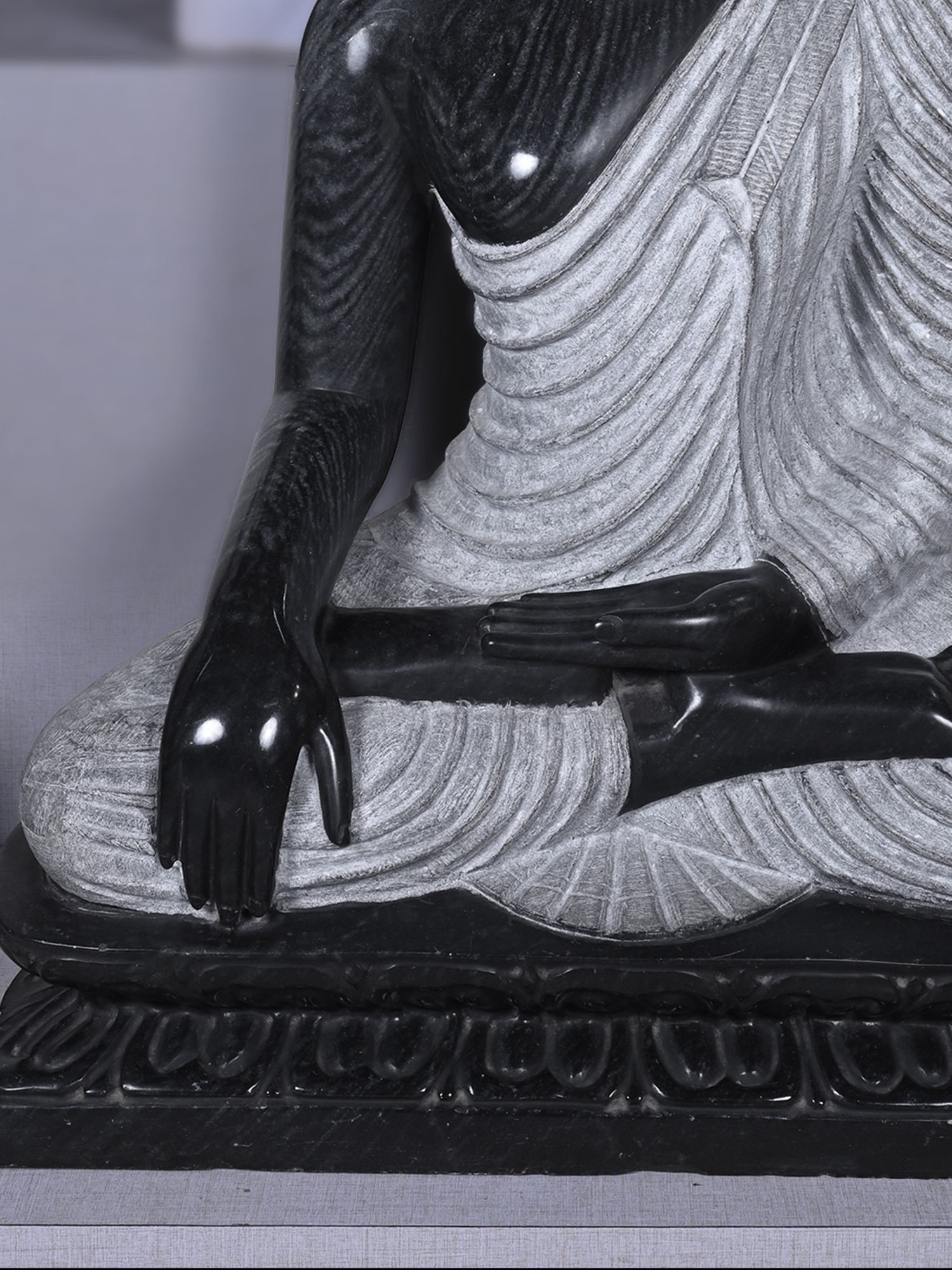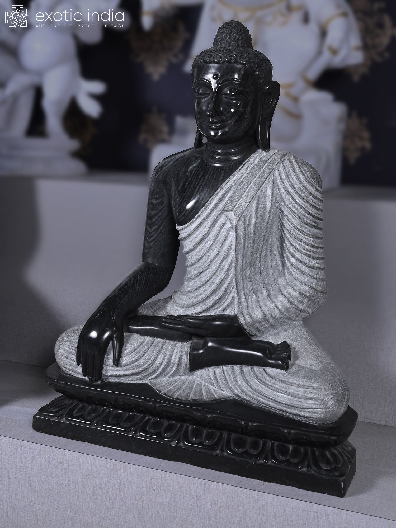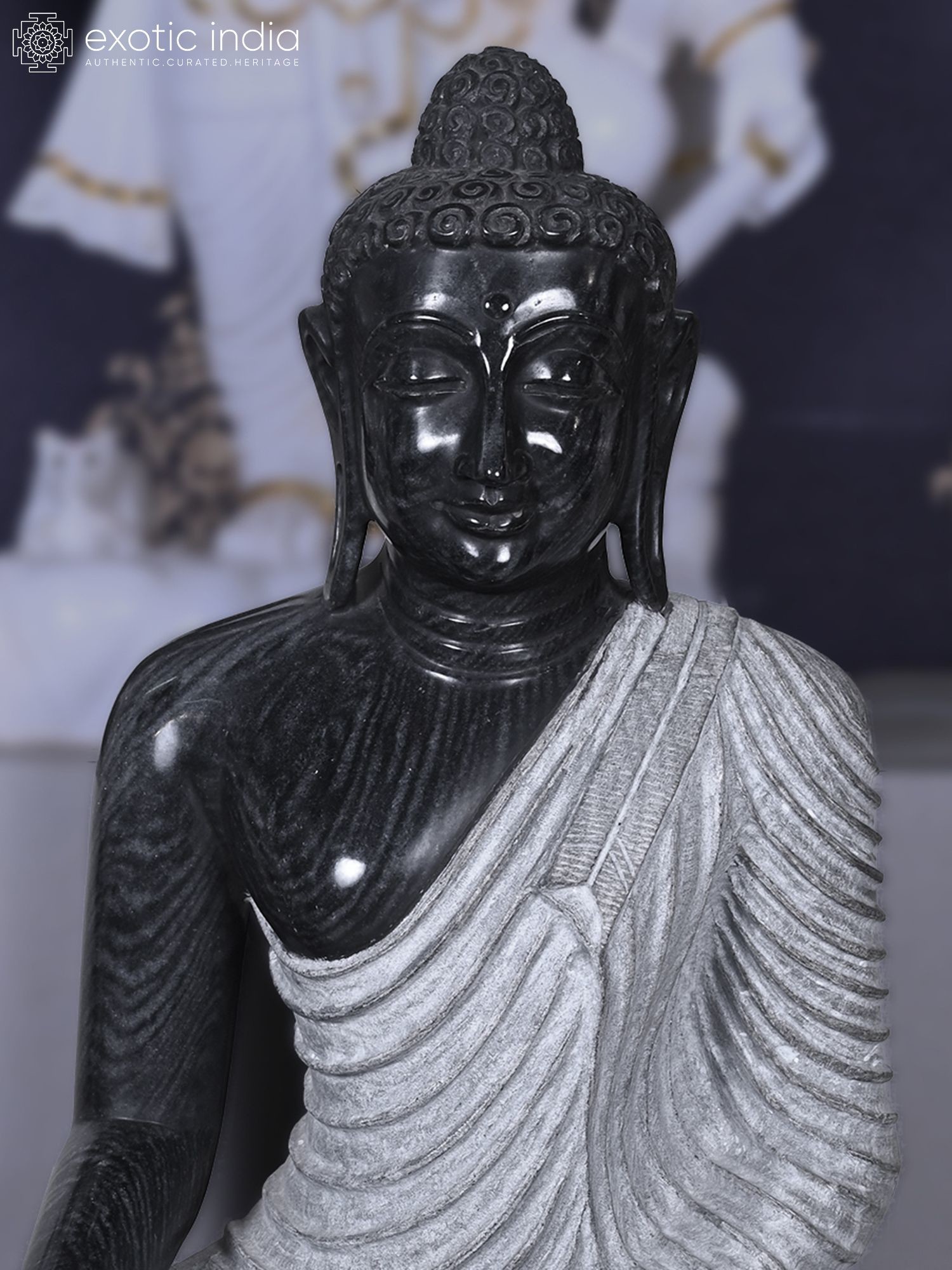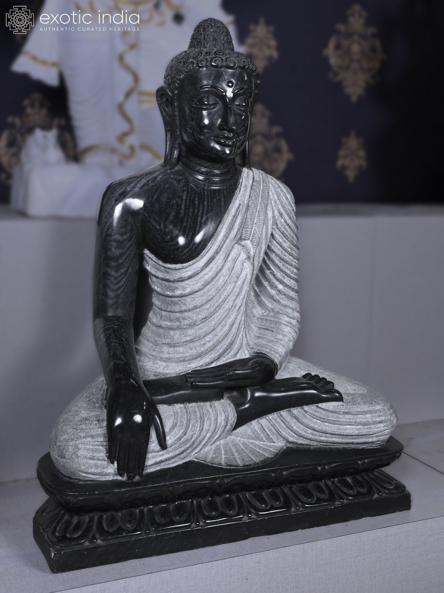 30" Lord Buddha | Black Stone Statue | Exquisite Indian Art