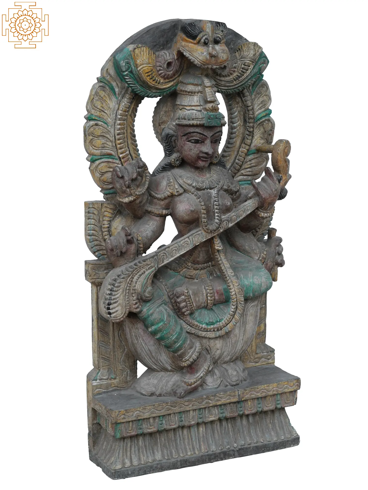 72" Dancing Goddess Saraswati with Kirtimukha Arch | Wood Carving