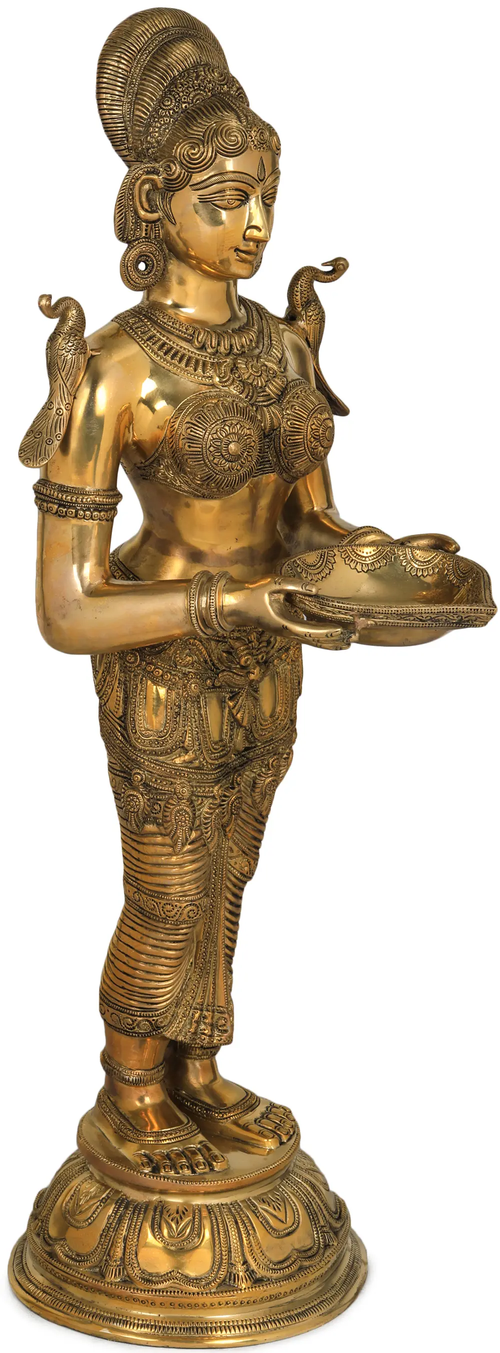 Illuminate your home with the divine presence of Deepalakshmi, embodied in our Large Size Deepalakshmi in Brass. This stunning brass sculpture, handmade with love and care in India, is a symbol of light, purity, and spirituality. Deepalakshmi, the goddess of light, is intricately crafted to capture her graceful form and serene expression. As you light the diya placed in her hands, it symbolizes the dispelling of darkness and the arrival of divine blessings.