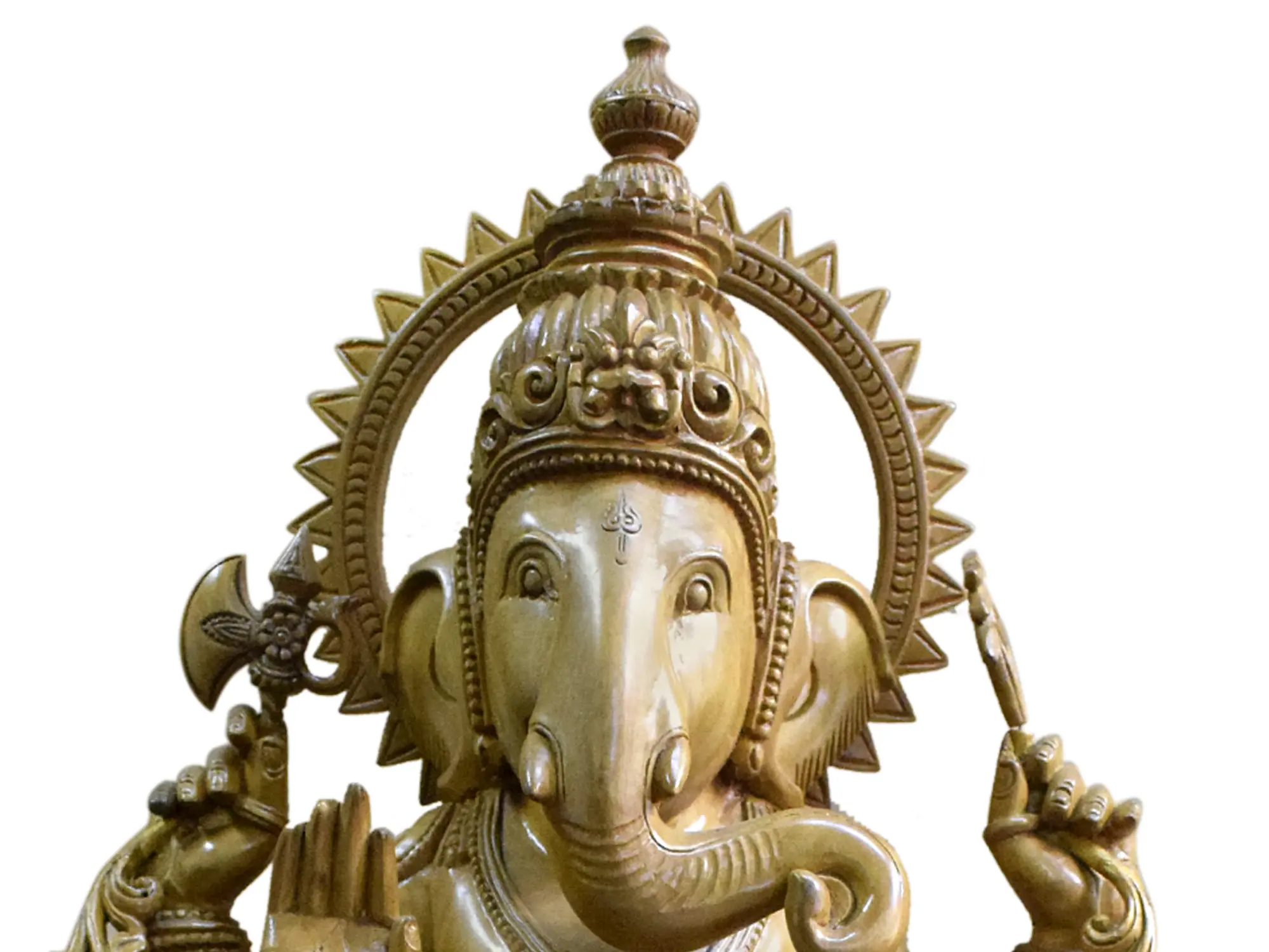 Welcome the divine presence of Bhagawan Ganapati, the beloved elephant-headed deity, into your home with this exquisite 30-inch wooden statue. Carved from the finest White Cedar wood, renowned for its resilience and beautiful grain, this masterpiece is a testament to meticulous craftsmanship and spiritual devotion. Bhagawan Ganapati, also known as Vinayaka or Ganesha, is revered as the god of beginnings, wisdom, intellect, and the remover of obstacles. He is invoked at the start of any new venture, ensuring success and prosperity.
