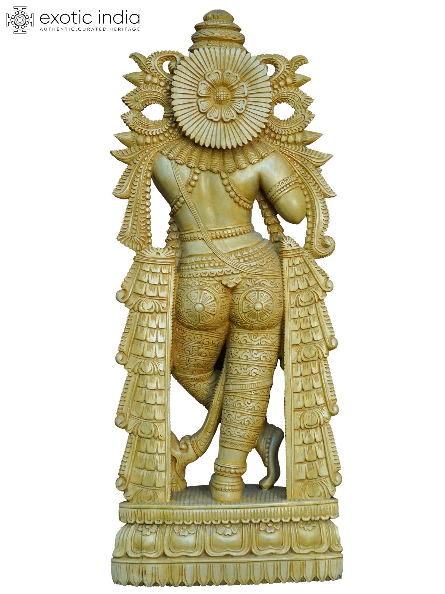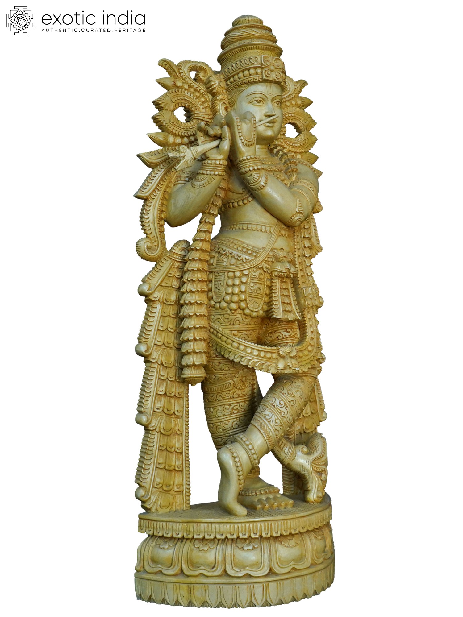 36" Large Venugopal Krishna | Wood Carved Statue Plus Wall Hanging