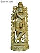 24" Lord Krishna Playing Flute with Cow | Wood Carving