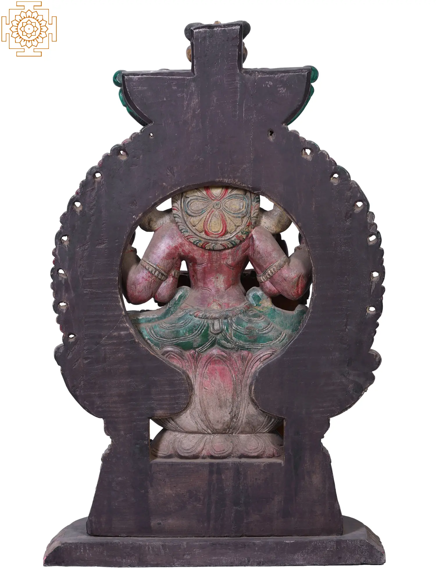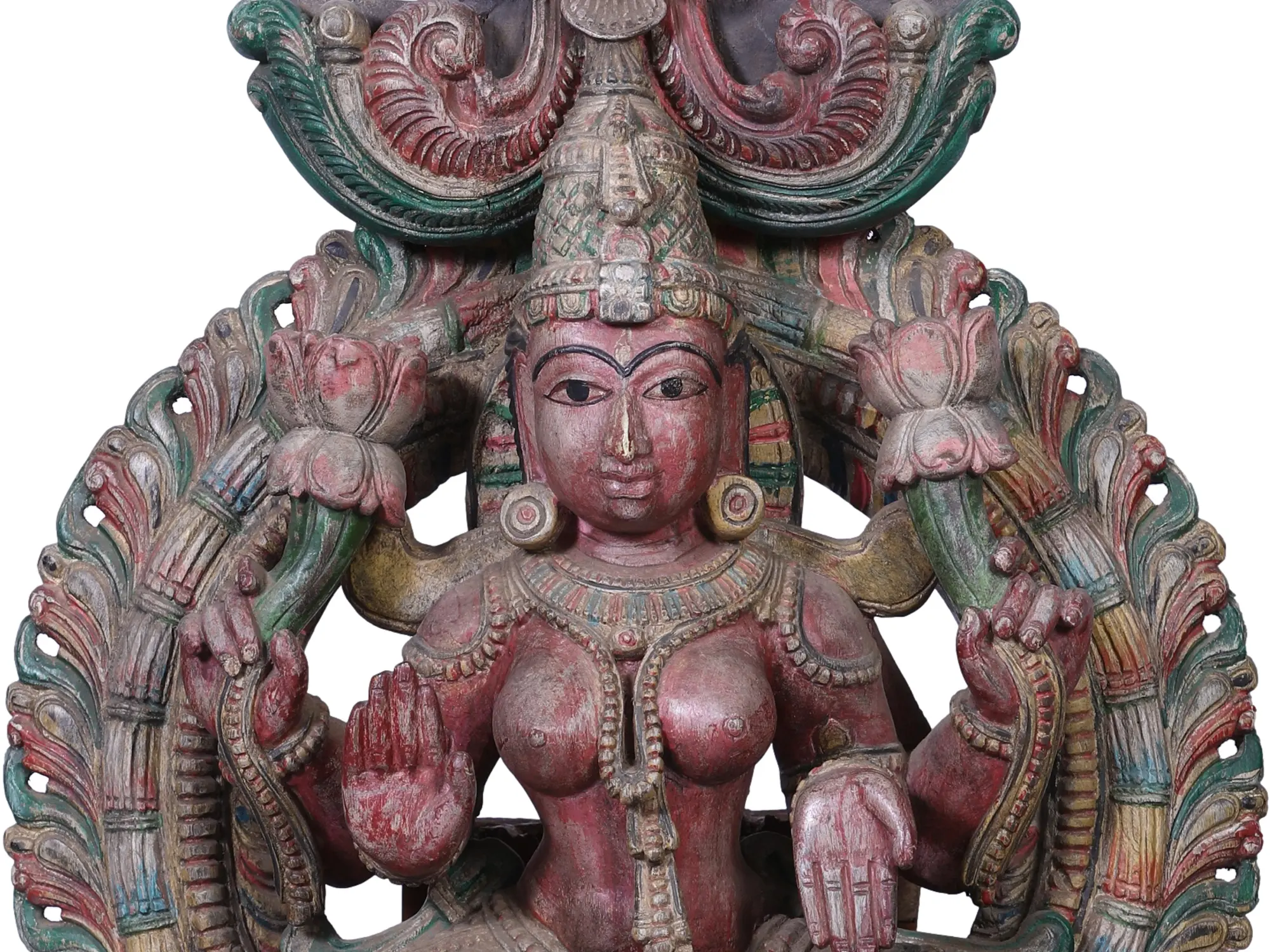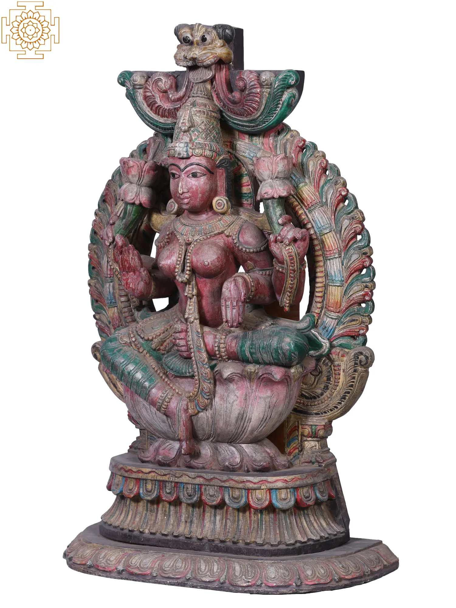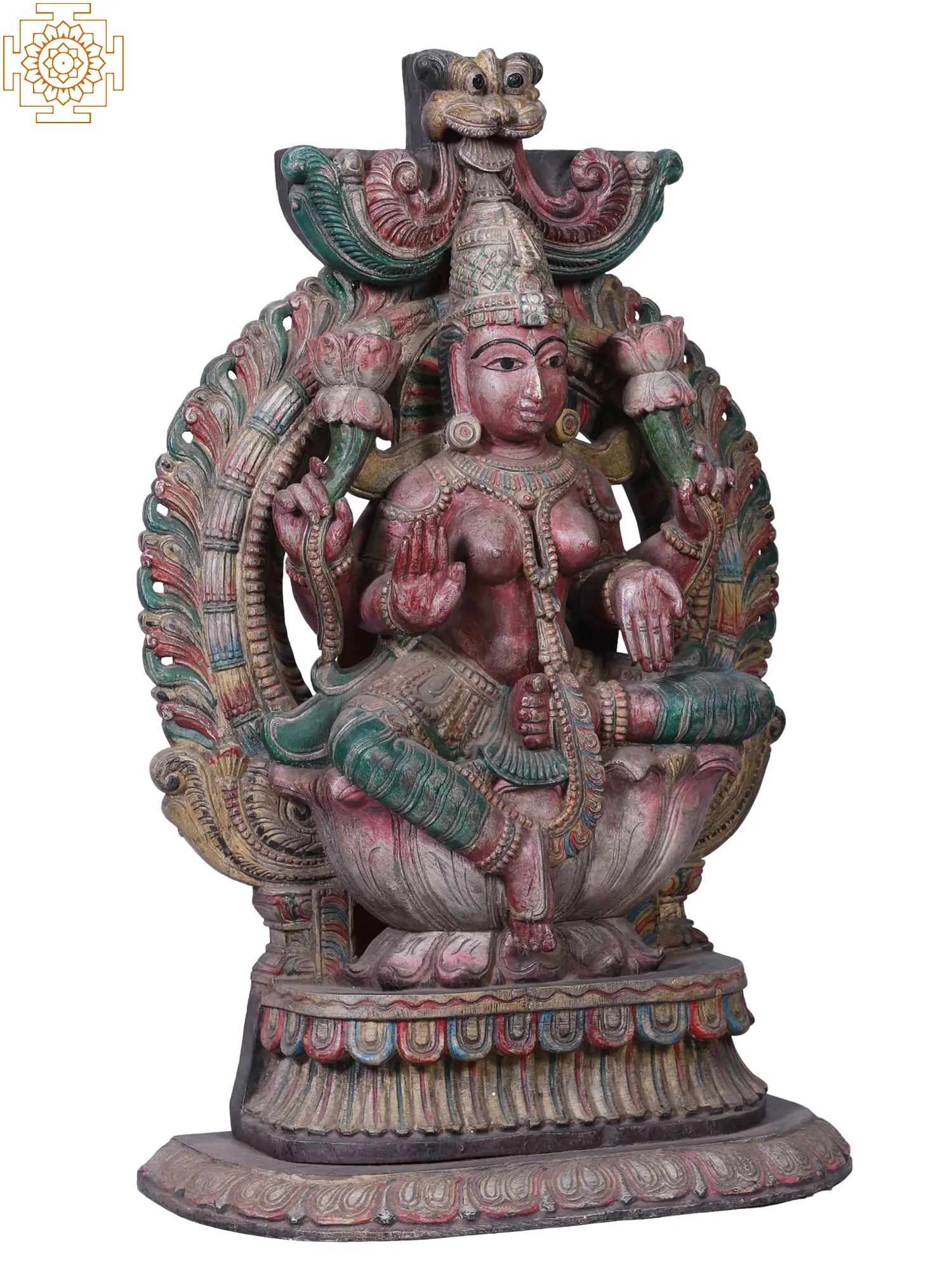20" Blessing Goddess Lakshmi Seated on Lotus | Wood Carving