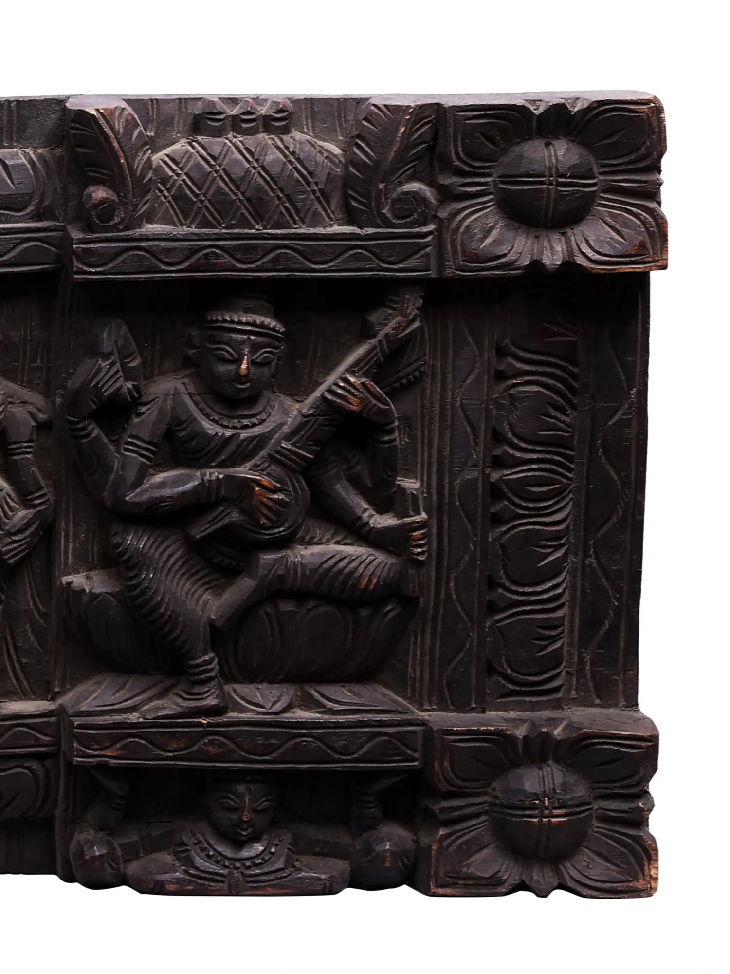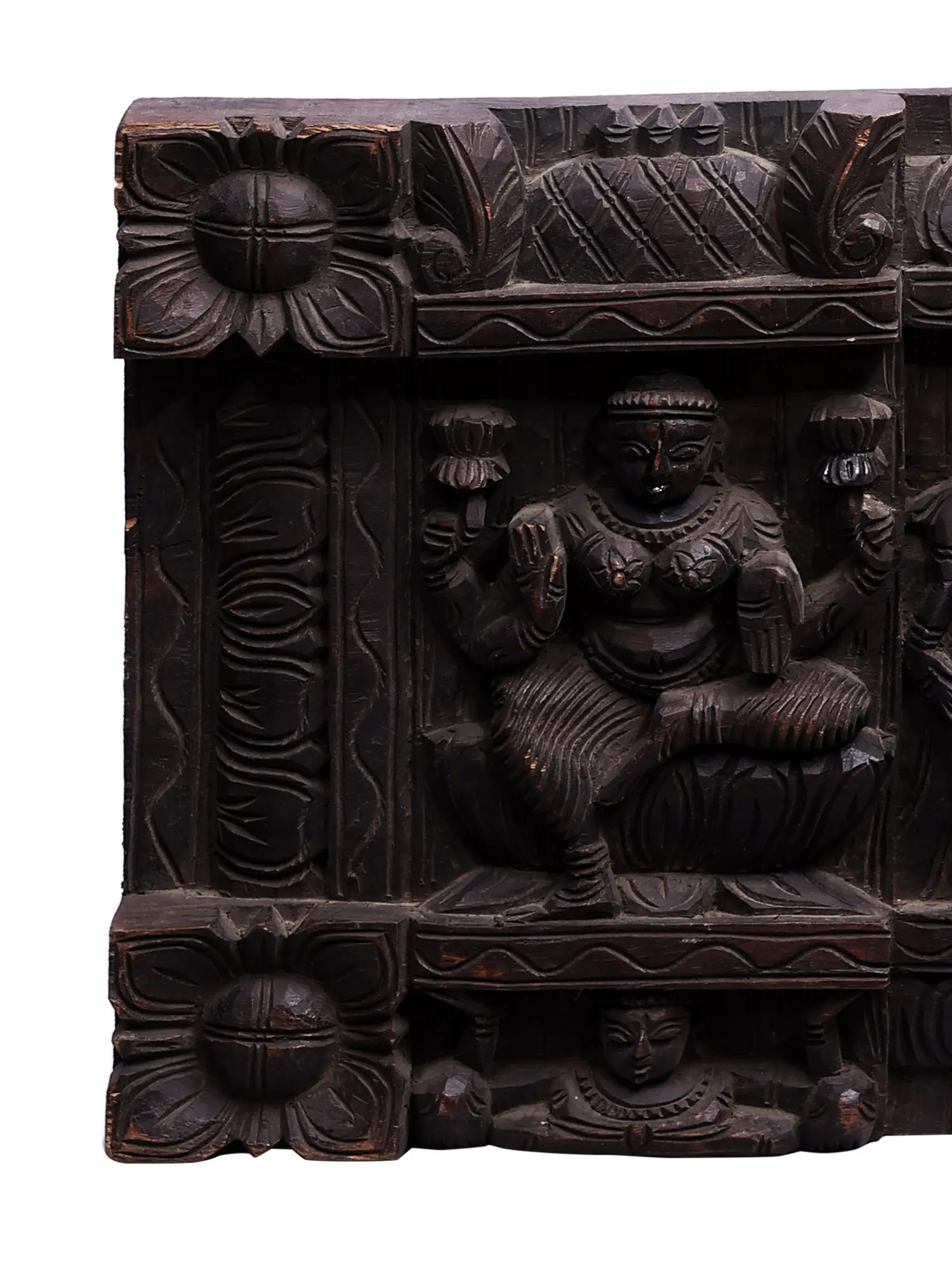Lakshmi, the goddess of wealth and prosperity, Ganesha, the remover of obstacles, and Saraswati, the goddess of knowledge and learning, collectively bring blessings of abundance, success, and wisdom into your home or sacred space. Whether as a decorative accent or a spiritual focal point, this Wooden Wall Panel serves as a reminder of divine grace and blessings in your life.