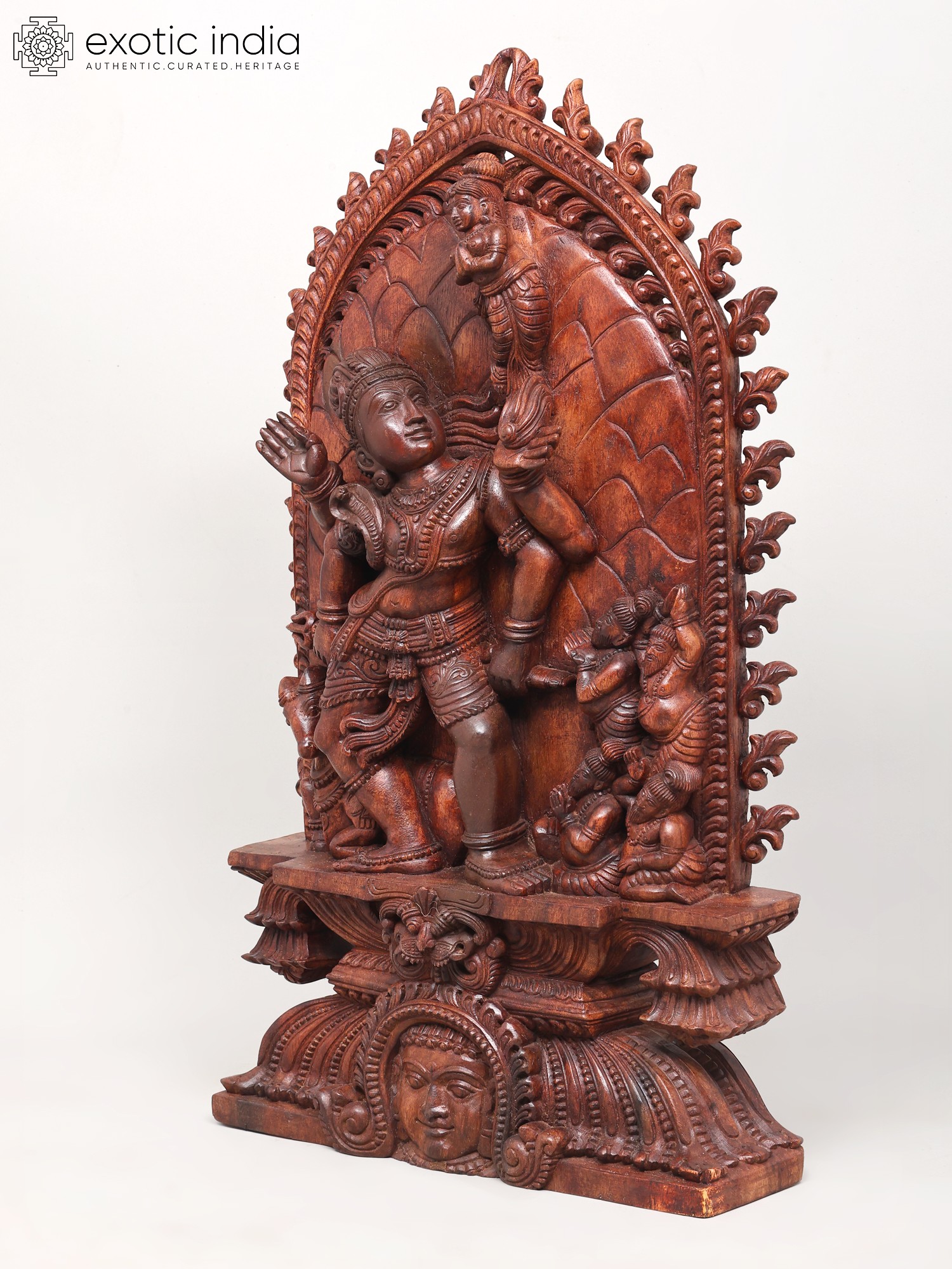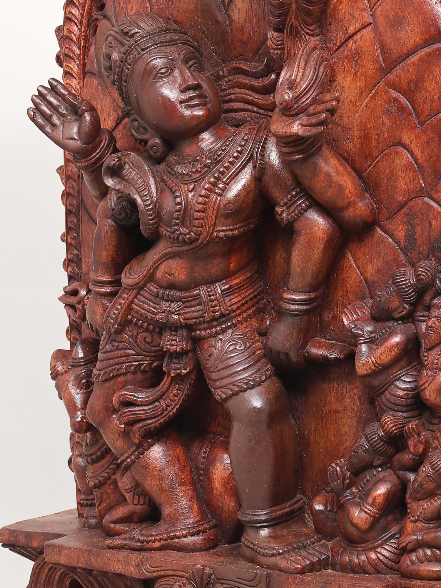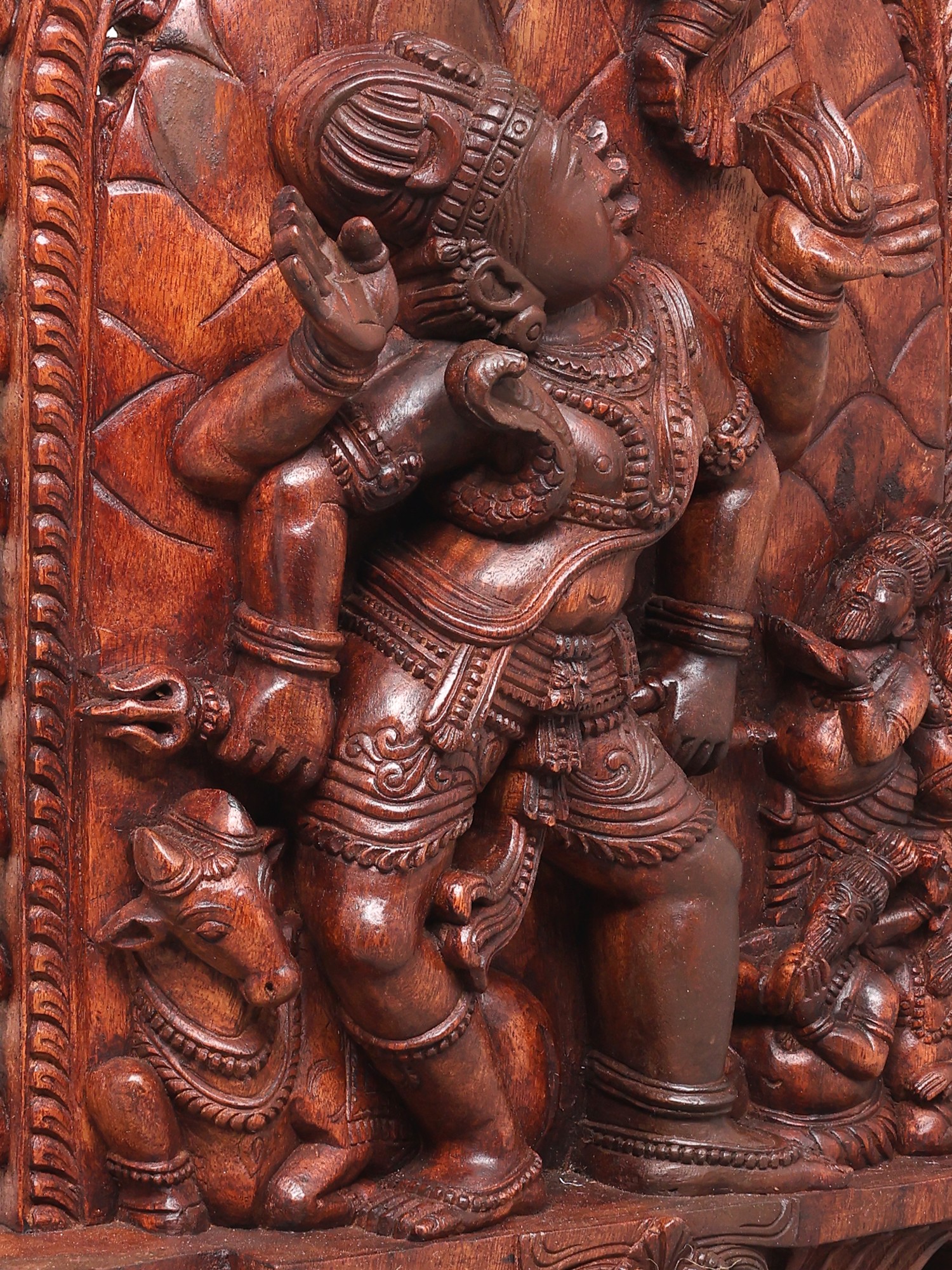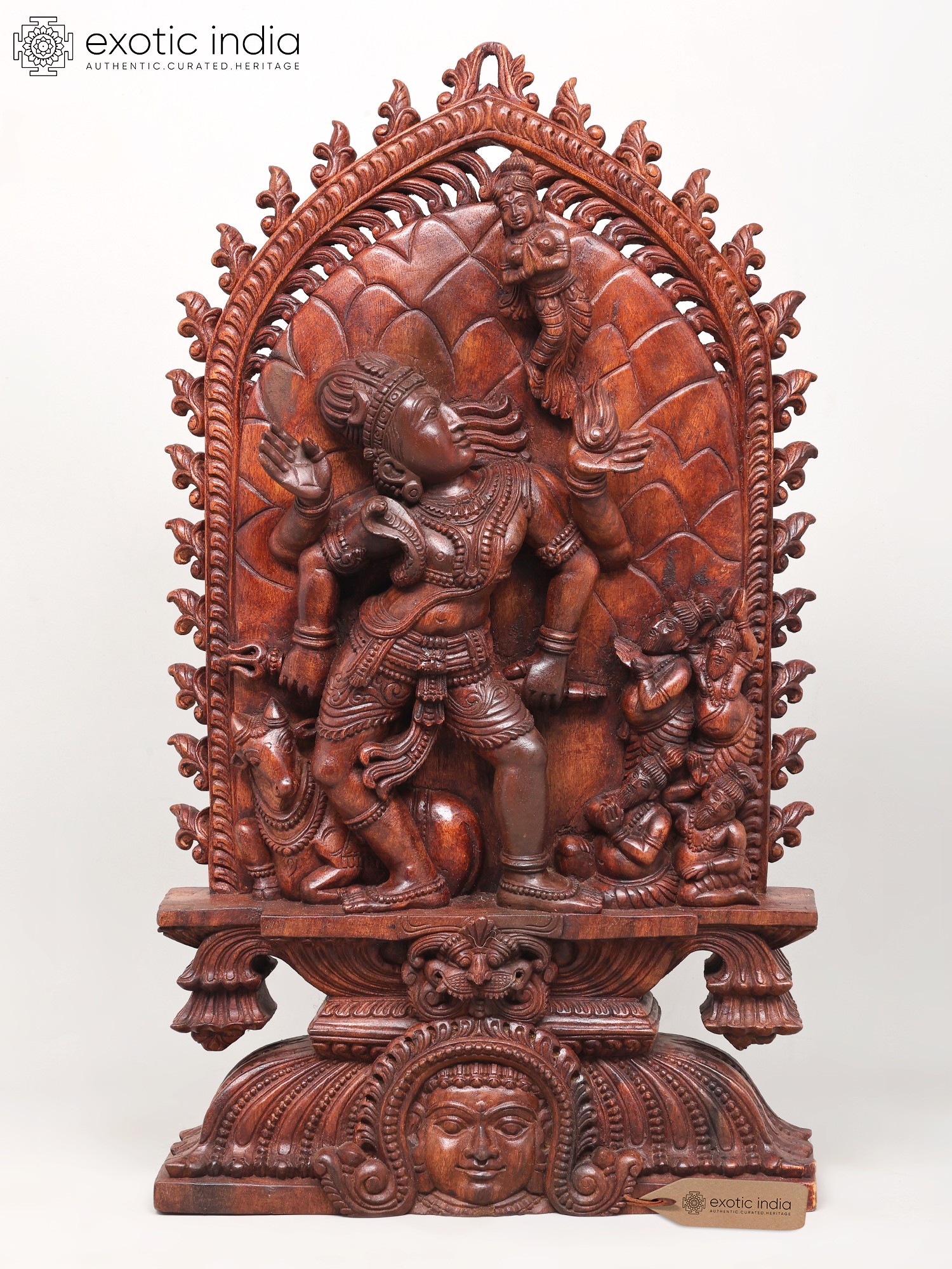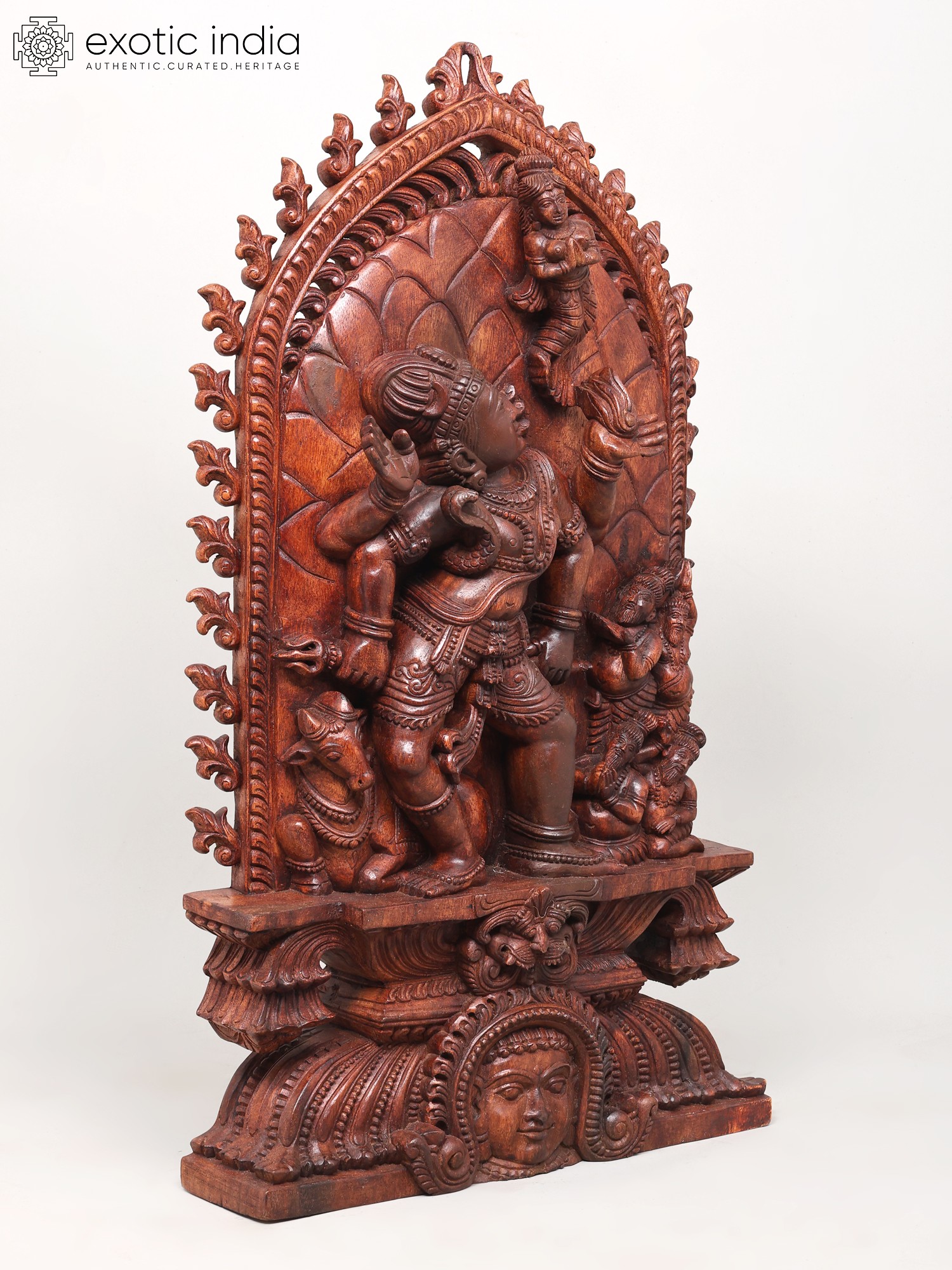 36" Large Standing Shiva Parvati on Kirtimukha Throne | Wood Carving | Antique Design