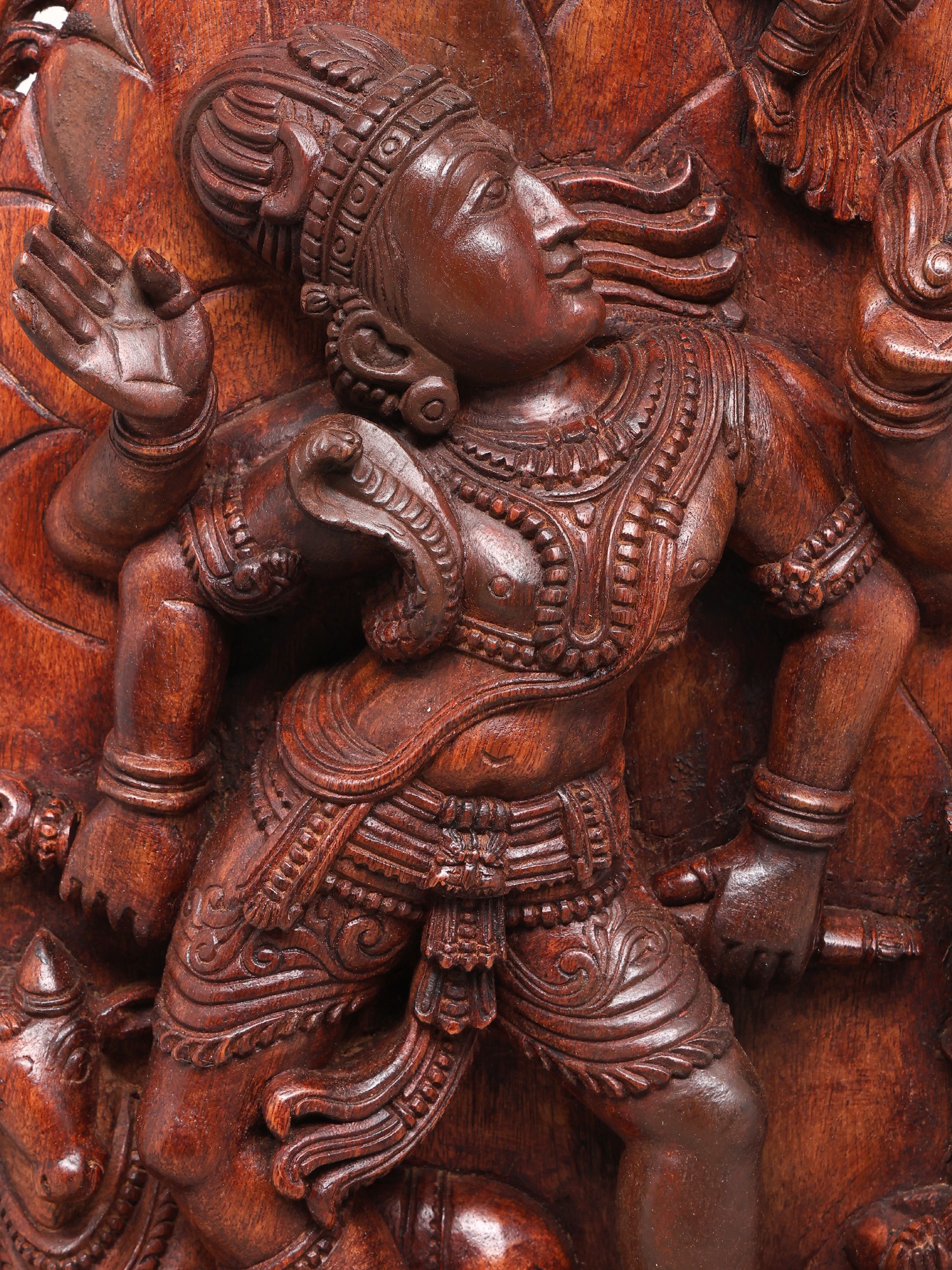 14" Nataraja (Dancing Lord Shiva) Wall Hanging | Wood Carved Relief Panel