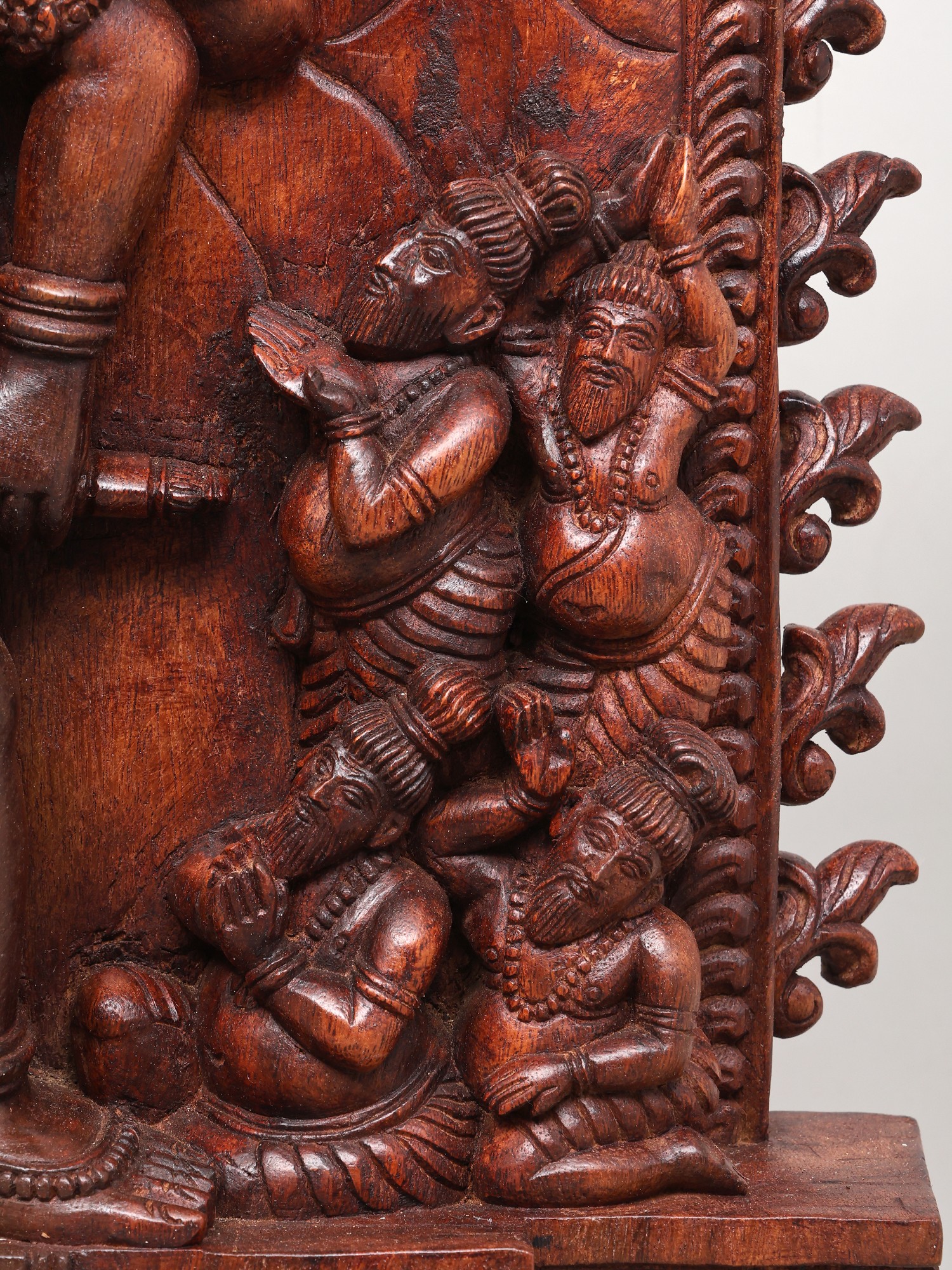 36" Large Ravana Offering Tenth Head as a Veena to Bhagawan Shiva | Wood Carved Statue