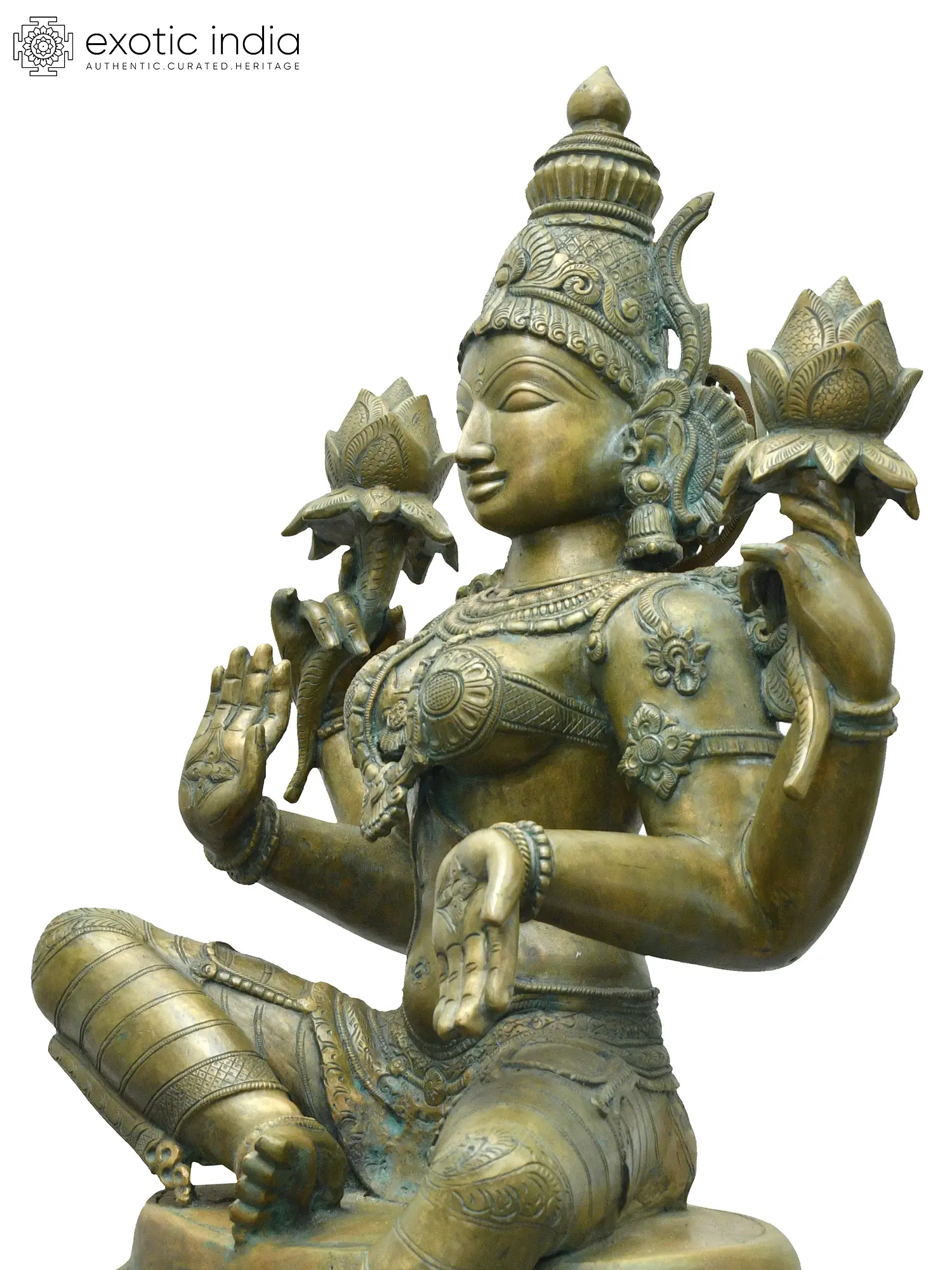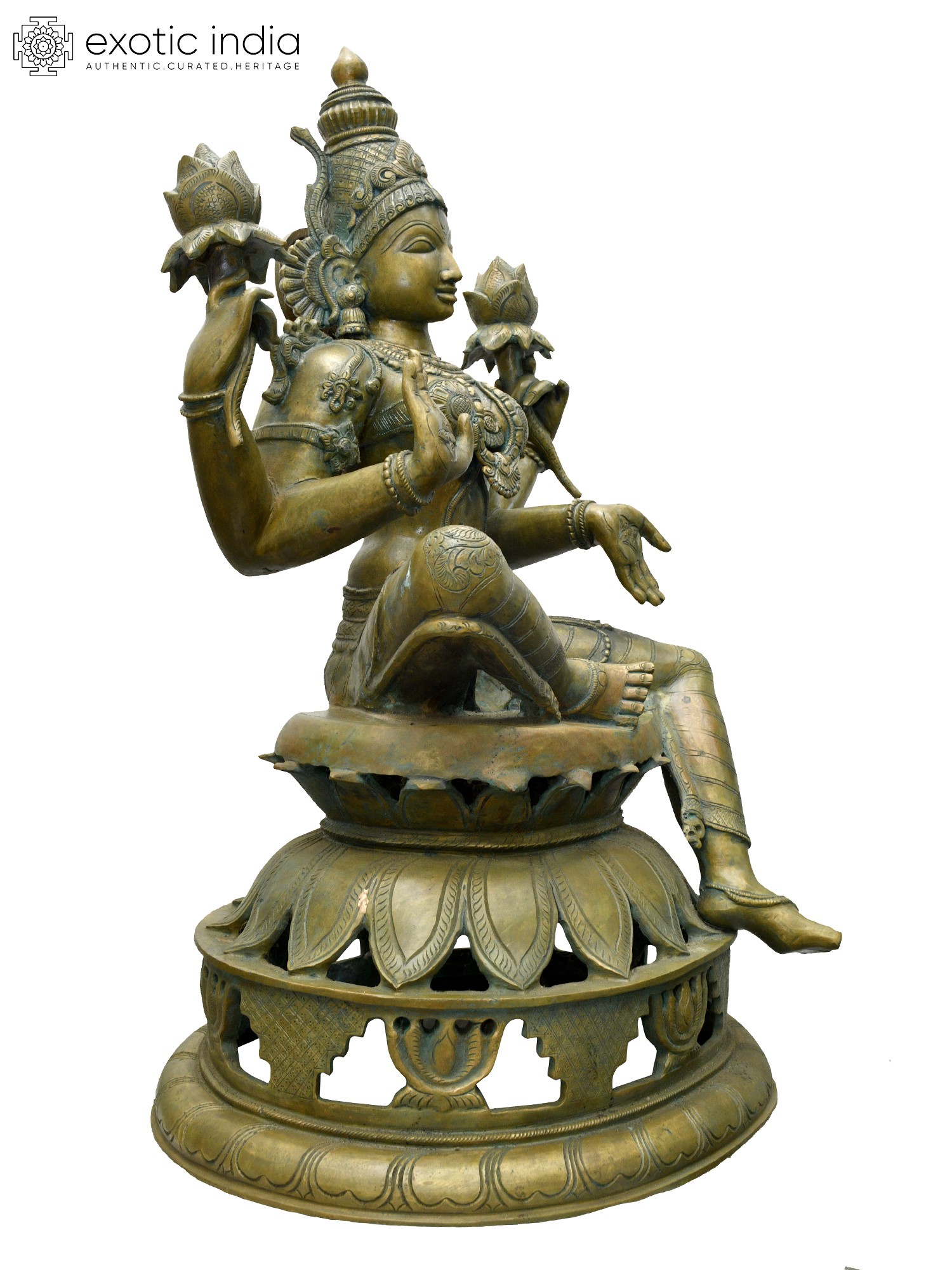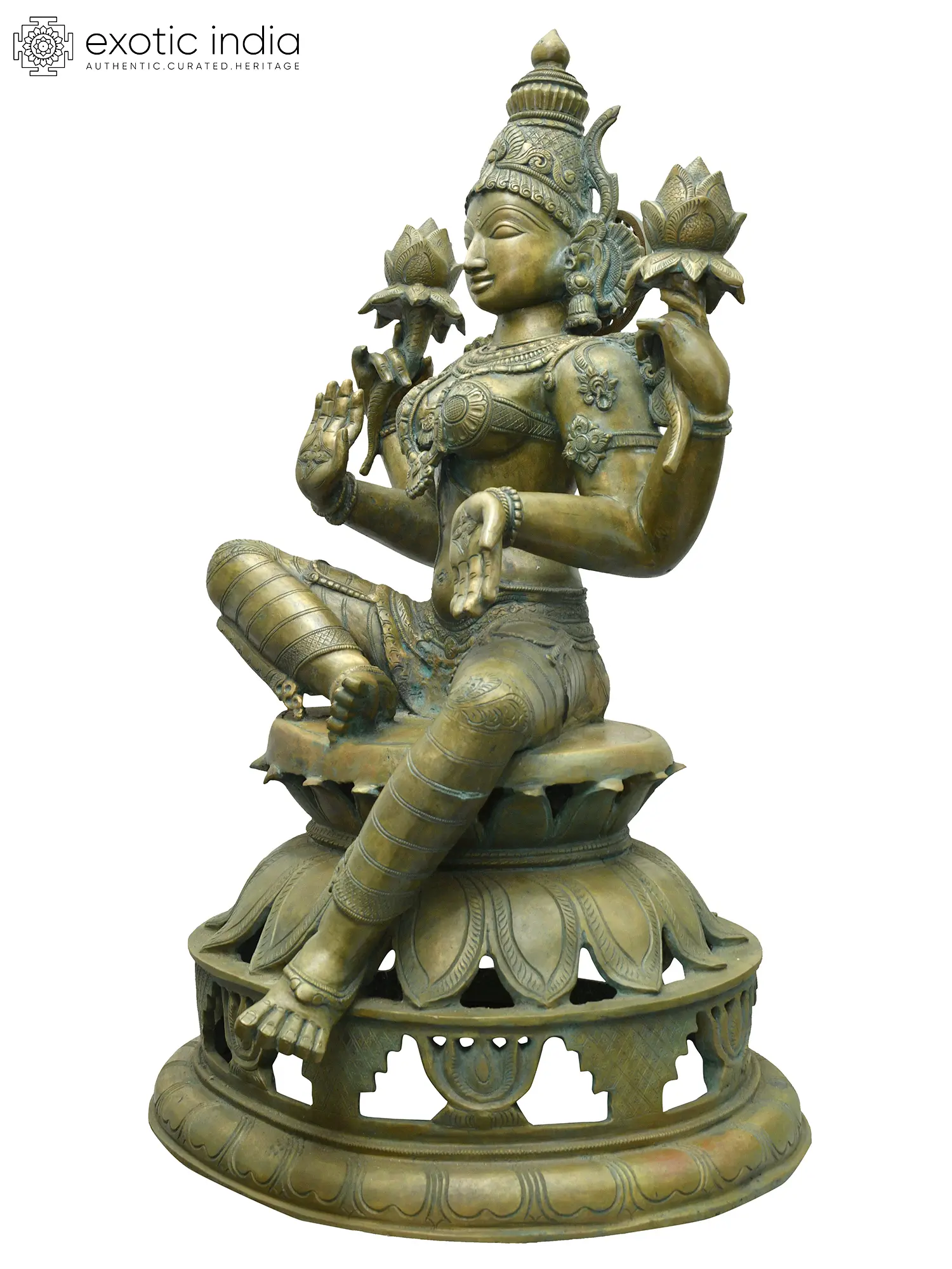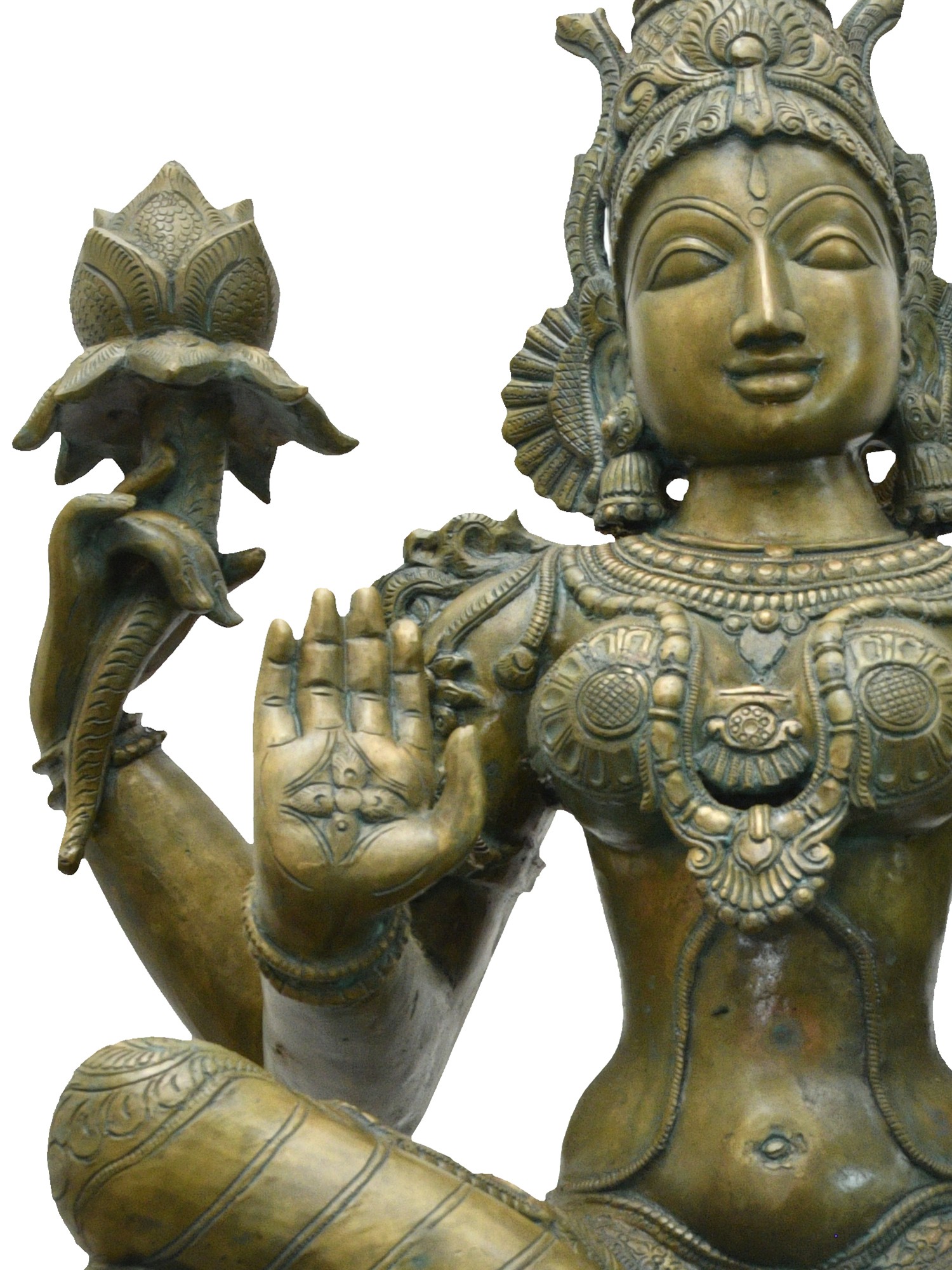 8" Devi Saraswati Idol | Hindu Goddess Brass Statue