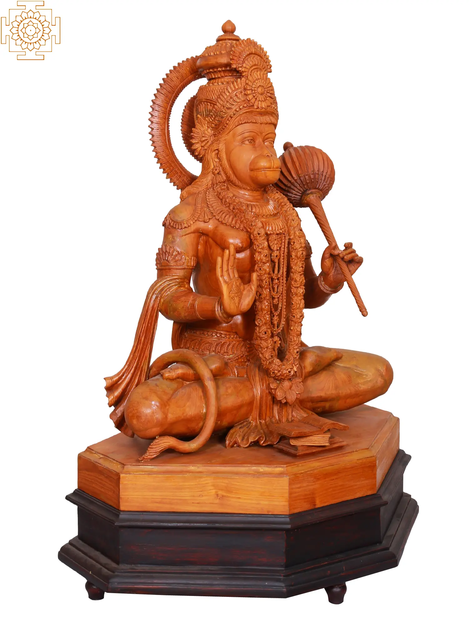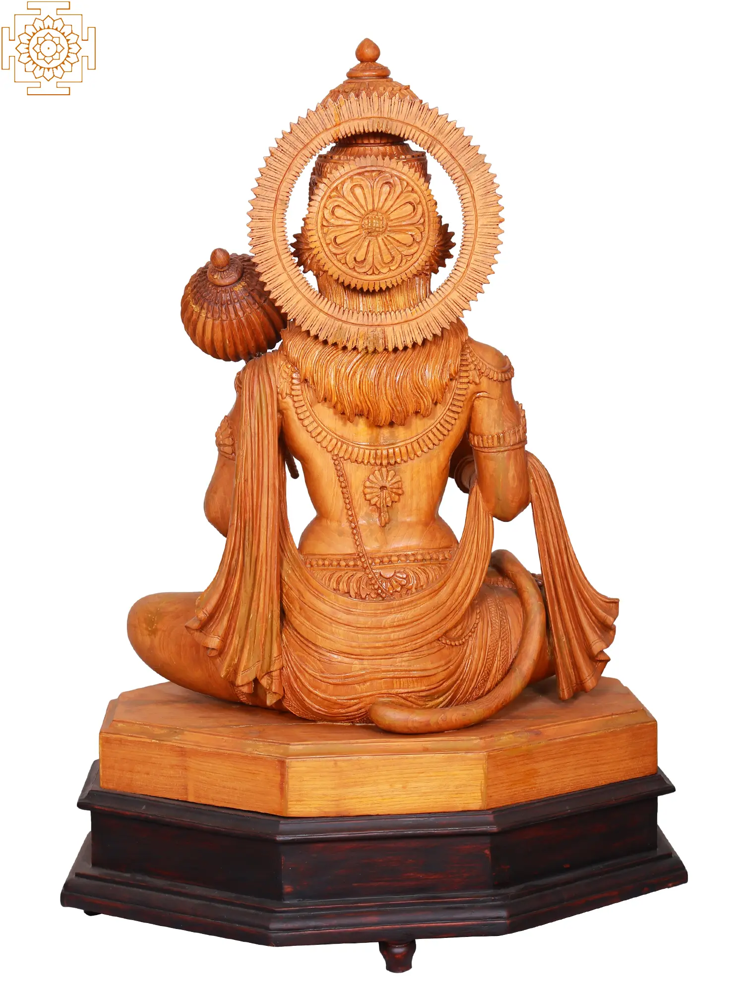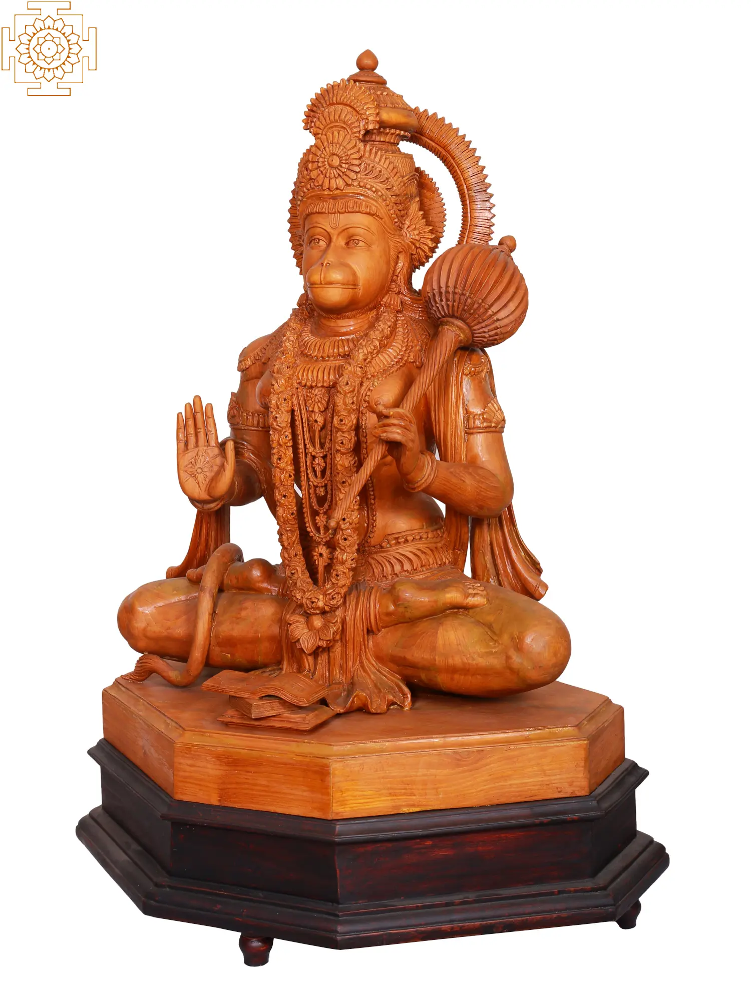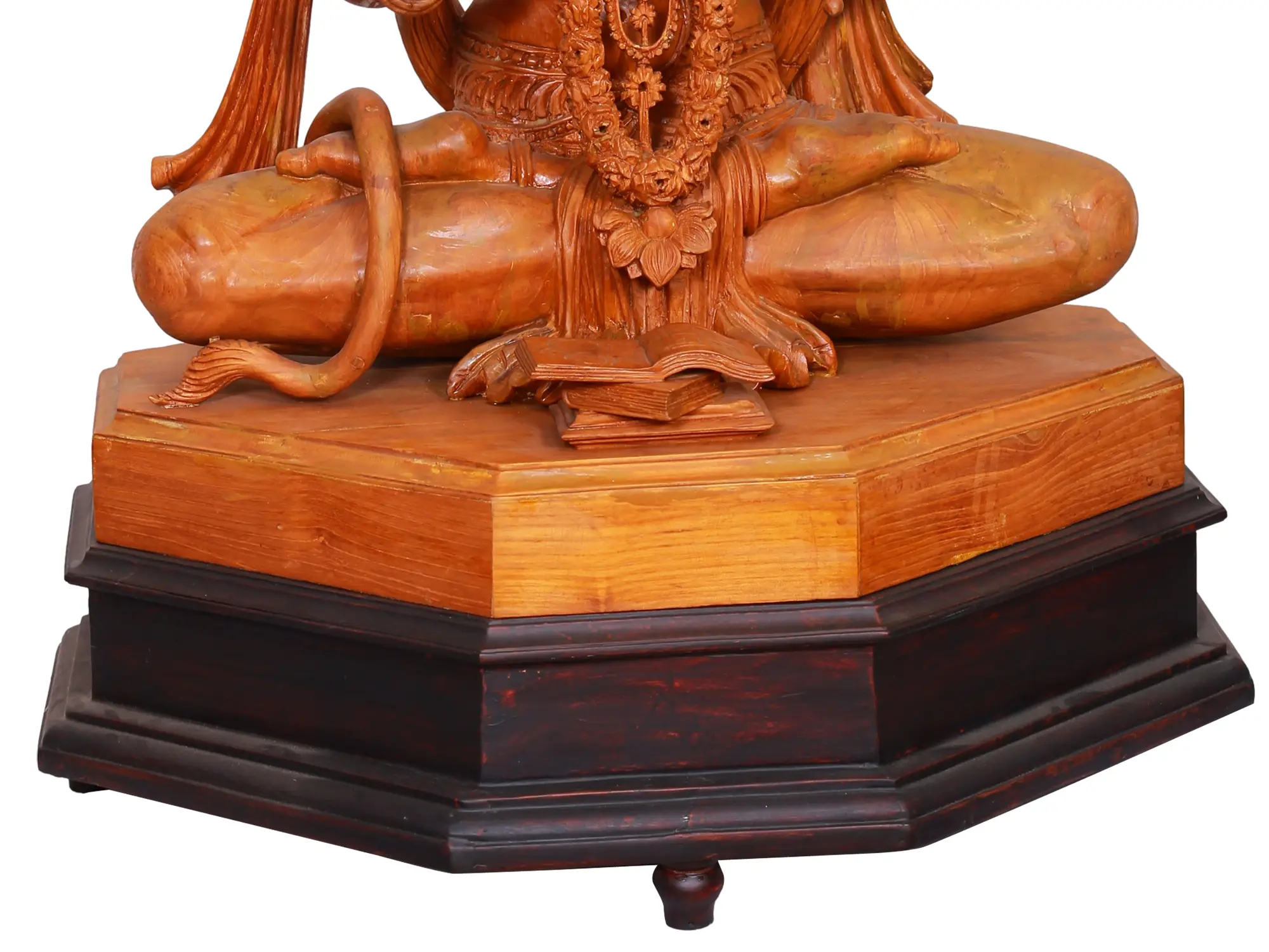 31" Large Wooden Blessing Lord Hanuman Seated on Pedestal