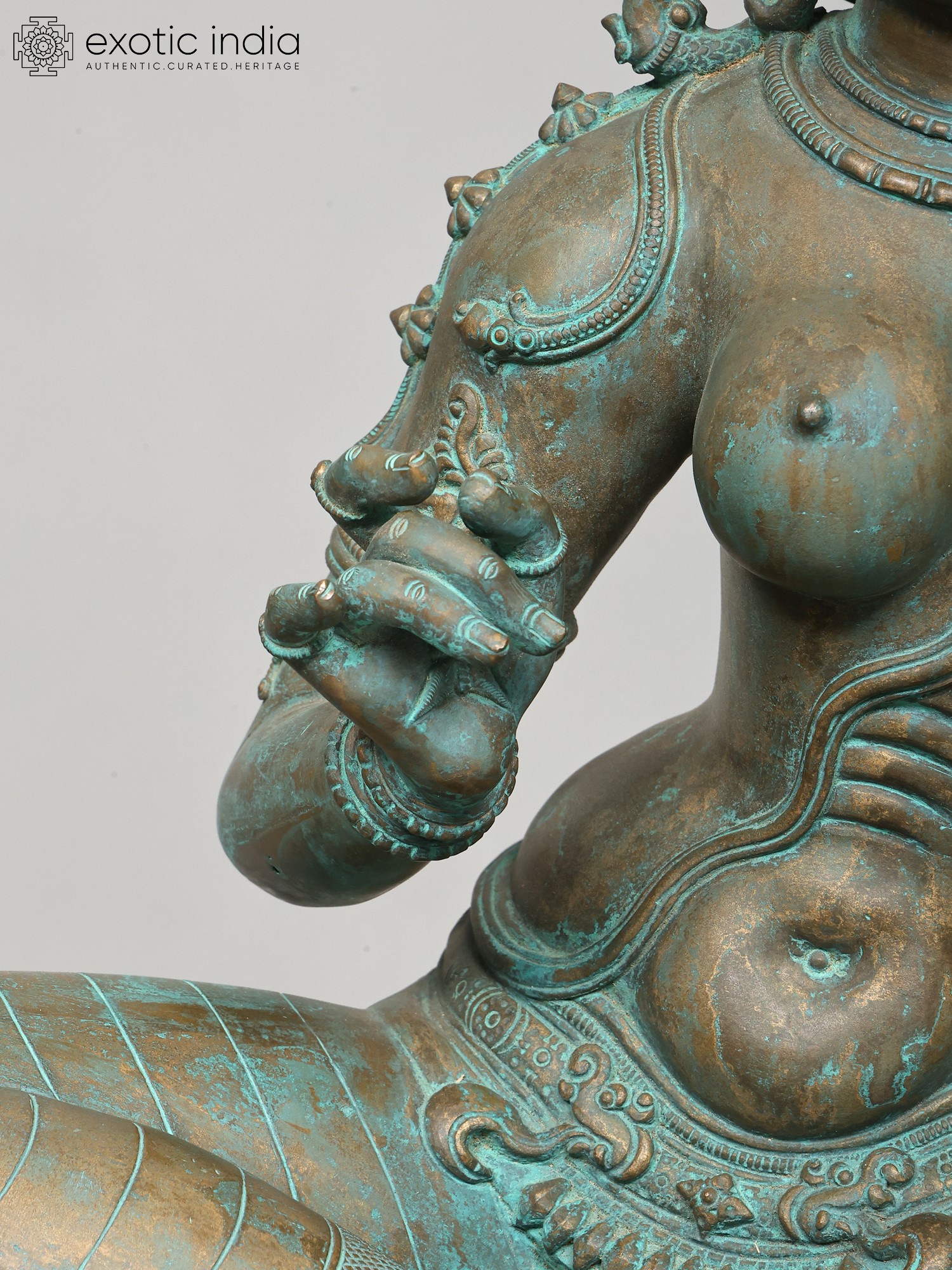 The aged green patina confers a sanctity beyond time, transforming the sculpture into an icon of eternal youth and cosmic motherhood.