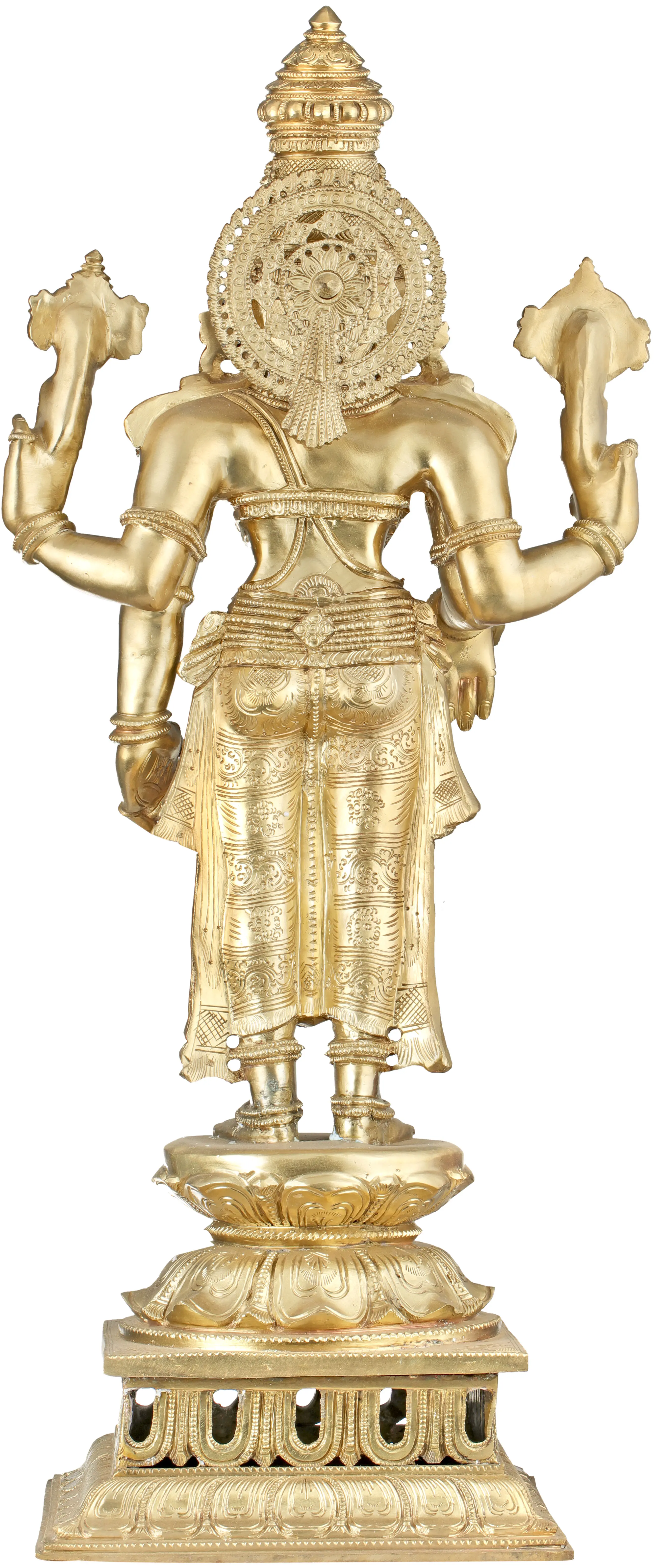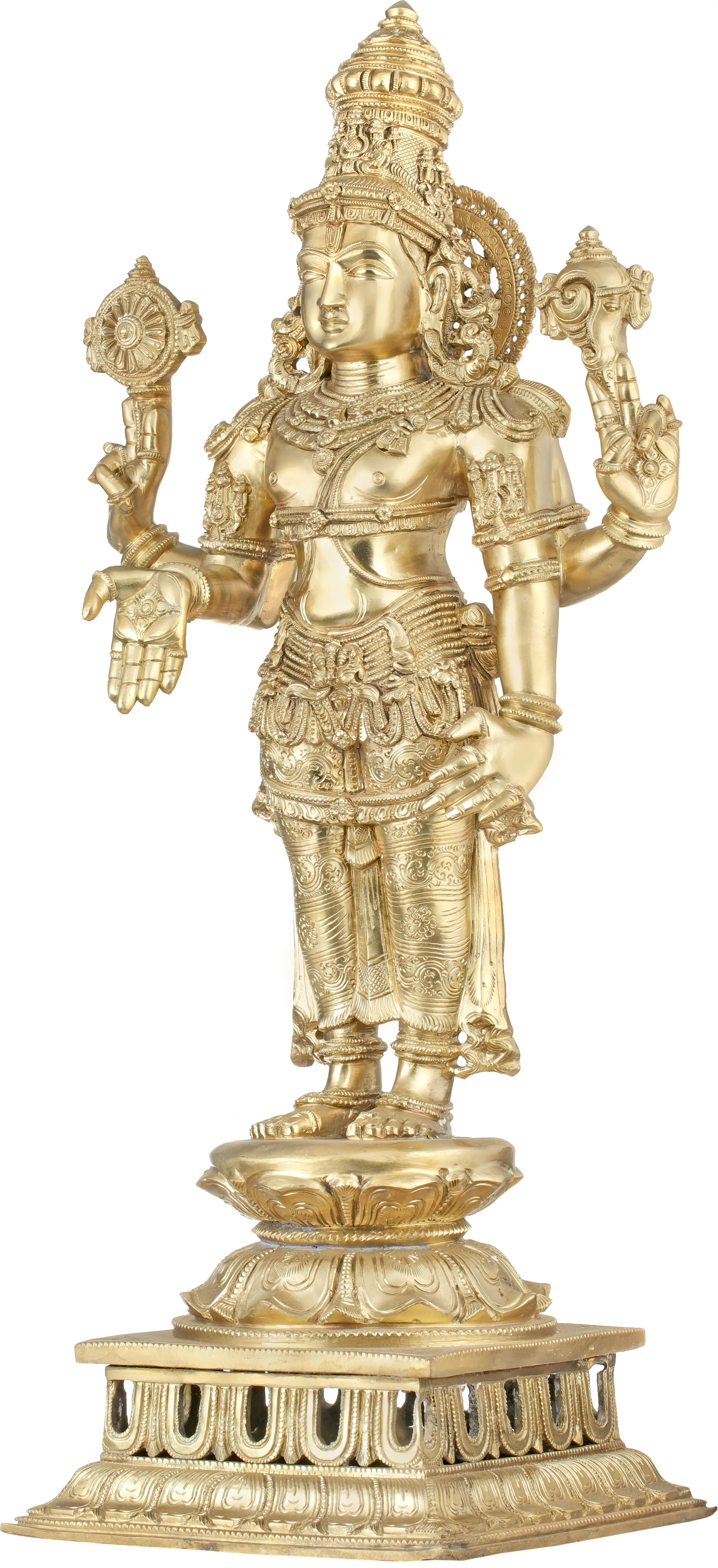 7" Superfine Chaturbhuja Lord Vishnu Idol Standing on Lotus with Wood Base| Brass Statue