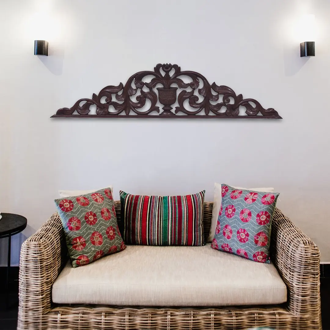 This carved wooden wall panel is more than just a decorative item; it is a statement piece that adds character and depth to any interior design. Its elegant profile makes it a perfect addition to a traditional setting, complementing antique furniture and rich textiles. However, its classic beauty also offers a striking contrast in more contemporary spaces, adding a touch of organic warmth and artisanal charm to modern aesthetics. Imagine it gracing the space above a fireplace, acting as a stunning headboard for a bed, or serving as a regal accent over a doorway. Its presence transforms a house into a home, imbuing it with a sense of history, artistry, and serene beauty.