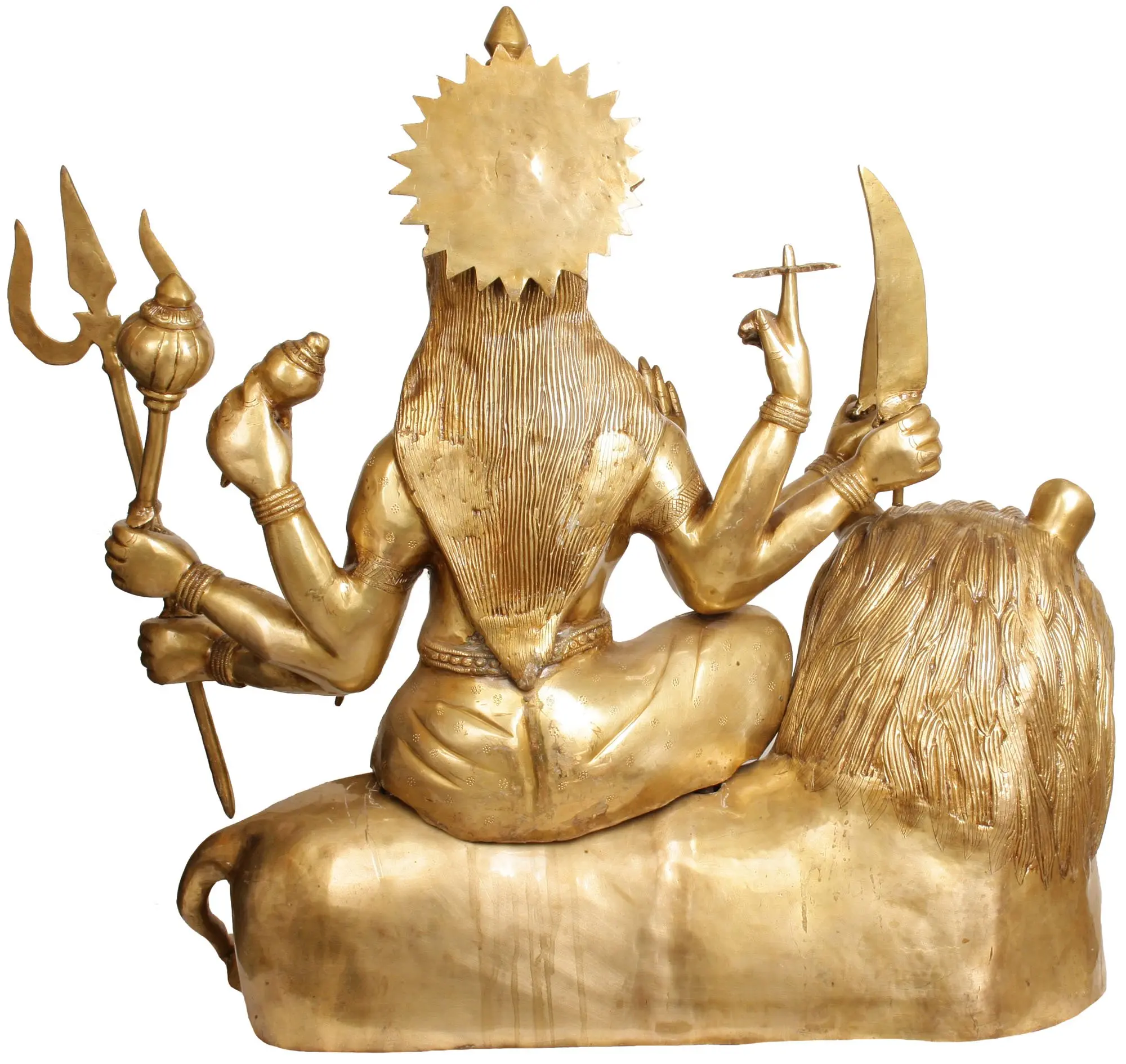 33" Large Goddess Durga Seated on Lion in Brass | Handmade | Made in India