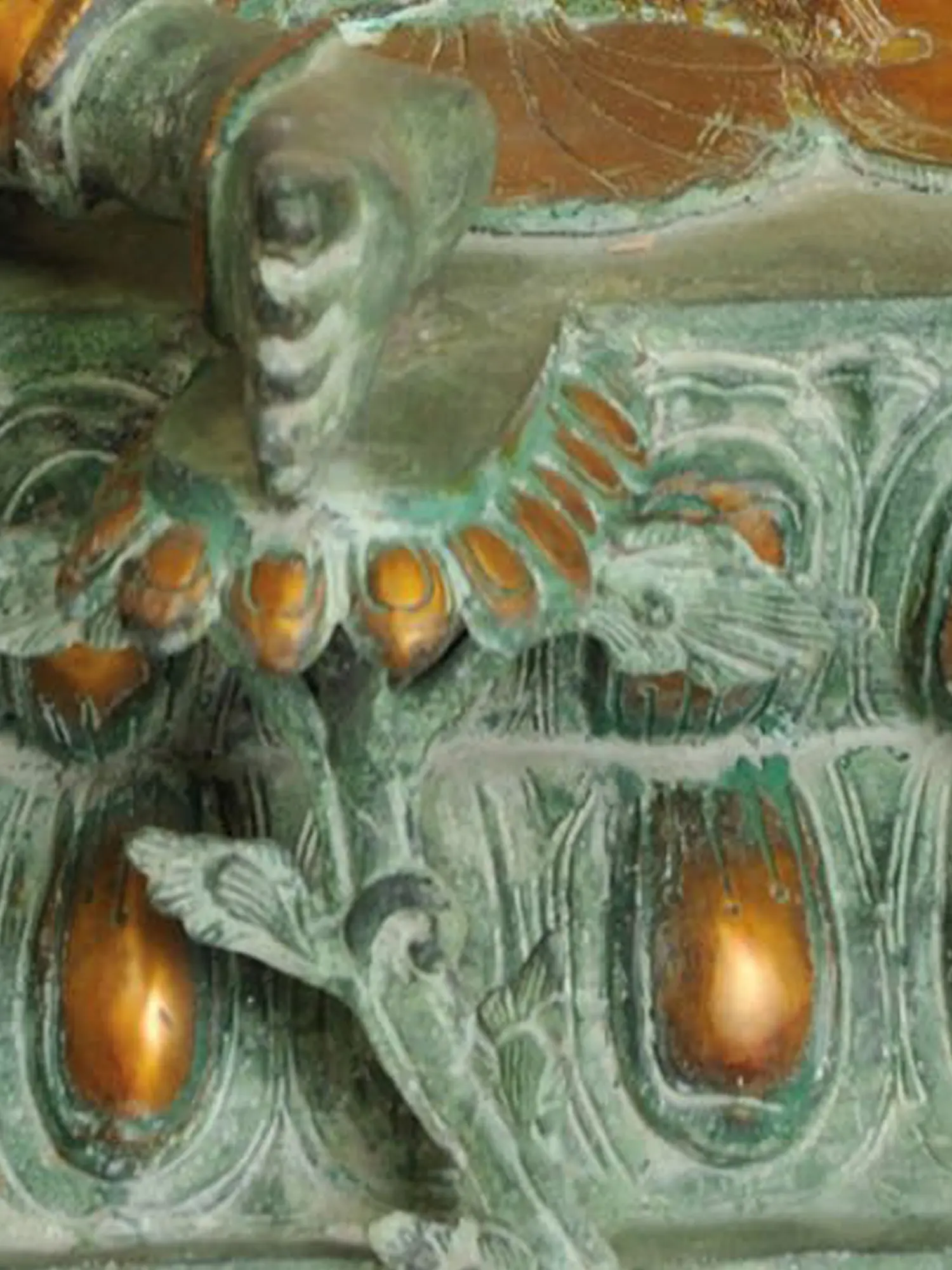 This sculpture is more than just an object; it is a conduit of spiritual grace. Fashioned from high-quality brass, the statue showcases the incredible skill of Indian artisans. The intricate details are breathtaking, from the serene expression on Tara's face, adorned with a majestic crown, to the delicate folds of her robes. The juxtaposition of the vibrant, polished brass of her bodice and lower garments with the aged, verdigris patina on her face, arms, and the lotus base creates a striking visual depth. This intentional patina not only adds to the aesthetic appeal but also evokes a sense of antiquity and the passage of time, as if this sacred image has witnessed countless prayers and offered solace through the ages. The lotus throne upon which she sits symbolizes purity and spiritual enlightenment, a foundation of divine grace from which she emanates her blessings. Each element, from the floral motifs that frame her, to the subtle ornamentation on her jewelry, speaks of a dedication to capturing the divine essence of Green Tara.