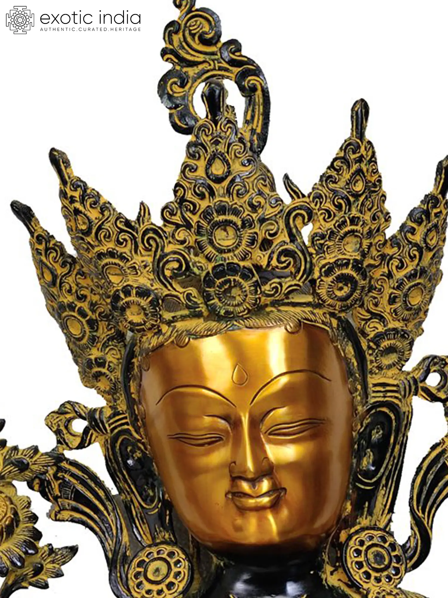 34" Large Size Tibetan Buddhist Goddess Green Tara In Brass | Handmade | Made In India
