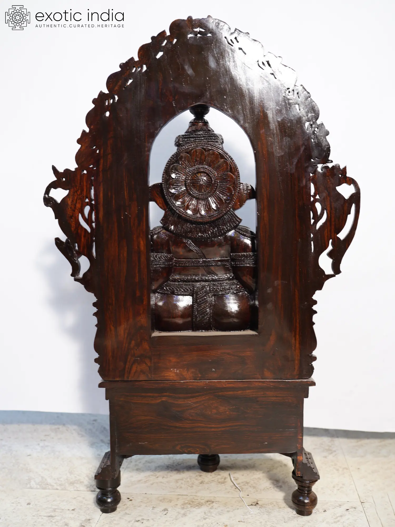 Crafted from the finest, deep-hued rosewood, each curve and contour is meticulously brought to life by the hands of master artisans. You’ll appreciate the exquisite attention to detail, from the subtle textures of the elephantine form to the delicate ornamentation of the surrounding archway. The dense, enduring nature of rosewood ensures not only visual splendor but also a tactile richness that speaks to its exceptional quality and longevity.
