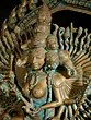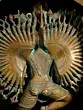 Guhya Kali, a potent aspect of the Divine Mother, represents the dissolution of illusion and the fierce protection of the cosmos. Her Tandava, the cosmic dance of destruction and creation, is a profound metaphor for the cyclical nature of existence. This posture captures the peak of her fury and divine dance, a moment when the universe itself vibrates with her power. The multiple arms, each bearing a symbolic weapon or attribute, represent her omnipresence and her ability to tackle all forms of negativity and ignorance. The figures beneath her feet—a prostrate demon and a wolf—further underscore her victory over malevolent forces and her role as the slayer of ego and illusion. In Hindu mythology, Kali is revered as the destroyer of evil, the liberator from bondage, and the ultimate reality beyond form. She is the mother who guides her devotees through the darkest of times, offering solace and strength through her formidable presence.