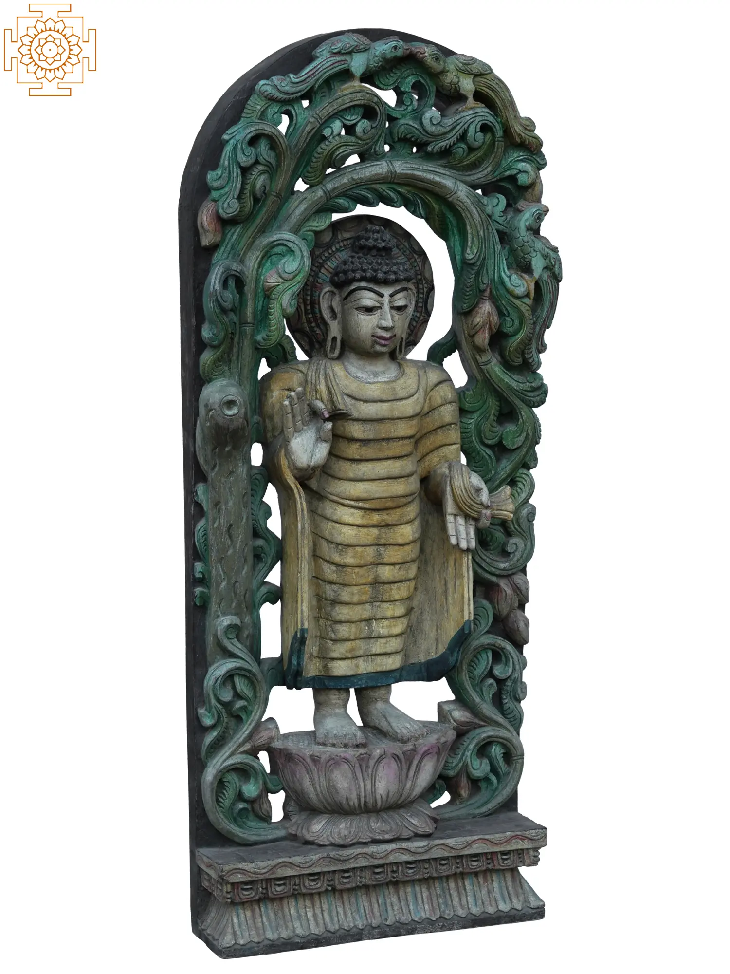 13" Dharma-Chakra-Pravartana – The Wheel of Law Set in Motion | Buddha Statue | Kaima Wood