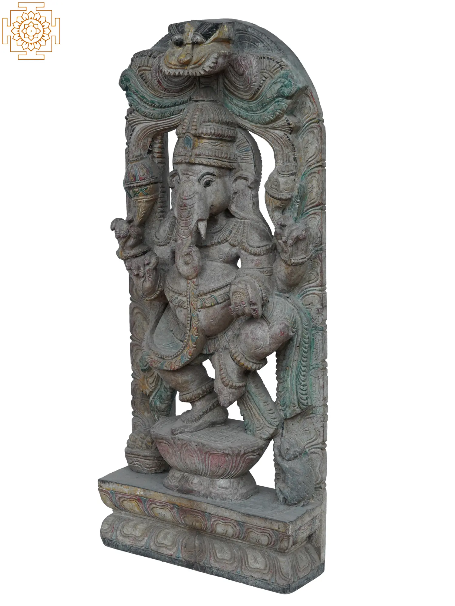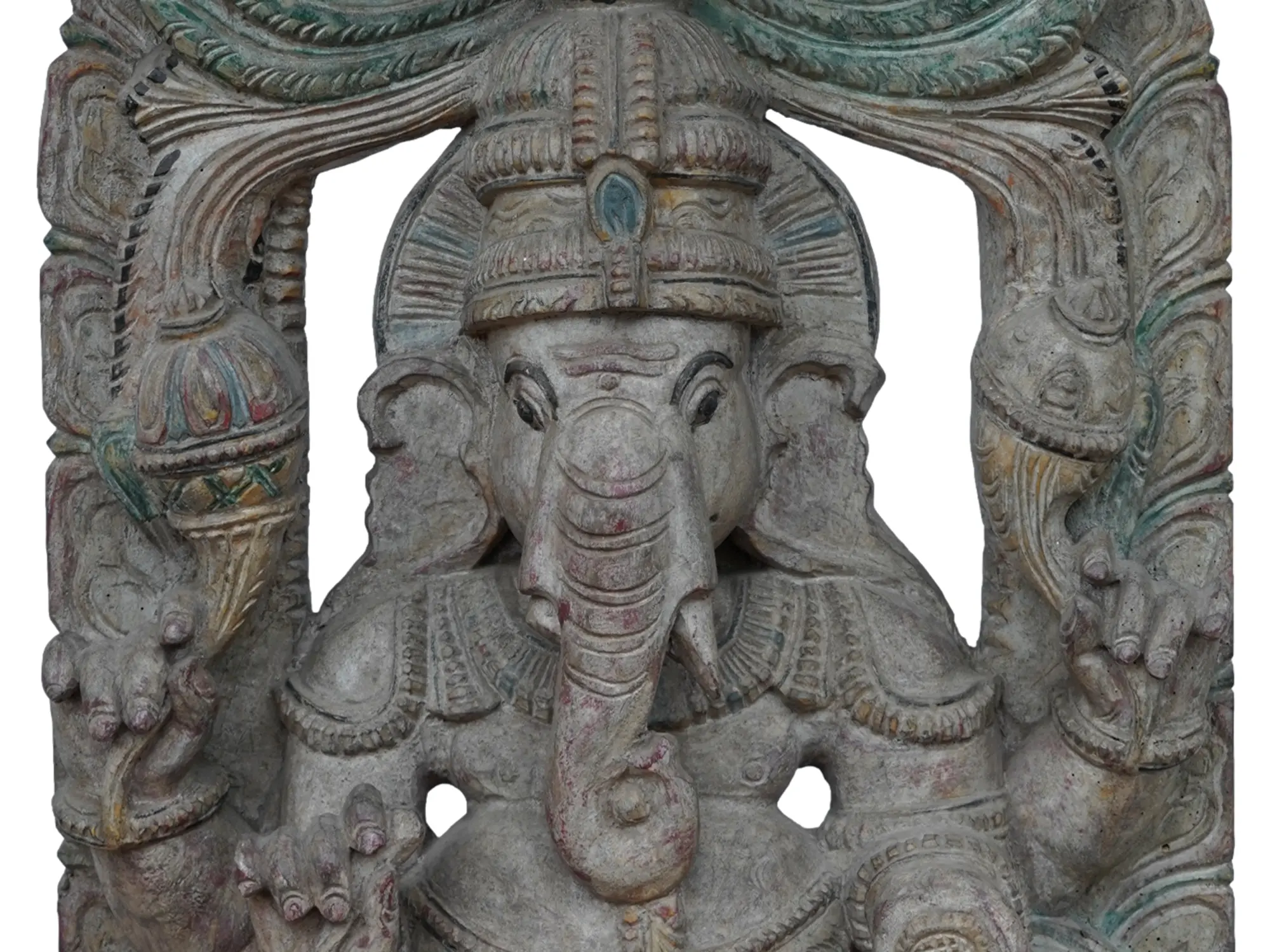Wooden Sculpture of Lord Ganesha Plays the Shehnai
