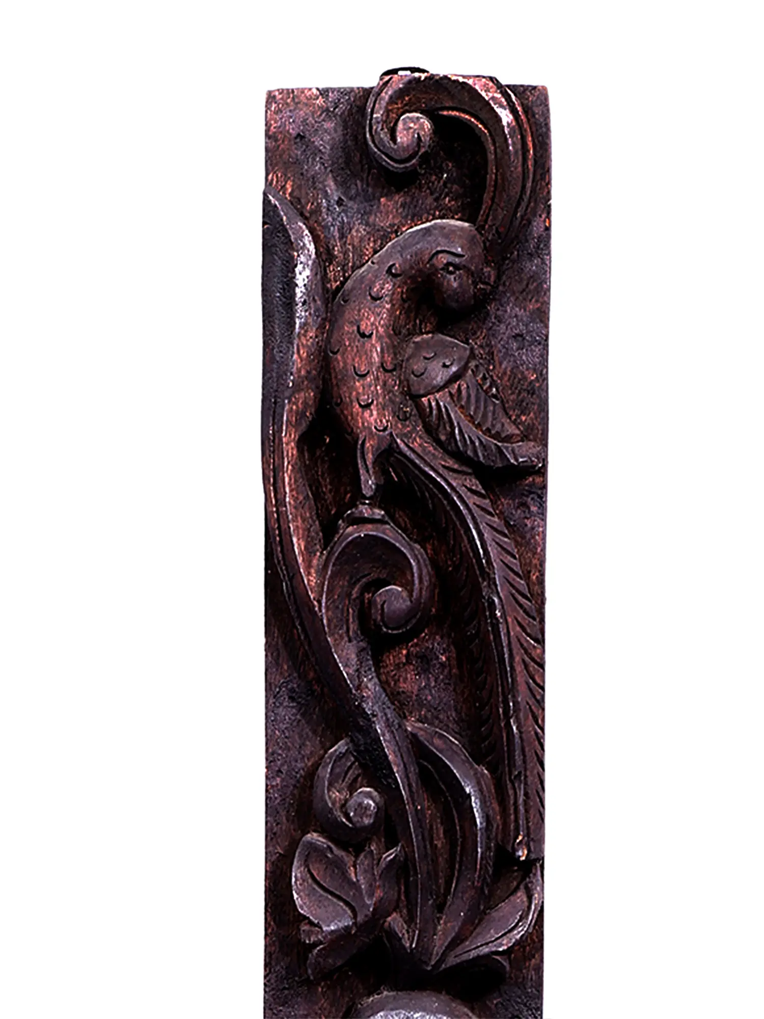 Introducing exquisite Wooden Peacock Panel, a stunning work of art crafted to add elegance and charm to any space. Hand-carved from fine wood, this intricately detailed panel features the majestic peacock, revered for its beauty and symbolism in various cultures. The graceful curves of the peacock's feathers and the intricate patterns of its plumage are meticulously rendered, capturing the bird's regal presence and vibrant energy. Each detail is expertly crafted, showcasing the artisan's skill and dedication to creating a piece of timeless beauty.