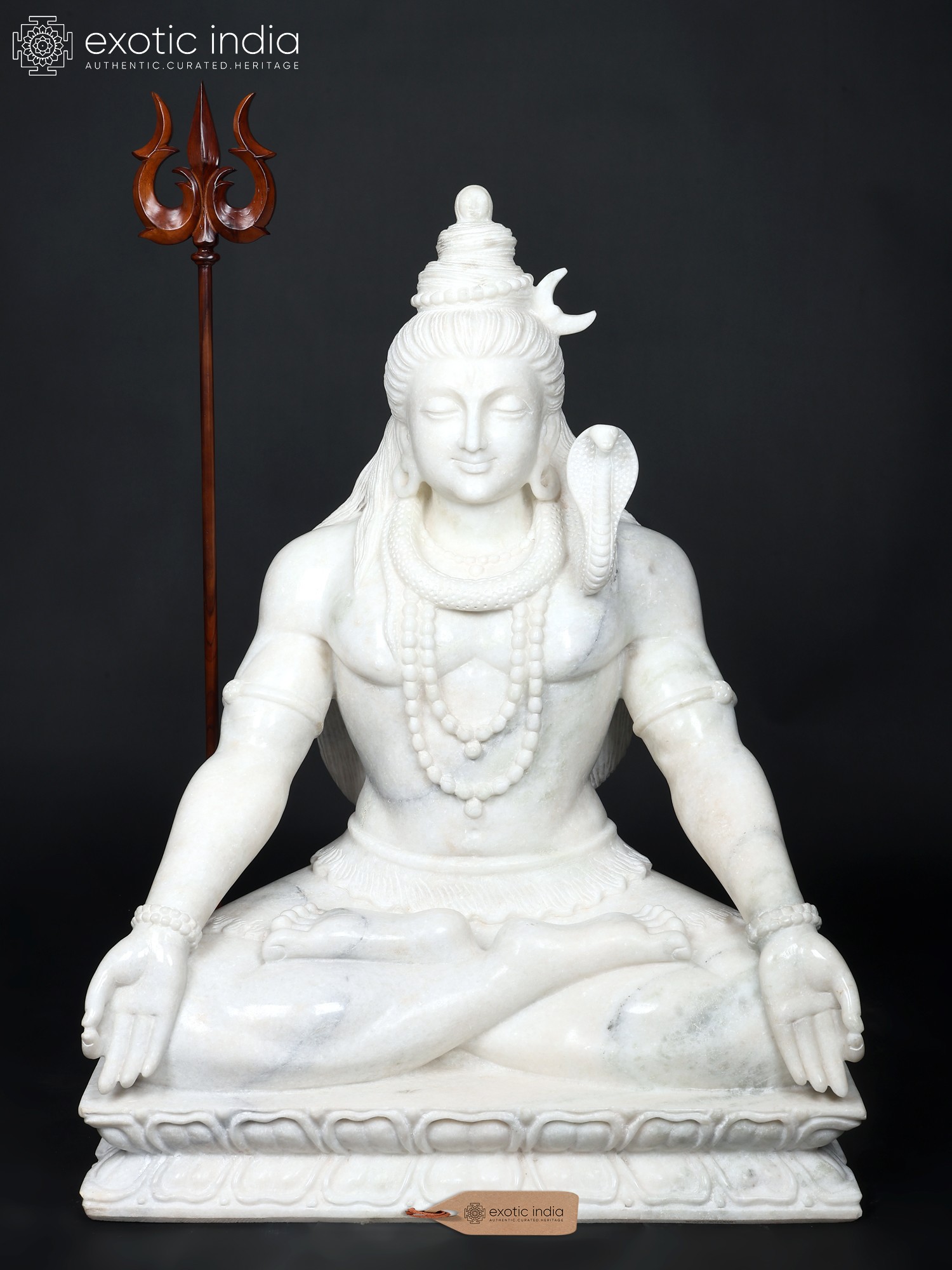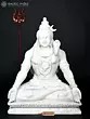 36" Large Hand-Carved Meditating Mahadev (Lord Shiva) | White Marble Hindu God Idol