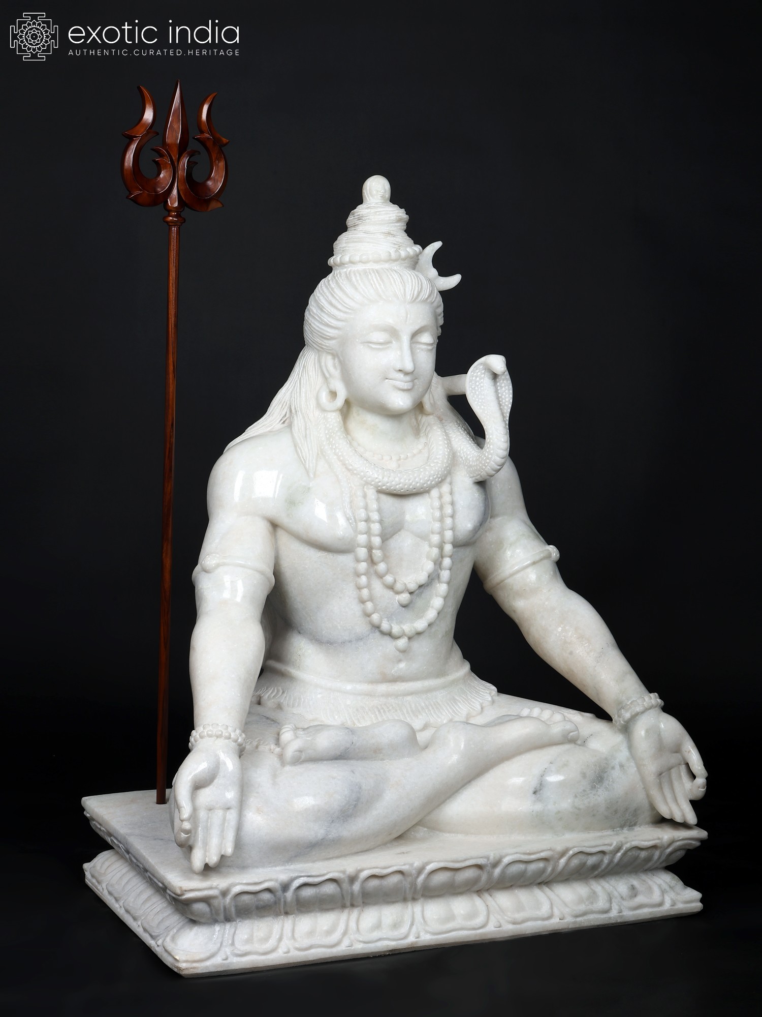 White Marble Statue and Wooden Trishul