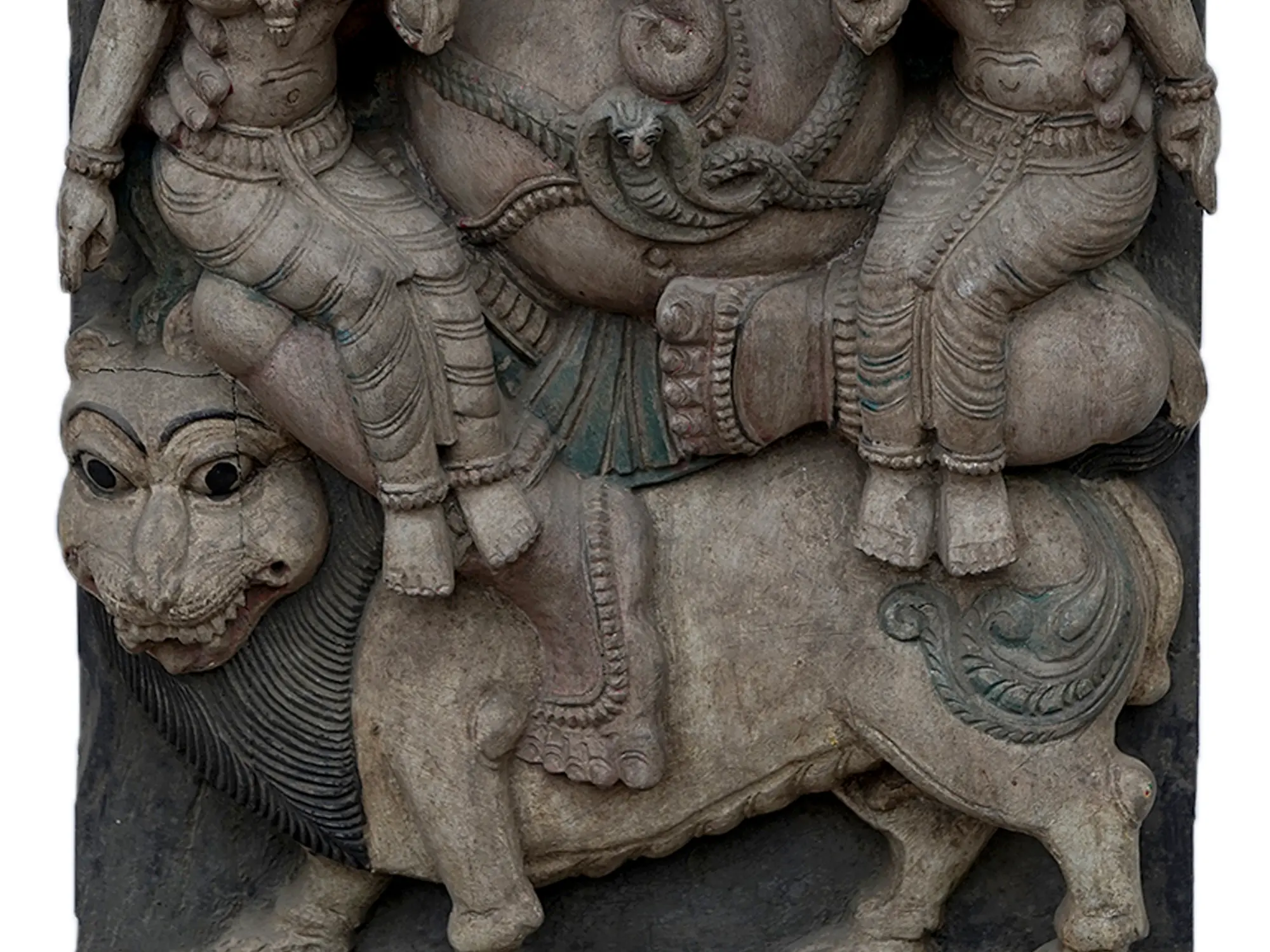 48" Trimukha Ganesha Seated on His Rat with Kirtimukha Arch