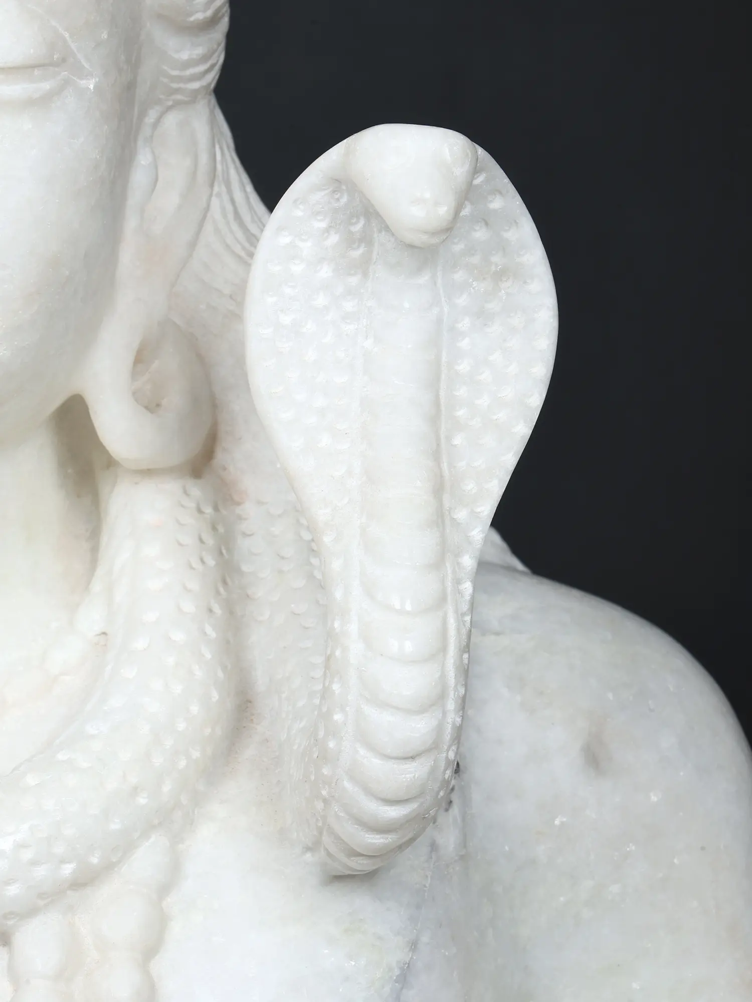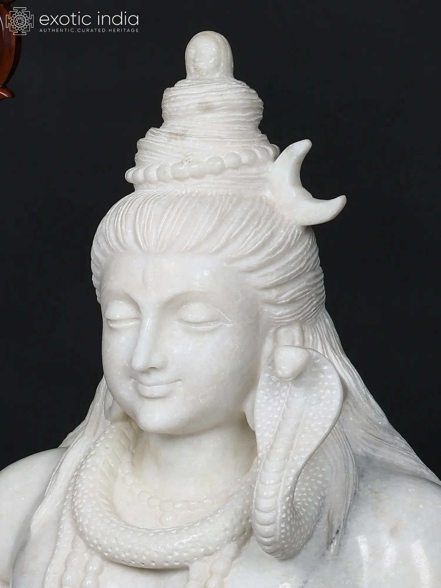 The striking dimensions of this sculpture command attention, standing 36 inches tall, with a width of 27 inches and a depth of 15 inches. Observe the gentle smile gracing the lips, the closed eyes reflecting deep introspection, and the sacred serpent coiled gracefully around the neck, signifying control over ego and primal energy. The intricate details of the jewelry, the flowing hair, and the meditative posture speak to the profound yogic practices associated with the deity. Each element is rendered with a sculptor’s keen eye for anatomical precision and spiritual symbolism.